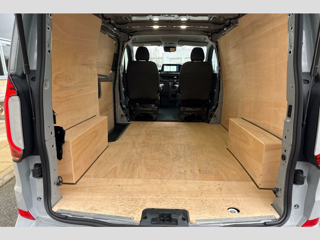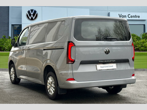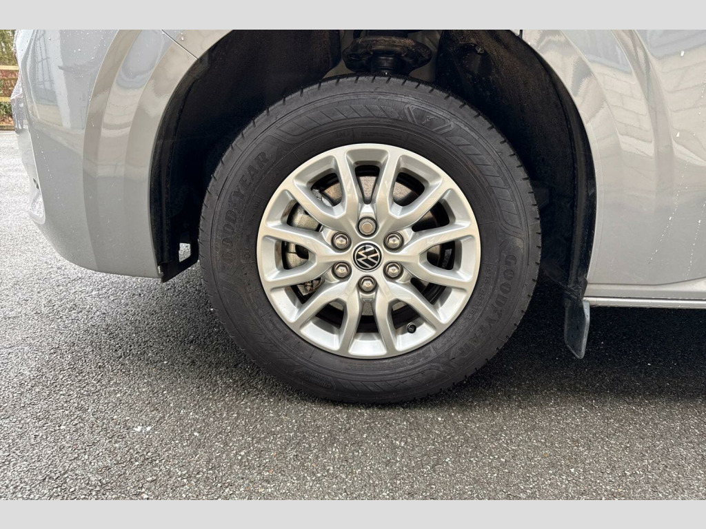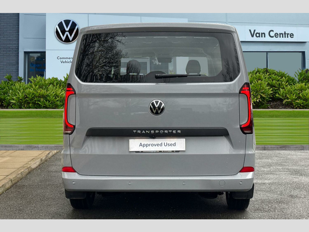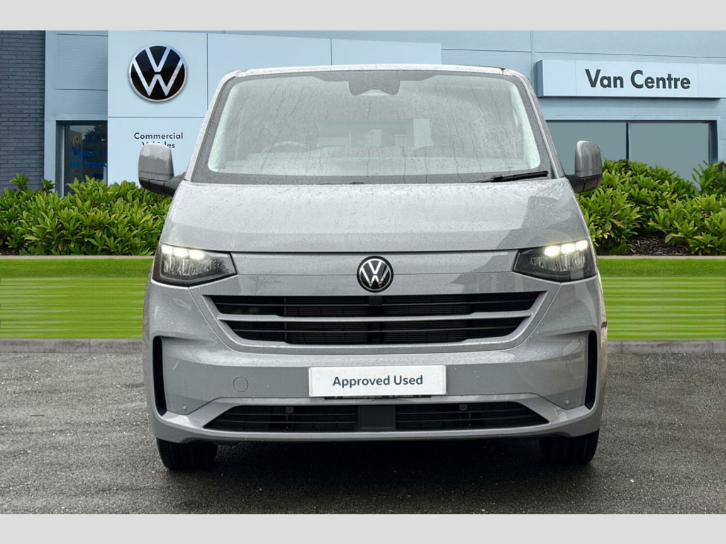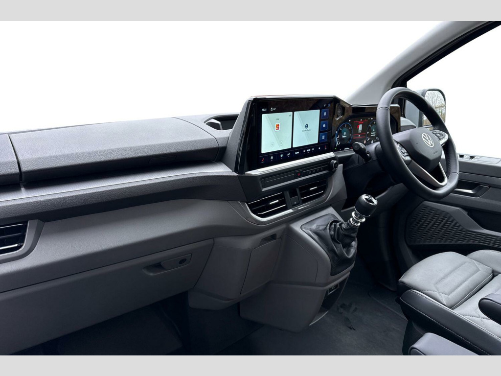 Heat reflecting side window glass, Body colour bumpers, Body coloured door handles, Body coloured radiator grille, Mud flaps front and rear, Rear Transporter nameplate in black grained decorative trim, Vehicle opening configuration 1x 1st row of seats, 2x all doors, Electromechanical brake booster, Electronic stability control, ABS, ASR with deactivation button, hill start assist and brake assist system, Adaptive cruise control, Electromechanical speed sensitive power steering, height and longitudinally adjustable steering column, Lane and blind spot assist with exit warning system, Wrong way driver warning, Body coloured door mirrors, Electrically heated, adjustable and folding door mirrors, Driver and front passenger airbag with front passenger airbag deactivation, Dual tone horn, Front and curtain airbags for driver and front passenger, Seat belt pretensioner for driver seat, Apple CarPlay and Android Auto, Wireless mobile phone charging, 12" digital drivers display, 13" touchscreen infotainment display with wireless app connect and DAB radio, 5G Modem, Dynamic road sign display, eCall emergency system, Preparation of VW connect and connect plus, Alternator - 230A, 2x 15-W USB data/charging ports in dashboard and 1x USB-C, 1x USB-A center bottom, 5 additional USB-C charging ports, Black plastic scuff plate for sliding door in cargo without illumination, Glasses compartment in driver side roof, Grab handle on A-pillar passenger side, Illuminated lockable glovebox, Leatherette gear lever, Narrow centre console with cup holder and compartment for mobile phone, Overhead storage compartment, Rubber floor covering in cab, Striped fabric upholstery, Cabin interior lighting, 12V outlet in centre console and 12V outlet on rear right D-pillar, 2x LED lights in load compartment, 3x additional super bright LED lights in load compartment, Lashing rings for reinforced floor covering, Without passenger seats in load compartment, 4 way height and tilt adjustable head restraints, Anti theft alarm system with interior monitoring in cab, backup horn and towing protection, Electronic immobiliser, Lockable wheel bolts, Preparation for alcohol ignition interlock, 5+ Promise