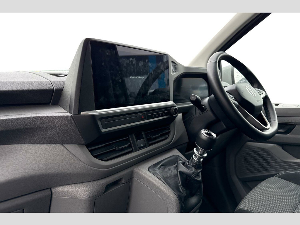 Stone Grey, Anti-theft alarm system, interior monitoring, backup horn and towing protection, Rubber floor covering in cab, Keyless Start with SAFELOCK, Air Conditioning, Parking sensors front and rear, Rear view camera, Green tinted heat insulating glass in cab and passenger compartment, Heated front windscreen, Windshield wiper intermittent control with rain sensor for windshield wipers, 16" chassis with 16" brake system, Radiator grille with 2 chrome trims, Transporter nameplate on the rear fender, Automatic headlight control, leaving home and manual coming home feature, Front fog lamps with cornering light, Electronic stability control, ABS, ASR with deactivation button, hill start assist and brake assist system, Start/stop system with regenerative breaking, Adaptive cruise control, Cross wind assist, Electromechanical speed sensitive power steering, height and longitudinally adjustable steering column, Left convex exterior mirror, Power adjustable and heated exterior mirrors, Power folding adjustable door mirrors with separately heated, Right convex exterior mirror, 3 point height adjustable seat belts on outer seats cab with electric pretensioners, Driver and front passenger airbag with front passenger airbag deactivation, Single tone horn, Warning buzzer and light for driver and front passenger seat belt not fastened, Without child safety lock in passenger compartment, Mobile phone interface, 2 USB interfaces type C in dashboard, 4 speakers with 2 tweeters and 2 woofers, Composition colour radio with 6.5" touchscreen, Digital radio reception (DAB+), Volkswagen app connect, Closing rear wing door with unlatching from the inside, Rear wing doors without window apertures, Dimmable illuminated instruments, Driver alert with Multi-function display plus, Multi function display plus with black and white display, eCall emergency system, Forward collision warning front assist with autonomous emergency braking, Diesel particulate filter, Dust/pollen filter, 3 spoke leather wrapped multi function steering wheel, Auto dimming breakaway interior rear view mirror, Comfort headliner in cab, hardboard roof trim in passenger and load compartment, Glove compartment with illumination, High partition, Refrigerant R134a, Rubber floor covering in cab, Standard lower part dashboard in palladium, Storage compartments on cab seats and reading light, LED Interior lighting in load and passenger compartment, Front and rear left without window closed side panel in load compartment, Interior plastic loading edge protection, Without right side window apertures in passenger and load compartment, Comfort pack - Transporter, Exterior pack without fog light- Transporter, Non smoker pack - Transporter, Front seats on the right in 1st row of seat, Manual adjustable lumbar support for right single seat in 1st row seats, Anti theft alarm system with interior monitoring in cab, backup horn and towing protection, Lockable wheel bolts, 16" Clayton alloy wheels