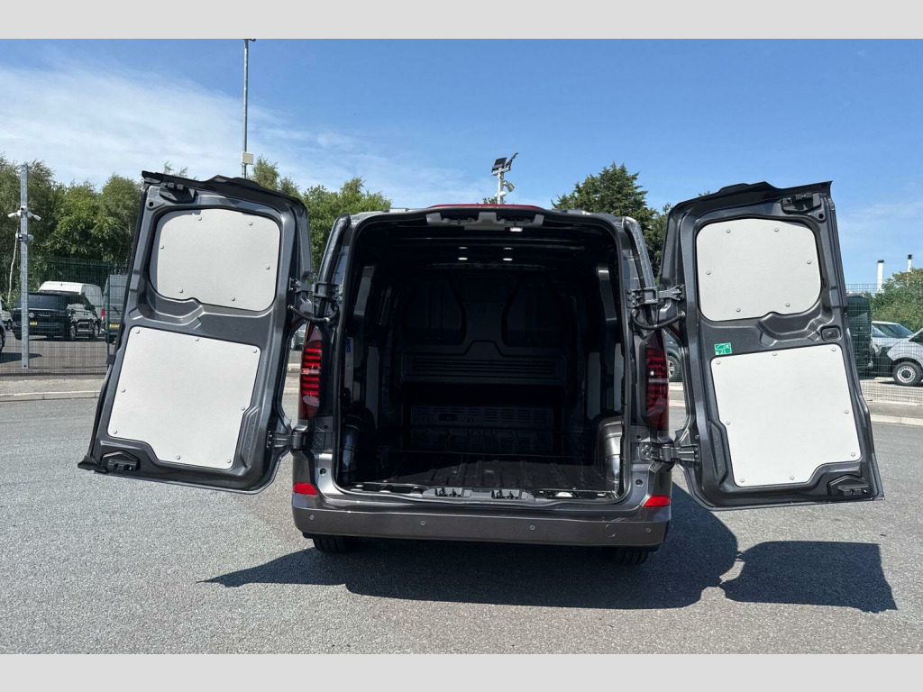 The rear load area is designed with practicality in mind, featuring rear wing doors that open to 180 degrees and a side sliding door for easy access. Lashing rings are fitted to help secure cargo, and a storage compartment beneath the passenger seat provides a useful space for longer items or smaller tools and equipment.