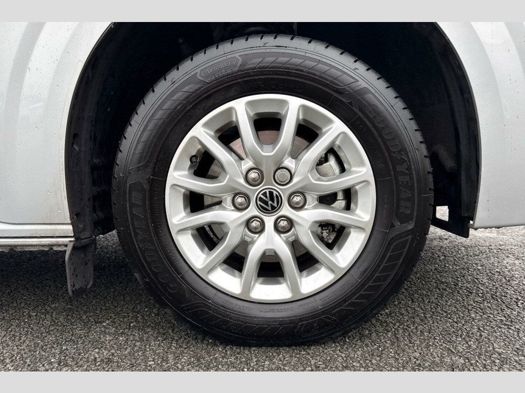 Light Grey Metallic Paint, Alloy Wheels, Parking Sensors, Keyless Access, LED's Headlamps, Bulkhead, Power Folding Mirrors, Single Zone Air Conditioning, Grad Handle On Passenger Side, Wireless Phone Charger, 230V Outlet, Parking sensors front and rear, with manouver braking, With front and rear view camera system and two side cameras, Keyless Start, Mudflaps, Multi Function Steering Wheel, Alarm, 12V Outlet on D Pillar, Green tinted heat insulating glass in cab and passenger compartment, Heated front windscreen, Windshield wiper intermittent control with rain sensor for windshield wipers, 16" chassis with 16" brake system, Radiator grille with 2 chrome trims, Transporter nameplate on the rear fender, Automatic headlight control, leaving home and manual coming home feature, Front fog lamps with cornering light, Electronic stability control, ABS, ASR with deactivation button, hill start assist and brake assist system, Start/stop system with regenerative breaking, Adaptive cruise control, Cross wind assist, Electromechanical speed sensitive power steering, height and longitudinally adjustable steering column, Left convex exterior mirror, Power adjustable and heated exterior mirrors, Power folding adjustable door mirrors with separately heated, Right convex exterior mirror, 3 point height adjustable seat belts on outer seats cab with electric pretensioners, Driver and front passenger airbag with front passenger airbag deactivation, Single tone horn, Warning buzzer and light for driver and front passenger seat belt not fastened, Without child safety lock in passenger compartment, Mobile phone interface, 2 USB interfaces type C in dashboard, 4 speakers with 2 tweeters and 2 woofers, Composition colour radio with 6.5" touchscreen, Digital radio reception (DAB+), Volkswagen app connect, Closing rear wing door with unlatching from the inside, Rear wing doors without window apertures, Dimmable illuminated instruments, Driver alert with Multi-function display plus, Multi function display plus with black and white display, eCall emergency system, Forward collision warning front assist with autonomous emergency braking, Diesel particulate filter, Dust/pollen filter, 3 spoke leather wrapped multi function steering wheel, Auto dimming breakaway interior rear view mirror, Comfort headliner in cab, hardboard roof trim in passenger and load compartment, Glove compartment with illumination, High partition, Refrigerant R134a, Rubber floor covering in cab, Standard lower part dashboard in palladium, Storage compartments on cab seats and reading light, LED Interior lighting in load and passenger compartment, Front and rear left without window closed side panel in load compartment, Interior plastic loading edge protection, Without right side window apertures in passenger and load compartment, Comfort pack - Transporter, Exterior pack without fog light- Transporter, Non smoker pack - Transporter, Front seats on the right in 1st row of seat, Manual adjustable lumbar support for right single seat in 1st row seats, Anti theft alarm system with interior monitoring in cab, backup horn and towing protection, Lockable wheel bolts, 16" Clayton alloy wheels