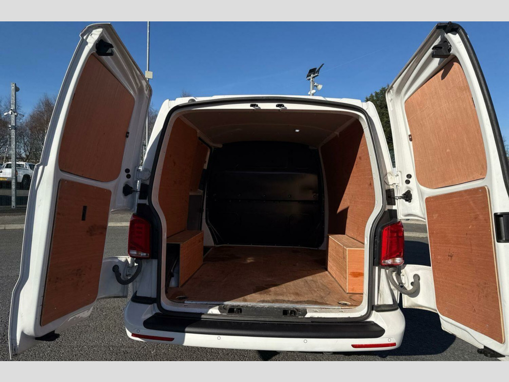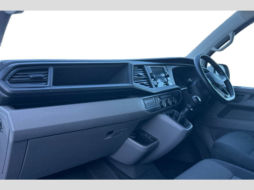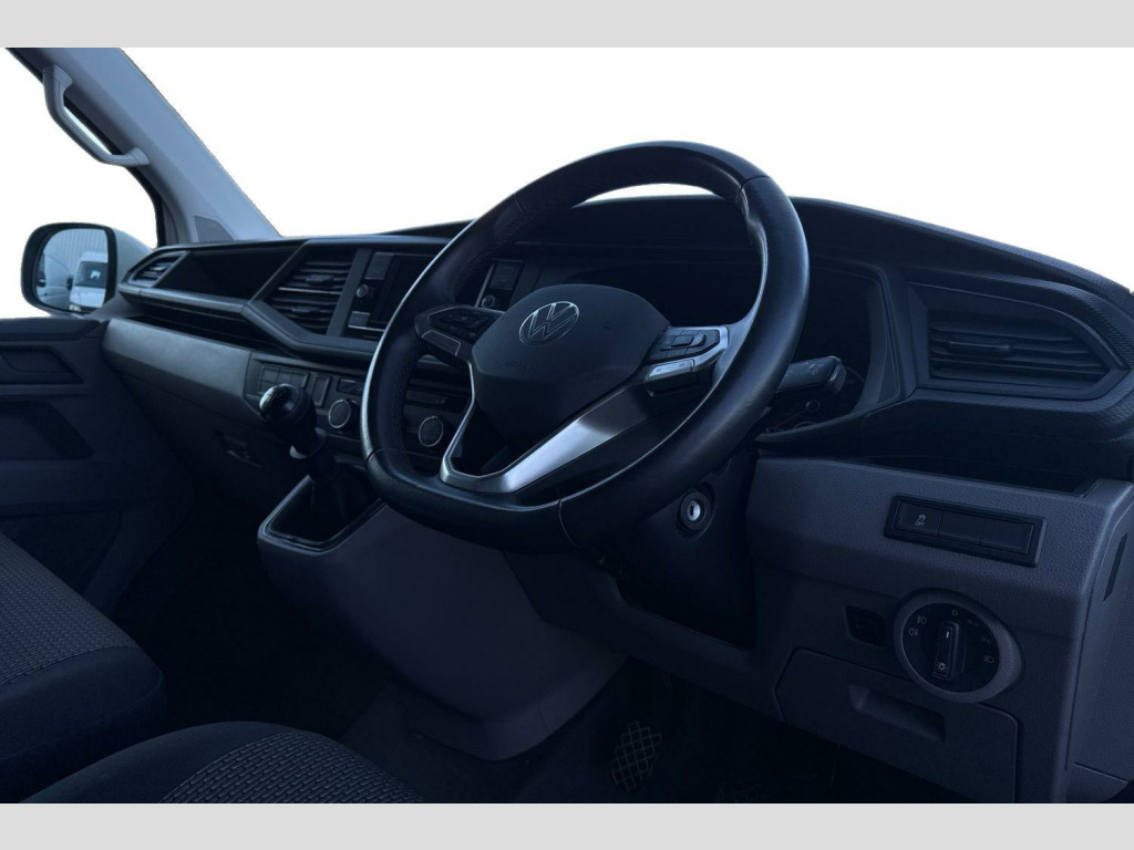 Candy White Paint, Rear view camera, Lights & Vision package, Adaptive Cruise Control including speed limiter and City Emergency Braking, Exterior pack, Wing mirrors - heated, power adjustable and power folding, Parking sensors - front and rear, Leather-wrapped multi-function steering wheel (3-spoke), Digital radio reception, Heated front windscreen, 16"x 6.5J Clayton alloy wheels, Comfort Package, Front fog lights with cornering function, Green tinted heat insulating glass in cab and passenger compartment, Heated front windscreen, Windshield wiper intermittent control with rain sensor for windshield wipers, 16" chassis with 16" brake system, Radiator grille with 2 chrome trims, Transporter nameplate on the rear fender, Automatic headlight control, leaving home and manual coming home feature, Front fog lamps with cornering light, Electronic stability control, ABS, ASR with deactivation button, electronic differnetial lock, hill start assist and brake assist system, Start/stop system with regenerative breaking, Adaptive cruise control, Cross wind assist, Electromechanical speed sensitive power steering, height and longitudinally adjustable steering column, Left convex exterior mirror, Power adjustable and heated, power folding, folding possible via vehicle key exterior mirrors, Right convex exterior mirror, 3 point height adjustable seat belts on outer seats cab with electric pretensioners, Driver and front passenger airbag with front passenger airbag deactivation, Single tone horn, Warning buzzer and light for driver seat belt not fastened, Without child safety lock in passenger compartment, Mobile phone interface, 2 USB interfaces type C in dashboard, 4 speakers with 2 tweeters and 2 woofers, Composition colour radio with 6.5" touchscreen, Digital radio reception (DAB+), Volkswagen app connect, Closing rear wing door with unlatching from the inside, Rear wing doors without window apertures, Sliding door on the left in load/passenger compartment, Without sliding door on the right in load/passenger compartment with closed side panel, Dimmable illuminated instruments, eCall emergency system, Forward collision warning front assist with autonomous emergency braking, Diesel particulate filter, Dust/pollen filter, 3 spoke leather wrapped multi function steering wheel, Auto dimming breakaway interior rear view mirror, Comfort headliner in cab, hardboard roof trim in passenger and load compartment, Glove compartment with illumination, High partition, Refrigerant R134a, Reinforced lashing rings for load restraint system, Standard lower part dashboard in palladium, Storage compartments on cab seats and reading light, LED Interior lighting in load and passenger compartment, Front and rear left without window closed side panel in load compartment, Interior plastic loading edge protection, Without right side window apertures in passenger and load compartment, Comfort pack - Transporter, Exterior pack without fog light- Transporter, Non smoker pack - Transporter, Front seats on the right in 1st row of seat, Anti theft alarm system with interior monitoring in cab, backup horn and towing protection, Lockable wheel bolts, Without trailer hitch, 16" Clayton alloy wheels