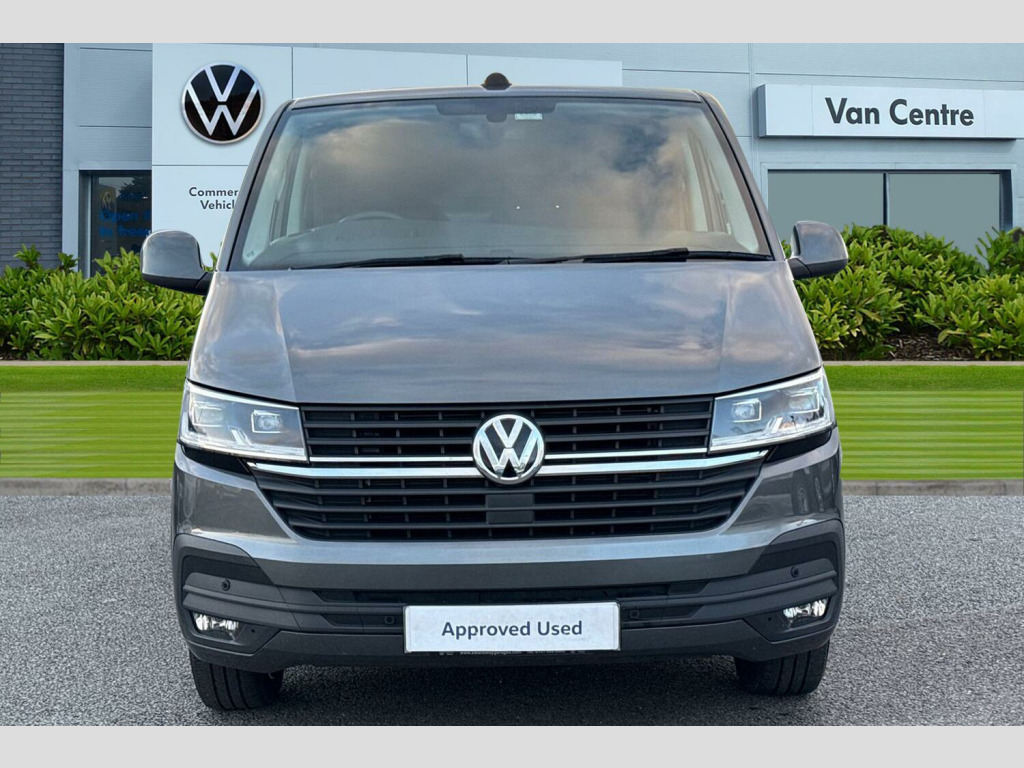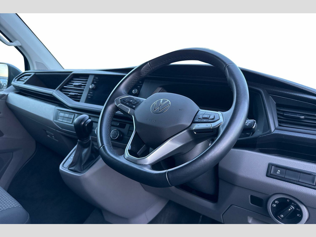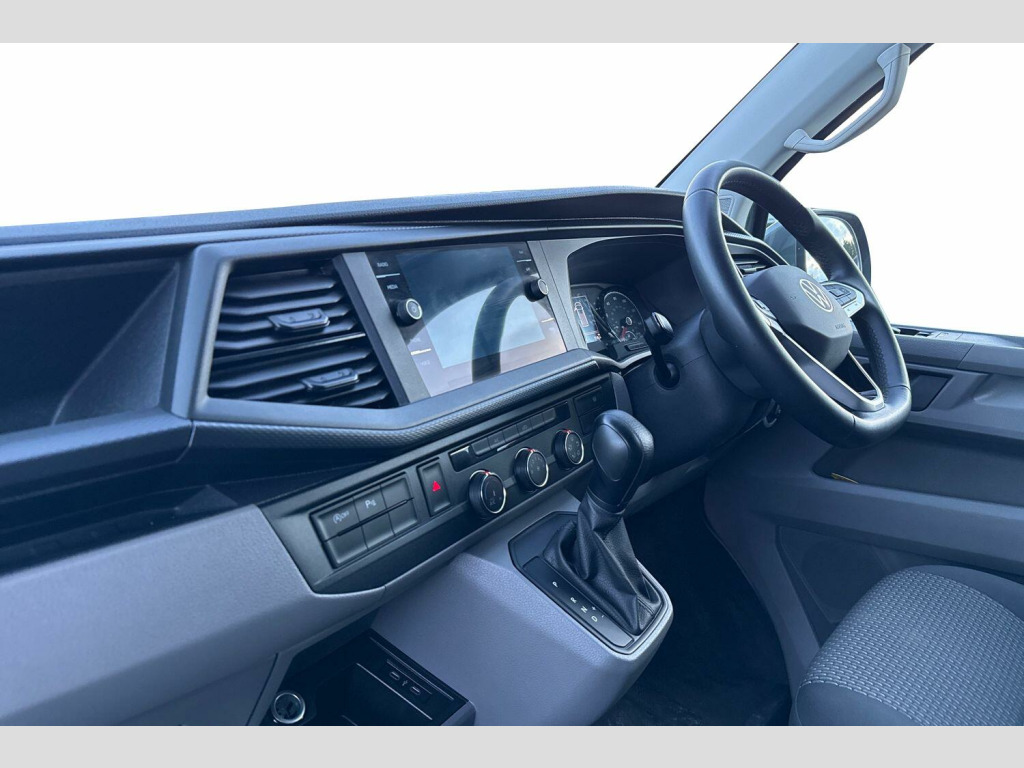 Indium Grey Metallic Paint, LED Headlamps, Navigation system "Discover Media" including "Streaming & Internet", Rear window with heat-insulating glass, heated, rear window wiper and washer system, Tailgate, Rear view camera, Carpet floor covering in cab, Separate daytime running light with automatic headlight control and Coming Home feature, Windshield wiper intermittent control with light/rain sensor, Adaptive Cruise Control including speed limiter and City Emergency Braking, Wing mirrors - heated, power adjustable and power folding, Electronic stability control (ESC), Parking sensors - front and rear, Leather-wrapped multi-function steering wheel (3-spoke), Front fog lights with cornering function, Heated front windscreen with heat reflecting glass, Heated front windscreen, Windshield wiper intermittent control with rain sensor for windshield wipers, 16" chassis with 16" brake system, Radiator grille with 2 chrome trims, Transporter nameplate on the rear fender, Automatic headlight control, leaving home and manual coming home feature, Front fog lamps with cornering light, Electronic stability control, ABS, ASR with deactivation button, electronic differnetial lock, hill start assist and brake assist system, Start/stop system with regenerative breaking, Adaptive cruise control, Cross wind assist, Electromechanical speed sensitive power steering, height and longitudinally adjustable steering column, Left convex exterior mirror, Power adjustable and heated, power folding, folding possible via vehicle key exterior mirrors, Right convex exterior mirror, 3 point height adjustable seat belts on outer seats cab with electric pretensioners, Driver and front passenger airbag with front passenger airbag deactivation, Single tone horn, Warning buzzer and light for driver seat belt not fastened, Without child safety lock in passenger compartment, Mobile phone interface, 2 USB interfaces type C in dashboard, 4 speakers with 2 tweeters and 2 woofers, Composition colour radio with 6.5" touchscreen, Digital radio reception (DAB+), Volkswagen app connect, Closing rear wing door with unlatching from the inside, Rear wing doors without window apertures, Sliding door on the left in load/passenger compartment, Without sliding door on the right in load/passenger compartment with closed side panel, Dimmable illuminated instruments, eCall emergency system, Forward collision warning front assist with autonomous emergency braking, Diesel particulate filter, Dust/pollen filter, 3 spoke leather wrapped multi function steering wheel, Auto dimming breakaway interior rear view mirror, Comfort headliner in cab, hardboard roof trim in passenger and load compartment, Glove compartment with illumination, High partition, Refrigerant R134a, Reinforced lashing rings for load restraint system, Standard lower part dashboard in palladium, Storage compartments on cab seats and reading light, LED Interior lighting in load and passenger compartment, Front and rear left without window closed side panel in load compartment, Interior plastic loading edge protection, Without right side window apertures in passenger and load compartment, Comfort pack - Transporter, Exterior pack without fog light- Transporter, Non smoker pack - Transporter, Front seats on the right in 1st row of seat, Anti theft alarm system with interior monitoring in cab, backup horn and towing protection, Lockable wheel bolts, Without trailer hitch, 16" Clayton alloy wheels