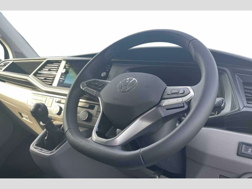 Volkswagen Transporter 2.0 TDI 110 Highline Van Pure Grey Solid Paint, LED headlamps with LED daytime running lights (Tailgate) with red tail lights, Discover Navigation, High Beam Asssit, Solid Tailgate, Lights & Vision package, Adaptive Cruise Control including speed limiter and City Emergency Braking, Preparation for "We Connect" and "We Connect Plus", Armrest for right front seat, Wing mirrors - heated, power adjustable and power folding, Parking sensors - front and rear, Leather-wrapped multi-function steering wheel (3-spoke), Heated front windscreen, 16"x 6.5J Clayton alloy wheels, Comfort Package, Green tinted heat insulating glass in cab and passenger compartment, Heated front windscreen, Windshield wiper intermittent control with rain sensor for windshield wipers, 16" chassis with 16" brake system, Radiator grille with 2 chrome trims, Transporter nameplate on the rear fender, Automatic headlight control, leaving home and manual coming home feature, Front fog lamps with cornering light, Electronic stability control, ABS, ASR with deactivation button, hill start assist and brake assist system, Start/stop system with regenerative breaking, Adaptive cruise control, Cross wind assist, Electromechanical speed sensitive power steering, height and longitudinally adjustable steering column, Left convex exterior mirror, Power adjustable and heated exterior mirrors, Power folding door mirrors, Right convex exterior mirror, 3 point height adjustable seat belts on outer seats cab with electric pretensioners, Driver and front passenger airbag with front passenger airbag deactivation, Single tone horn, Warning buzzer and light for driver and front passenger seat belt not fastened, Without child safety lock in passenger compartment, Mobile phone interface, 2 USB interfaces type C in dashboard, 4 speakers with 2 tweeters and 2 woofers, Composition colour radio with 6.5" touchscreen, Digital radio reception (DAB+), Volkswagen app connect, Closing rear wing door with unlatching from the inside, Rear wing doors without window apertures, Dimmable illuminated instruments, Driver alert with Multi-function display plus, Multi function display plus with black and white display, eCall emergency system, Forward collision warning front assist with autonomous emergency braking, Diesel particulate filter, Additional 12V socket, Dust/pollen filter, 3 spoke leather wrapped multi function steering wheel, Auto dimming breakaway interior rear view mirror, Comfort headliner in cab, hardboard roof trim in passenger and load compartment, Glove compartment with illumination, High partition, Refrigerant R134a, Rubber floor covering in cab, Standard lower part dashboard in palladium, Storage compartments on cab seats and reading light, LED Interior lighting in load and passenger compartment, Front and rear left without window closed side panel in load compartment, Interior plastic loading edge protection, Without right side window apertures in passenger and load compartment, Comfort pack - Transporter, Exterior pack without fog light- Transporter, Non smoker pack - Transporter, Front seats on the right in 1st row of seat, Anti theft alarm system with interior monitoring in cab, backup horn and towing protection, Lockable wheel bolts, 16" Clayton alloy wheels