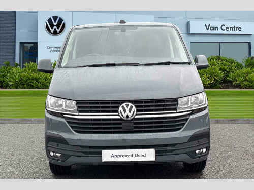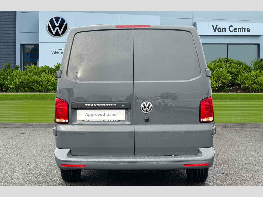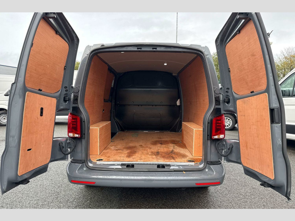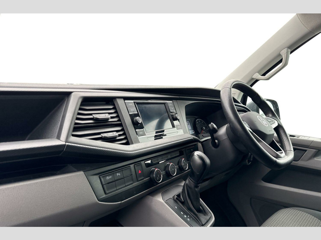 Pure Grey Solid Paint, Rear Camera, Barn Doors, Heated Washer Jets, Separate daytime running light with automatic headlight control and Coming Home feature, Windshield wiper intermittent control with light/rain sensor, Adaptive Cruise Control including speed limiter and City Emergency Braking, Wing mirrors - heated, power adjustable and power folding, Electronic stability control (ESC), Parking sensors - front and rear, Leather-wrapped multi-function steering wheel (3-spoke), Front fog lights with cornering function, Heated front windscreen and rear window, Heated front windscreen, Windshield wiper intermittent control with rain sensor for windshield wipers, 16" chassis with 16" brake system, Radiator grille with 2 chrome trims, Transporter nameplate on the rear fender, Automatic headlight control, leaving home and manual coming home feature, Front fog lamps with cornering light, Electronic stability control, ABS, ASR with deactivation button, electronic differnetial lock, hill start assist and brake assist system, Start/stop system with regenerative breaking, Adaptive cruise control, Cross wind assist, Electromechanical speed sensitive power steering, height and longitudinally adjustable steering column, Left convex exterior mirror, Power adjustable and heated, power folding, folding possible via vehicle key exterior mirrors, Right convex exterior mirror, 3 point height adjustable seat belts on outer seats cab with electric pretensioners, Driver and front passenger airbag with front passenger airbag deactivation, Single tone horn, Warning buzzer and light for driver seat belt not fastened, Without child safety lock in passenger compartment, Mobile phone interface, 2 USB interfaces type C in dashboard, 4 speakers with 2 tweeters and 2 woofers, Composition colour radio with 6.5" touchscreen, Digital radio reception (DAB+), Volkswagen app connect, Closing rear wing door with unlatching from the inside, Rear wing doors without window apertures, Sliding door on the left in load/passenger compartment, Without sliding door on the right in load/passenger compartment with closed side panel, Dimmable illuminated instruments, eCall emergency system, Forward collision warning front assist with autonomous emergency braking, Diesel particulate filter, Dust/pollen filter, 3 spoke leather wrapped multi function steering wheel, Auto dimming breakaway interior rear view mirror, Comfort headliner in cab, hardboard roof trim in passenger and load compartment, Glove compartment with illumination, High partition, Refrigerant R134a, Reinforced lashing rings for load restraint system, Standard lower part dashboard in palladium, Storage compartments on cab seats and reading light, LED Interior lighting in load and passenger compartment, Front and rear left without window closed side panel in load compartment, Interior plastic loading edge protection, Without right side window apertures in passenger and load compartment, Comfort pack - Transporter, Exterior pack without fog light- Transporter, Non smoker pack - Transporter, Front seats on the right in 1st row of seat, Anti theft alarm system with interior monitoring in cab, backup horn and towing protection, Lockable wheel bolts, Without trailer hitch, 16" Clayton alloy wheels