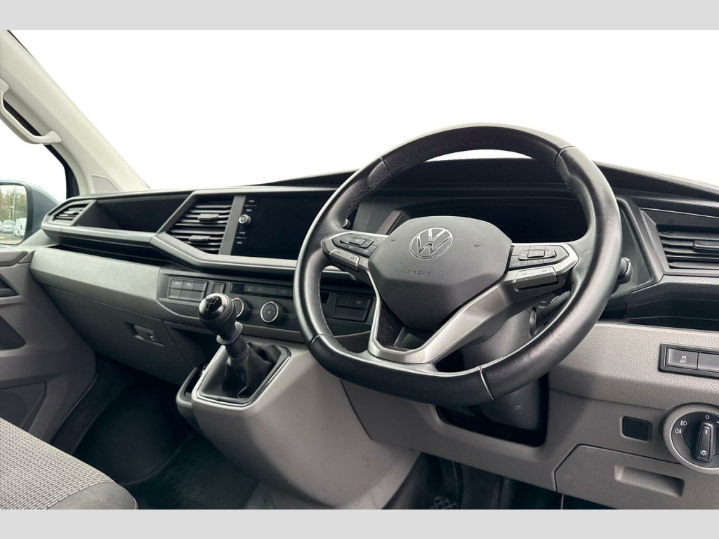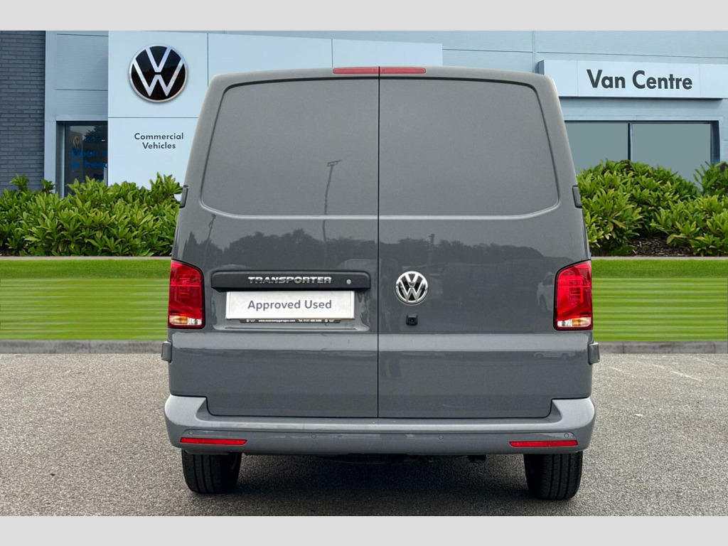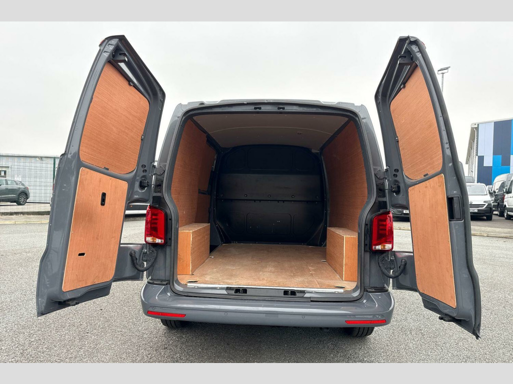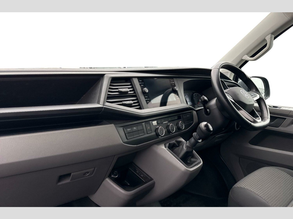 Pure Grey Solid Paint, LED headlamps with LED daytime running lights (Tailgate) with red tail lights, Discover Navigation, Rear Camera, Heated Seats, Barn Doors, Lights & Vision package, Adaptive Cruise Control including speed limiter and City Emergency Braking, Preparation for "We Connect" and "We Connect Plus", Armrest for right front seat, Wing mirrors - heated, power adjustable and power folding, Parking sensors - front and rear, Leather-wrapped multi-function steering wheel (3-spoke), Heated front windscreen, 16"x 6.5J Clayton alloy wheels, Comfort Package, Green tinted heat insulating glass in cab and passenger compartment, Heated front windscreen, Windshield wiper intermittent control with rain sensor for windshield wipers, 16" chassis with 16" brake system, Radiator grille with 2 chrome trims, Transporter nameplate on the rear fender, Automatic headlight control, leaving home and manual coming home feature, Front fog lamps with cornering light, Electronic stability control, ABS, ASR with deactivation button, hill start assist and brake assist system, Start/stop system with regenerative breaking, Adaptive cruise control, Cross wind assist, Electromechanical speed sensitive power steering, height and longitudinally adjustable steering column, Left convex exterior mirror, Power adjustable and heated exterior mirrors, Power folding door mirrors, Right convex exterior mirror, 3 point height adjustable seat belts on outer seats cab with electric pretensioners, Driver and front passenger airbag with front passenger airbag deactivation, Single tone horn, Warning buzzer and light for driver and front passenger seat belt not fastened, Without child safety lock in passenger compartment, Mobile phone interface, 2 USB interfaces type C in dashboard, 4 speakers with 2 tweeters and 2 woofers, Composition colour radio with 6.5" touchscreen, Digital radio reception (DAB+), Volkswagen app connect, Closing rear wing door with unlatching from the inside, Rear wing doors without window apertures, Dimmable illuminated instruments, Driver alert with Multi-function display plus, Multi function display plus with black and white display, eCall emergency system, Forward collision warning front assist with autonomous emergency braking, Diesel particulate filter, Additional 12V socket, Dust/pollen filter, 3 spoke leather wrapped multi function steering wheel, Auto dimming breakaway interior rear view mirror, Comfort headliner in cab, hardboard roof trim in passenger and load compartment, Glove compartment with illumination, High partition, Refrigerant R134a, Rubber floor covering in cab, Standard lower part dashboard in palladium, Storage compartments on cab seats and reading light, LED Interior lighting in load and passenger compartment, Front and rear left without window closed side panel in load compartment, Interior plastic loading edge protection, Without right side window apertures in passenger and load compartment, Comfort pack - Transporter, Exterior pack without fog light- Transporter, Non smoker pack - Transporter, Front seats on the right in 1st row of seat, Anti theft alarm system with interior monitoring in cab, backup horn and towing protection, Lockable wheel bolts, 16" Clayton alloy wheels