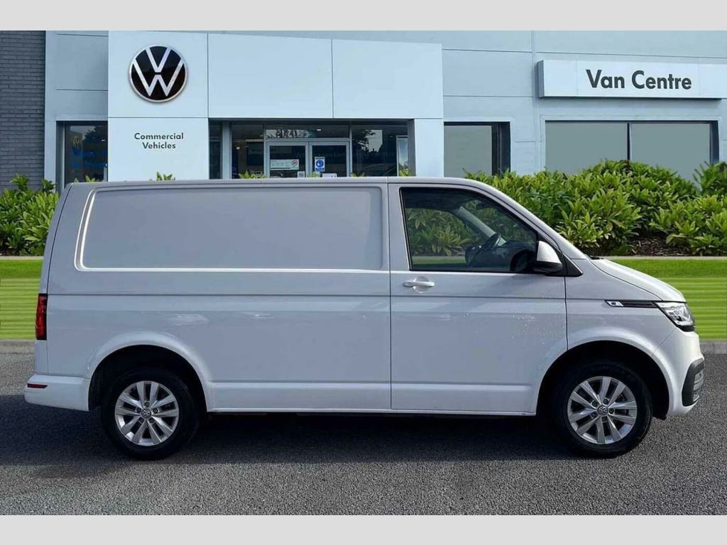 Candy White Solid Paint, Tailgate without window aperture, Navigation system "Discover Media" including "Streaming & Internet", Rear view camera, LED headlamps with LED daytime running lights (Tailgate) with red tail lights, Heated driver and front passenger seats, Separate daytime running light with automatic headlight control and Coming Home feature, Windshield wiper intermittent control with light/rain sensor, Adaptive Cruise Control including speed limiter and City Emergency Braking, Wing mirrors - heated, power adjustable and power folding, Electronic stability control (ESC), Parking sensors - front and rear, Leather-wrapped multi-function steering wheel (3-spoke), Front fog lights with cornering function, Heated front windscreen and rear window, Heated front windscreen, Windshield wiper intermittent control with rain sensor for windshield wipers, 16" chassis with 16" brake system, Radiator grille with 2 chrome trims, Transporter nameplate on the rear fender, Automatic headlight control, leaving home and manual coming home feature, Front fog lamps with cornering light, Electronic stability control, ABS, ASR with deactivation button, electronic differnetial lock, hill start assist and brake assist system, Start/stop system with regenerative breaking, Adaptive cruise control, Cross wind assist, Electromechanical speed sensitive power steering, height and longitudinally adjustable steering column, Left convex exterior mirror, Power adjustable and heated, power folding, folding possible via vehicle key exterior mirrors, Right convex exterior mirror, 3 point height adjustable seat belts on outer seats cab with electric pretensioners, Driver and front passenger airbag with front passenger airbag deactivation, Single tone horn, Warning buzzer and light for driver seat belt not fastened, Without child safety lock in passenger compartment, Mobile phone interface, 2 USB interfaces type C in dashboard, 4 speakers with 2 tweeters and 2 woofers, Composition colour radio with 6.5" touchscreen, Digital radio reception (DAB+), Volkswagen app connect, Closing rear wing door with unlatching from the inside, Rear wing doors without window apertures, Sliding door on the left in load/passenger compartment, Without sliding door on the right in load/passenger compartment with closed side panel, Dimmable illuminated instruments, eCall emergency system, Forward collision warning front assist with autonomous emergency braking, Diesel particulate filter, Dust/pollen filter, 3 spoke leather wrapped multi function steering wheel, Auto dimming breakaway interior rear view mirror, Comfort headliner in cab, hardboard roof trim in passenger and load compartment, Glove compartment with illumination, High partition, Refrigerant R134a, Reinforced lashing rings for load restraint system, Standard lower part dashboard in palladium, Storage compartments on cab seats and reading light, LED Interior lighting in load and passenger compartment, Front and rear left without window closed side panel in load compartment, Interior plastic loading edge protection, Without right side window apertures in passenger and load compartment, Comfort pack - Transporter, Exterior pack without fog light- Transporter, Non smoker pack - Transporter, Front seats on the right in 1st row of seat, Anti theft alarm system with interior monitoring in cab, backup horn and towing protection, Lockable wheel bolts, Without trailer hitch, 16" Clayton alloy wheels