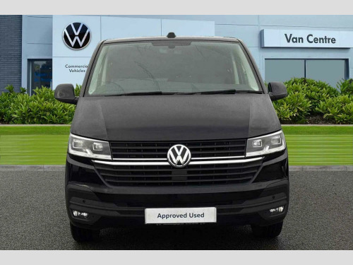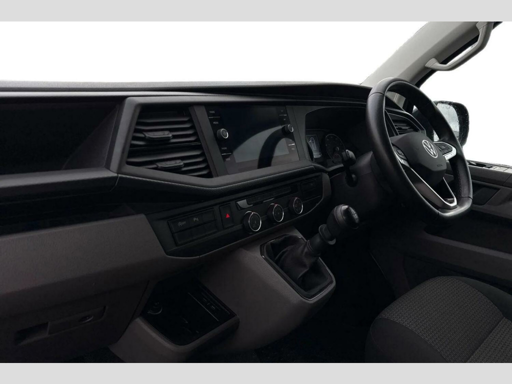 Deep Black Pearl Metallic Paint, LED Headlamps, Navigation system "Discover Media" including "Streaming & Internet", Rear Camera, Tailgate, High-beam control, Separate daytime running light with automatic headlight control and Coming Home feature, Windshield wiper intermittent control with light/rain sensor, Adaptive Cruise Control including speed limiter and City Emergency Braking, Wing mirrors - heated, power adjustable and power folding, Electronic stability control (ESC), Parking sensors - front and rear, Leather-wrapped multi-function steering wheel (3-spoke), Front fog lights with cornering function, Heated front windscreen, Windshield wiper intermittent control with rain sensor for windshield wipers, 16" chassis with 16" brake system, Radiator grille with 2 chrome trims, Transporter nameplate on the rear fender, Automatic headlight control, leaving home and manual coming home feature, Front fog lamps with cornering light, Electronic stability control, ABS, ASR with deactivation button, electronic differnetial lock, hill start assist and brake assist system, Start/stop system with regenerative breaking, Adaptive cruise control, Cross wind assist, Electromechanical speed sensitive power steering, height and longitudinally adjustable steering column, Left convex exterior mirror, Power adjustable and heated, power folding, folding possible via vehicle key exterior mirrors, Right convex exterior mirror, 3 point height adjustable seat belts on outer seats cab with electric pretensioners, Driver and front passenger airbag with front passenger airbag deactivation, Single tone horn, Warning buzzer and light for driver seat belt not fastened, Without child safety lock in passenger compartment, Mobile phone interface, 2 USB interfaces type C in dashboard, 4 speakers with 2 tweeters and 2 woofers, Composition colour radio with 6.5" touchscreen, Digital radio reception (DAB+), Volkswagen app connect, Closing rear wing door with unlatching from the inside, Rear wing doors without window apertures, Sliding door on the left in load/passenger compartment, Without sliding door on the right in load/passenger compartment with closed side panel, Dimmable illuminated instruments, eCall emergency system, Forward collision warning front assist with autonomous emergency braking, Diesel particulate filter, Dust/pollen filter, 3 spoke leather wrapped multi function steering wheel, Auto dimming breakaway interior rear view mirror, Comfort headliner in cab, hardboard roof trim in passenger and load compartment, Glove compartment with illumination, High partition, Refrigerant R134a, Reinforced lashing rings for load restraint system, Standard lower part dashboard in palladium, Storage compartments on cab seats and reading light, LED Interior lighting in load and passenger compartment, Front and rear left without window closed side panel in load compartment, Interior plastic loading edge protection, Without right side window apertures in passenger and load compartment, Comfort pack - Transporter, Exterior pack without fog light- Transporter, Non smoker pack - Transporter, Front seats on the right in 1st row of seat, Anti theft alarm system with interior monitoring in cab, backup horn and towing protection, Lockable wheel bolts, Without trailer hitch, 16" Clayton alloy wheels
