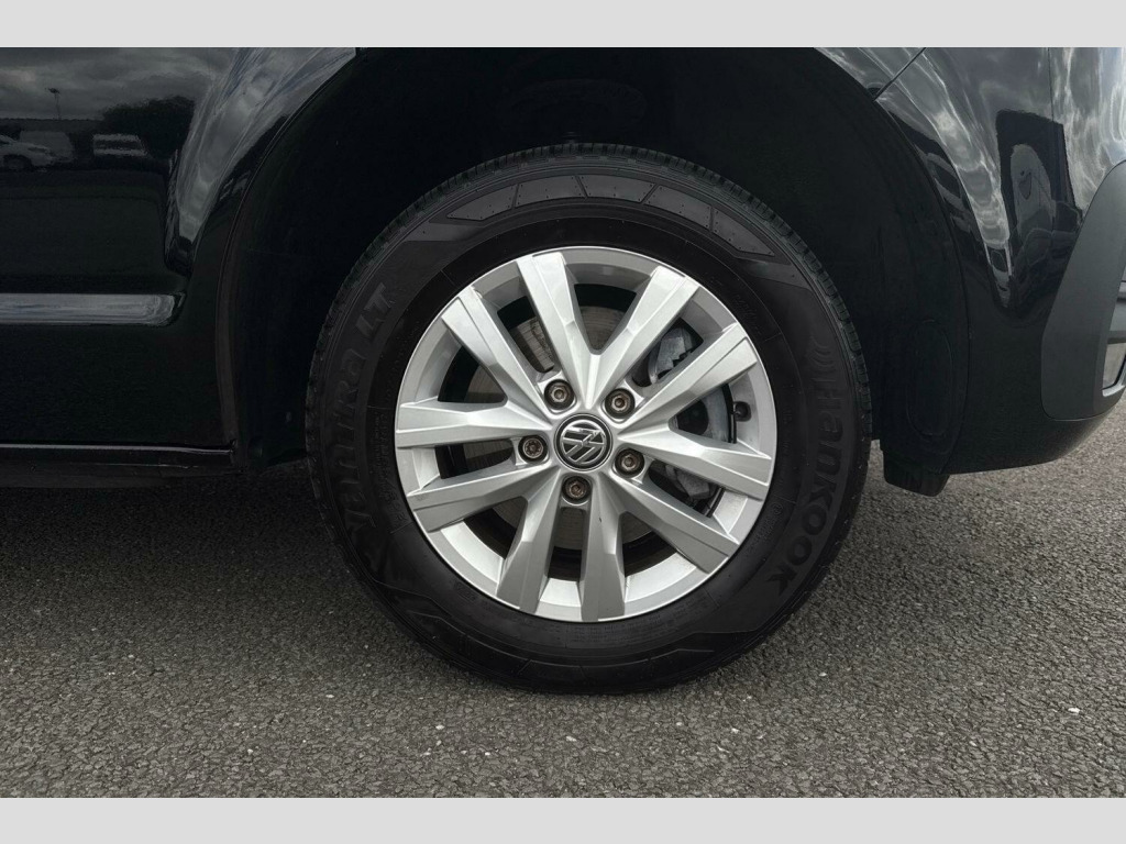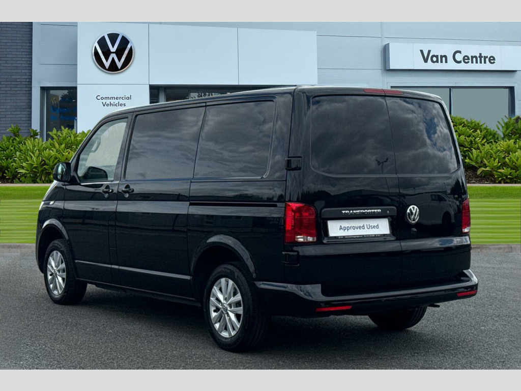 Deep Black Pearl Metallic, Rear view camera, Carpet floor covering in cab, Air Conditioning, Separate daytime running light with automatic headlight control and Coming Home feature, Windshield wiper intermittent control with light/rain sensor, Adaptive Cruise Control including speed limiter and City Emergency Braking, Wing mirrors - heated, power adjustable and power folding, Electronic stability control (ESC), Parking sensors - front and rear, Leather-wrapped multi-function steering wheel (3-spoke), Front fog lights with cornering function, Heated front windscreen and rear window, Heated front windscreen, Windshield wiper intermittent control with rain sensor for windshield wipers, 16" chassis with 16" brake system, Radiator grille with 2 chrome trims, Transporter nameplate on the rear fender, Automatic headlight control, leaving home and manual coming home feature, Front fog lamps with cornering light, Electronic stability control, ABS, ASR with deactivation button, electronic differnetial lock, hill start assist and brake assist system, Start/stop system with regenerative breaking, Adaptive cruise control, Cross wind assist, Electromechanical speed sensitive power steering, height and longitudinally adjustable steering column, Left convex exterior mirror, Power adjustable and heated, power folding, folding possible via vehicle key exterior mirrors, Right convex exterior mirror, 3 point height adjustable seat belts on outer seats cab with electric pretensioners, Driver and front passenger airbag with front passenger airbag deactivation, Single tone horn, Warning buzzer and light for driver seat belt not fastened, Without child safety lock in passenger compartment, Mobile phone interface, 2 USB interfaces type C in dashboard, 4 speakers with 2 tweeters and 2 woofers, Composition colour radio with 6.5" touchscreen, Digital radio reception (DAB+), Volkswagen app connect, Closing rear wing door with unlatching from the inside, Rear wing doors without window apertures, Sliding door on the left in load/passenger compartment, Without sliding door on the right in load/passenger compartment with closed side panel, Dimmable illuminated instruments, eCall emergency system, Forward collision warning front assist with autonomous emergency braking, Diesel particulate filter, Dust/pollen filter, 3 spoke leather wrapped multi function steering wheel, Auto dimming breakaway interior rear view mirror, Comfort headliner in cab, hardboard roof trim in passenger and load compartment, Glove compartment with illumination, High partition, Refrigerant R134a, Reinforced lashing rings for load restraint system, Standard lower part dashboard in palladium, Storage compartments on cab seats and reading light, LED Interior lighting in load and passenger compartment, Front and rear left without window closed side panel in load compartment, Interior plastic loading edge protection, Without right side window apertures in passenger and load compartment, Comfort pack - Transporter, Exterior pack without fog light- Transporter, Non smoker pack - Transporter, Front seats on the right in 1st row of seat, Anti theft alarm system with interior monitoring in cab, backup horn and towing protection, Lockable wheel bolts, Without trailer hitch, 16" Clayton alloy wheels