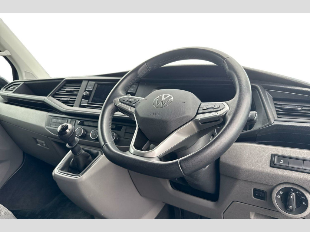Technology is seamlessly integrated through the Composition Colour infotainment system with a 6.5-inch touchscreen, offering DAB digital radio, Bluetooth connectivity, and Volkswagen App Connect for smooth smartphone integration. This combination of practicality, comfort, and modern tech makes the Transporter a reliable and versatile choice for work or daily use.