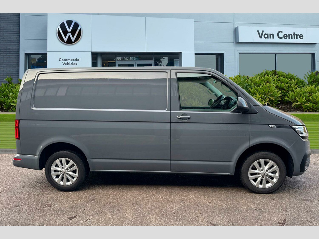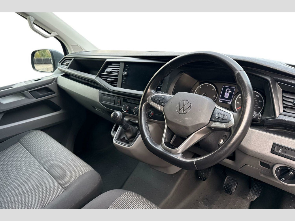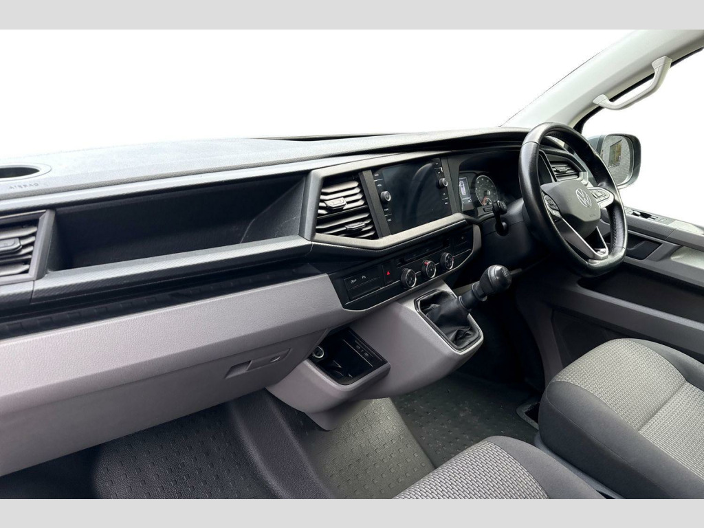 Solid paint, LED headlights with LED daytime running lights, Tailgate without window, Front and rear parking sensors, Tailgate/Trunklid unlocking from outside, Discover media navigation system including streaming and internet, Electronically controlled air conditioning system, Armrest for driver right cab seat, Dual passenger seat in cab, Solid - Pure grey, Heat insulating glass (green) in cab and passenger/load compartment, Heated front windscreen, 16" chassis with 16" brake system, Radiator grille with 2 chrome trims, Transporter nameplate on the rear fender, Front fog lamps with cornering light, Electronic stability control, ABS, ASR with deactivation button, hill start assist and brake assist system, Start/stop system with regenerative breaking, Adaptive cruise control, Cross wind assist, Left convex exterior mirror, Power folding adjustable door mirrors with separately heated, Right convex exterior mirror, 3 point height adjustable seat belts on outer seats cab with electric pretensioners, Driver and front passenger airbag with front passenger airbag deactivation, Warning buzzer and light for driver and front passenger seat belt not fastened, Without child safety lock in passenger compartment, Mobile phone interface, 2 USB interfaces type C in dashboard, 4 speakers with 2 tweeters and 2 woofers, Composition colour radio with 6.5" touchscreen, Digital radio reception (DAB+), Volkswagen app connect, Closing rear wing door with unlatching from the inside, Rear wing doors without window apertures, Dimmable illuminated instruments, Driver alert with Multi-function display plus, Multi function display plus with black and white display, eCall emergency system, Forward collision warning front assist with autonomous emergency braking, Diesel particulate filter, Dust/pollen filter, 3 spoke leather wrapped multi function steering wheel, Comfort headliner in cab, hardboard roof trim in passenger and load compartment, Heavy duty tool kit and jack, High partition, Refrigerant R134a, Standard lower part dashboard in palladium, Storage compartments on cab seats and reading light, LED Interior lighting in load and passenger compartment, Front and rear left without window closed side panel in load compartment, Interior plastic loading edge protection, Without right side window apertures in passenger and load compartment, Comfort pack - Transporter, Exterior pack without fog light- Transporter, Light and vision pack - Transporter, Non smoker pack - Transporter, Front seats on the right in 1st row of seat, Anti theft alarm system with interior monitoring in cab, backup horn and towing protection, Lockable wheel bolts, 16" Clayton alloy wheels