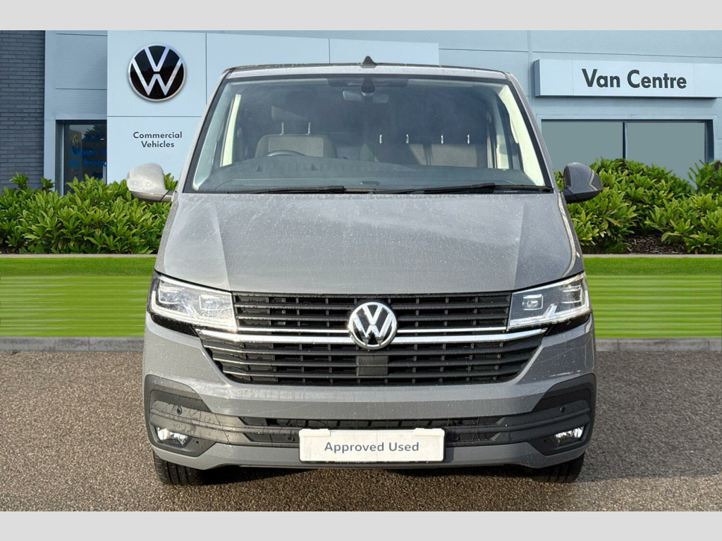 Volkswagen Transporter 2.0 TDI 110 Highline Van LED headlights with LED daytime running lights, Tailgate without window, Front and rear parking sensors, Tailgate/Trunklid unlocking from outside, Discover media navigation system including streaming and internet, Electronically controlled air conditioning system, Armrest for driver right cab seat, Dual passenger seat in cab, Solid - Pure grey, Heat insulating glass (green) in cab and passenger/load compartment, Heated front windscreen, 16" chassis with 16" brake system, Radiator grille with 2 chrome trims, Transporter nameplate on the rear fender, Front fog lamps with cornering light, Electronic stability control, ABS, ASR with deactivation button, hill start assist and brake assist system, Start/stop system with regenerative breaking, Adaptive cruise control, Cross wind assist, Left convex exterior mirror, Power folding adjustable door mirrors with separately heated, Right convex exterior mirror, 3 point height adjustable seat belts on outer seats cab with electric pretensioners, Driver and front passenger airbag with front passenger airbag deactivation, Warning buzzer and light for driver and front passenger seat belt not fastened, Without child safety lock in passenger compartment, Mobile phone interface, 2 USB interfaces type C in dashboard, 4 speakers with 2 tweeters and 2 woofers, Composition colour radio with 6.5" touchscreen, Digital radio reception (DAB+), Volkswagen app connect, Closing rear wing door with unlatching from the inside, Rear wing doors without window apertures, Dimmable illuminated instruments, Driver alert with Multi-function display plus, Multi function display plus with black and white display, eCall emergency system, Forward collision warning front assist with autonomous emergency braking, Diesel particulate filter, Dust/pollen filter, 3 spoke leather wrapped multi function steering wheel, Comfort headliner in cab, hardboard roof trim in passenger and load compartment, Heavy duty tool kit and jack, High partition, Refrigerant R134a, Standard lower part dashboard in palladium, Storage compartments on cab seats and reading light, LED Interior lighting in load and passenger compartment, Front and rear left without window closed side panel in load compartment, Interior plastic loading edge protection, Without right side window apertures in passenger and load compartment, Comfort pack - Transporter, Exterior pack without fog light- Transporter, Light and vision pack - Transporter, Non smoker pack - Transporter, Front seats on the right in 1st row of seat, Anti theft alarm system with interior monitoring in cab, backup horn and towing protection, Lockable wheel bolts, 16" Clayton alloy wheels