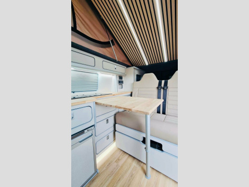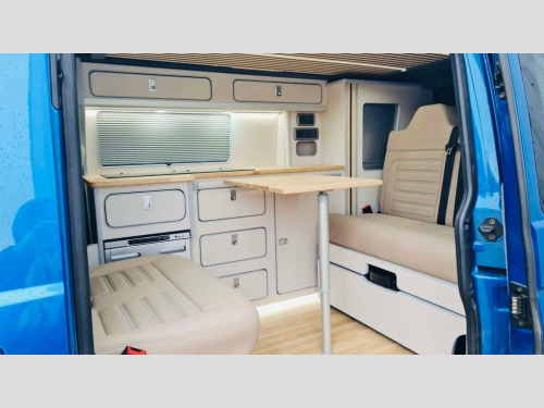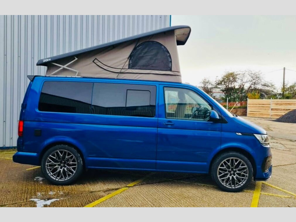 2023 Volkswagen T6.1 Transporter Campervan – Built for Freedom. Ready for Adventure. Meet your ticket to the open road — a 2023 Volkswagen Transporter T6.1 Campervan, professionally converted with no compromise on quality, comfort, or capability. Designed for explorers who crave independence and adventure, this camper is the perfect balance of rugged reliability and refined design. Built on Volkswagen's legendary T6.1 platform, this camper combines effortless performance, durability, and unmistakable style. Finished in the highly sought-after Ravenna Blue with full Sportline styling, it stands out wherever your journey takes you. Brand-new 20-inch alloys complete its confident, adventure-ready stance. Raise the Skyline elevating roof with scenic canvas and connect with the outdoors. The acoustic LED-lit internal roof bed transforms nights under the stars into a comfortable, memorable experience. Inside, the craftsmanship shines through — smoke-grey carpeting, thermal lining, and Dacron insulation ensure a warm, quiet cabin for every season. Attention to detail is everywhere: hidden-clip panelling and Polysafe flooring deliver a clean, durable finish, while soft-close units with silver detailing bring everyday practicality with a premium touch. Power, Comfort, and Capability Adventure-ready systems mean you can go further, for longer: 240v Hook-up and Smart Charger 110Ah Leisure Battery with 12v Electrical System 175w Flexible Solar Panel with B 12V Socket - Front, 16in Steel Wheels, ABS - Anti-Lock Braking System, ASR - Anti Slip Regulation, Allergen Filter, App-Connect, Armrest - Drivers, Automatic Post-Collision Braking System, BAS - Brake Assist System, Composition Colour DAB Plus Radio System, Crosswind Assist, Cruise Control with Speed Limiter, Dash Panel with Open Stowage Compartment, Dashboard - Dimmable Illumination, Daytime Running Lights, Door Mirrors - Electrically Adjustable a, Driver Alert System, Drivers Seat with Armrest - Height Adjus, Drivers and Front Passengers Airbags wit, EDL - Electronic Differential Lock, ESP - Electronic Stability Programme, Electric Windows - Front, Electronic Engine Immobiliser, Electronic