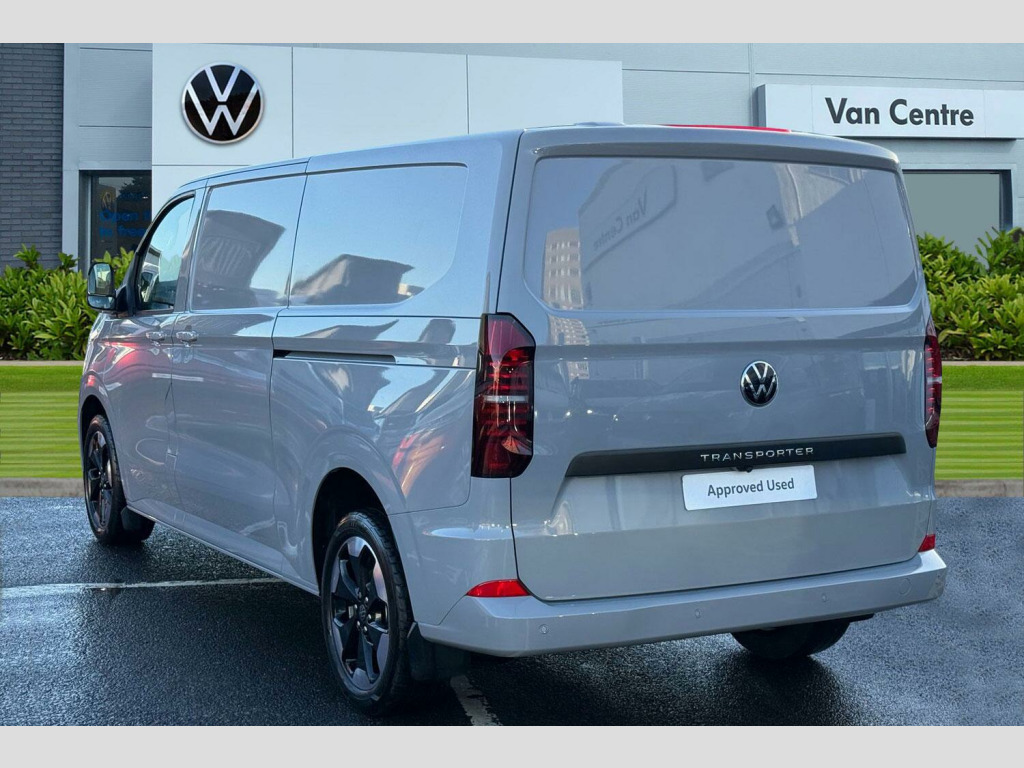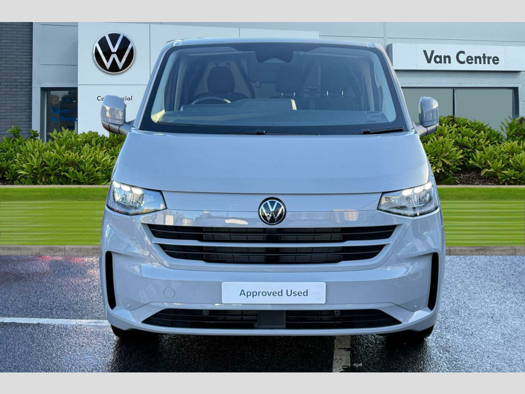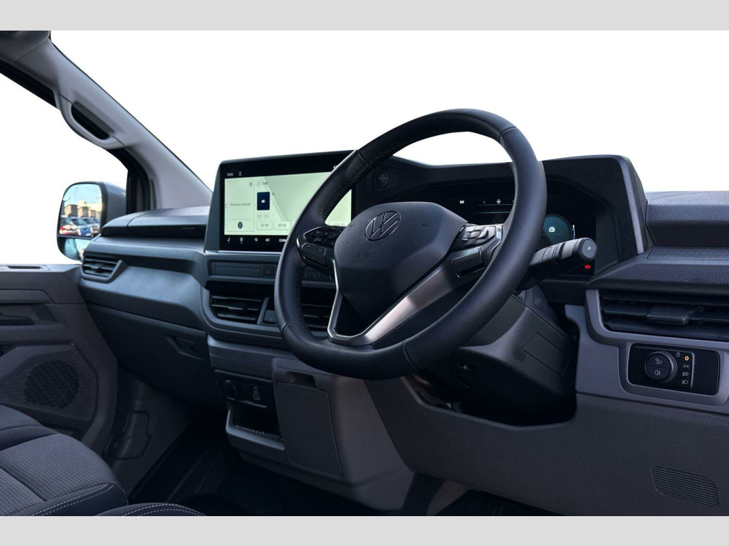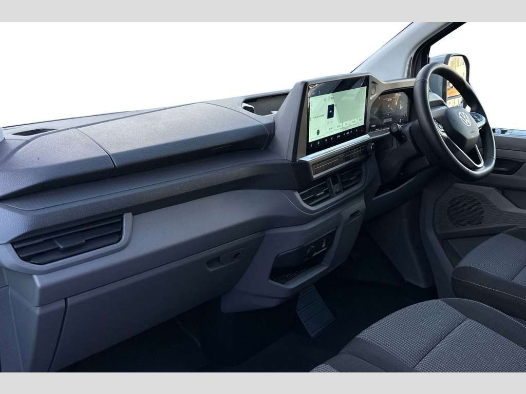 Stone Grey, Rear Tailgate, 19in Alloy Wheels - Indianapolis in Grey Metallic Diamond-Turned Surface, Sliding Doors on Driver Side and Front Passenger Side, Keyless Access with SAFELOCK, LED Main Headlamps with LED Seperate Daytime Running Light with Cornering Light and Poor Weather Light, Stone Grey-Solid paint, Tailgate-Solid, without window, Twin sliding side load doors, LED main headlight, LED daytime running light, cornering light and poor weather light, LED rear lights with exclusive light signature, Exterior mirrors, power-adjustable, heated and power-folding via vehicle key, Double passenger seat, Single zone air conditioning system with automatic control in cab, Keyless Access, with SAFELOCK, Rear tailgate, Twin sliding side load doors, Solid - Stone Grey, 19" Indianapolis Alloy wheels, Steel spare wheel with jack and without tyre pressure sensor, Alloy wheel security locking bolts, Remainder of VW '5 Plus Promise, including:, 5 Years Warranty, 5 Years Road Side Assist, 5 Services, 3 MOT's, Heat reflecting side window glass, Body colour bumpers, Body coloured door handles, Body coloured radiator grille, Mud flaps front and rear, Rear Transporter nameplate in black grained decorative trim, Vehicle opening configuration 1x 1st row of seats, 2x all doors, Electromechanical brake booster, Electronic stability control, ABS, ASR with deactivation button, hill start assist and brake assist system, Adaptive cruise control, Electromechanical speed sensitive power steering, height and longitudinally adjustable steering column, Lane and blind spot assist with exit warning system, Traffic jam assist, Wrong way driver warning, Body coloured door mirrors, Electrically heated, adjustable and folding door mirrors, Driver and front passenger airbag with front passenger airbag deactivation, Dual tone horn, Front and curtain airbags for driver and front passenger, Seat belt pretensioner for driver seat, Apple CarPlay and Android Auto, Wireless mobile phone charging, 12" digital drivers display, 13" touchscreen infotainment display with wireless app connect and DAB radio, 5G Modem, Dynamic road sign display, eCall emergency system, Preparation of VW connect and connect plus, Alternator - 230A, 2x 15-W USB data/charging ports in dashboard and 1x USB-C, 1x USB-A center bottom, 5 additional USB-C charging ports, Black plastic scuff plate for sliding door in cargo without illumination, Gear selector lever on steering wheel, Glasses compartment in driver side roof, Grab handle on A-pillar passenger side, Illuminated lockable glovebox, Narrow centre console with cup holder and compartment for mobile phone, Overhead storage compartment, Rubber floor covering in cab, Striped fabric upholstery, Cabin interior lighting, 12V outlet in centre console and 12V outlet on rear right D-pillar, 2x LED lights in load compartment, 3x additional super bright LED lights in load compartment, Lashing rings for reinforced floor covering, Without passenger seats in load compartment, 4 way height and tilt adjustable head restraints, Anti theft alarm system with interior monitoring in cab, backup horn and towing protection, Electronic immobiliser, Lockable wheel bolts, Preparation for alcohol ignition interlock, 5+ Promise