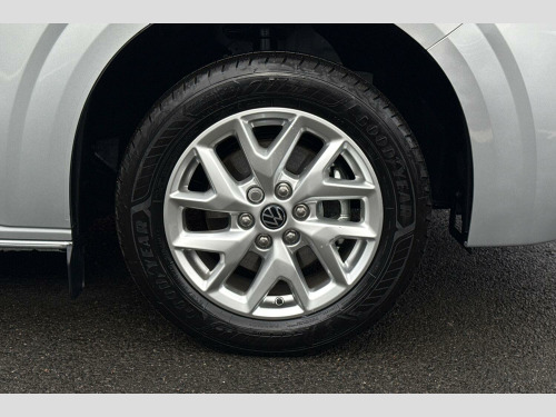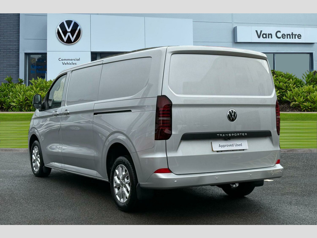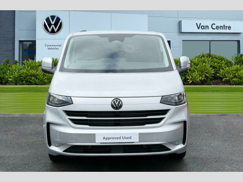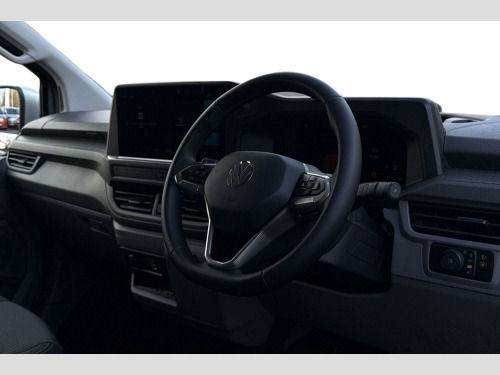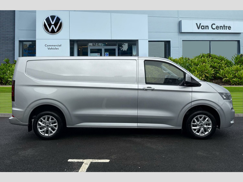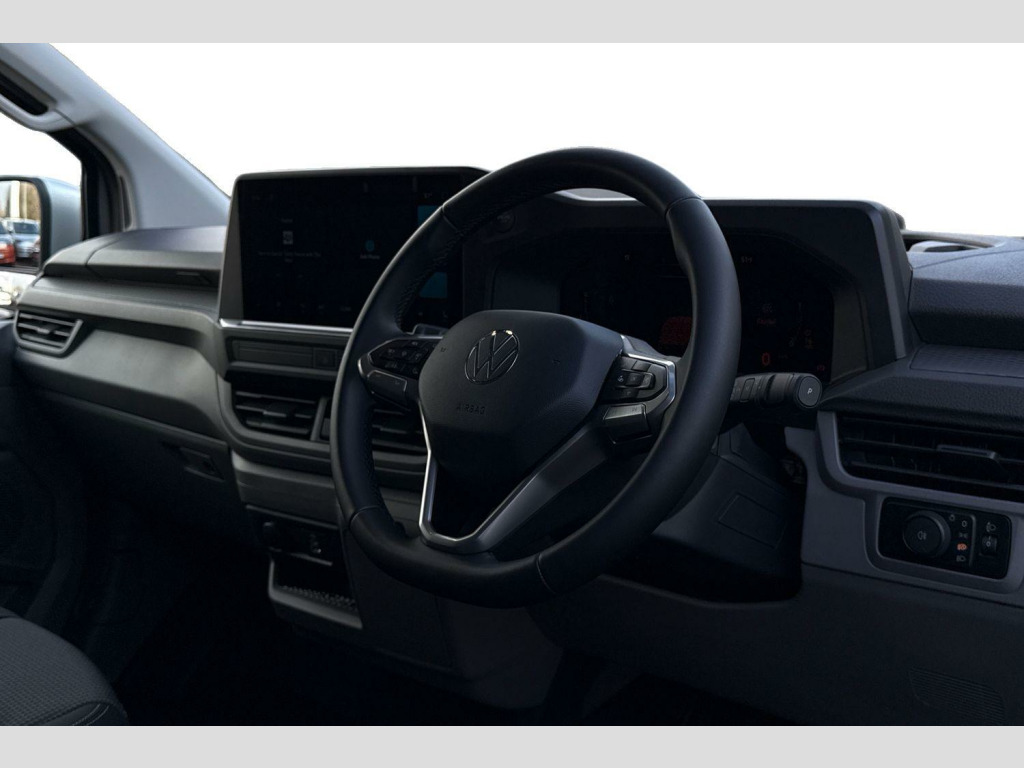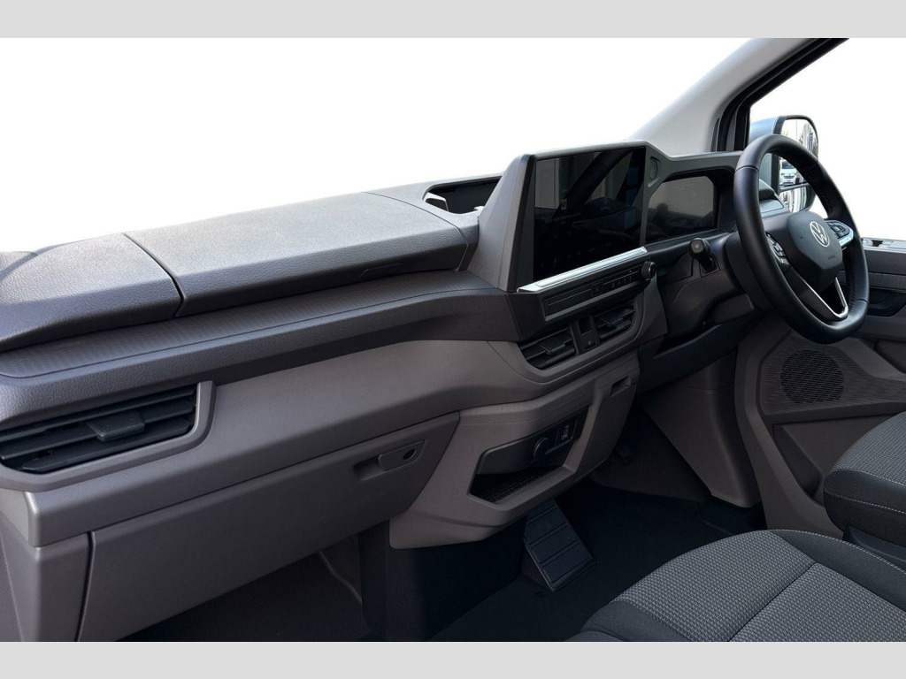 Light Grey-Metallic Paint, 17in Alloy Wheels - Le Mans in Silver, Rear Tailgate, Heated and Laminated Safety Glass Windshield with Heat and Sound-Insulating Glass, Heated Rear Window, Light Grey (Silver) Metallic, Tailgate-Solid, without window, Single sliding side load door, LED main headlight, LED daytime running lights, Exterior mirrors, power-adjustable, heated and power-folding, Heated and laminated safety glass, Double passenger seat, Single zone air conditioning system with automatic control in cab, Rear tailgate, Single sliding side load door, Light Grey Metallic (Silver), 17" 'Le Mans' alloy wheels in silver, Steel spare wheel with jack and without tyre pressure sensor, Alloy wheel security locking bolts, Remainder of VW '5 Plus Promise, including:, 5 Years Warranty, 5 Years Road Side Assist, 5 Services, 3 MOT's, Heat reflecting side window glass, Body colour bumpers, Body coloured door handles, Body coloured radiator grille, Mud flaps front and rear, Rear Transporter nameplate in black grained decorative trim, Vehicle opening configuration 1x 1st row of seats, 2x all doors, Electromechanical brake booster, Electronic stability control, ABS, ASR with deactivation button, hill start assist and brake assist system, Adaptive cruise control, Electromechanical speed sensitive power steering, height and longitudinally adjustable steering column, Lane and blind spot assist with exit warning system, Traffic jam assist, Wrong way driver warning, Body coloured door mirrors, Electrically heated, adjustable and folding door mirrors, Driver and front passenger airbag with front passenger airbag deactivation, Dual tone horn, Front and curtain airbags for driver and front passenger, Seat belt pretensioner for driver seat, Apple CarPlay and Android Auto, Wireless mobile phone charging, 12" digital drivers display, 13" touchscreen infotainment display with wireless app connect and DAB radio, 5G Modem, Dynamic road sign display, eCall emergency system, Preparation of VW connect and connect plus, Alternator - 230A, 2x 15-W USB data/charging ports in dashboard and 1x USB-C, 1x USB-A center bottom, 5 additional USB-C charging ports, Black plastic scuff plate for sliding door in cargo without illumination, Gear selector lever on steering wheel, Glasses compartment in driver side roof, Grab handle on A-pillar passenger side, Illuminated lockable glovebox, Narrow centre console with cup holder and compartment for mobile phone, Overhead storage compartment, Rubber floor covering in cab, Striped fabric upholstery, Cabin interior lighting, 12V outlet in centre console and 12V outlet on rear right D-pillar, 2x LED lights in load compartment, 3x additional super bright LED lights in load compartment, Lashing rings for reinforced floor covering, Without passenger seats in load compartment, 4 way height and tilt adjustable head restraints, Anti theft alarm system with interior monitoring in cab, backup horn and towing protection, Electronic immobiliser, Lockable wheel bolts, Preparation for alcohol ignition interlock, 5+ Promise