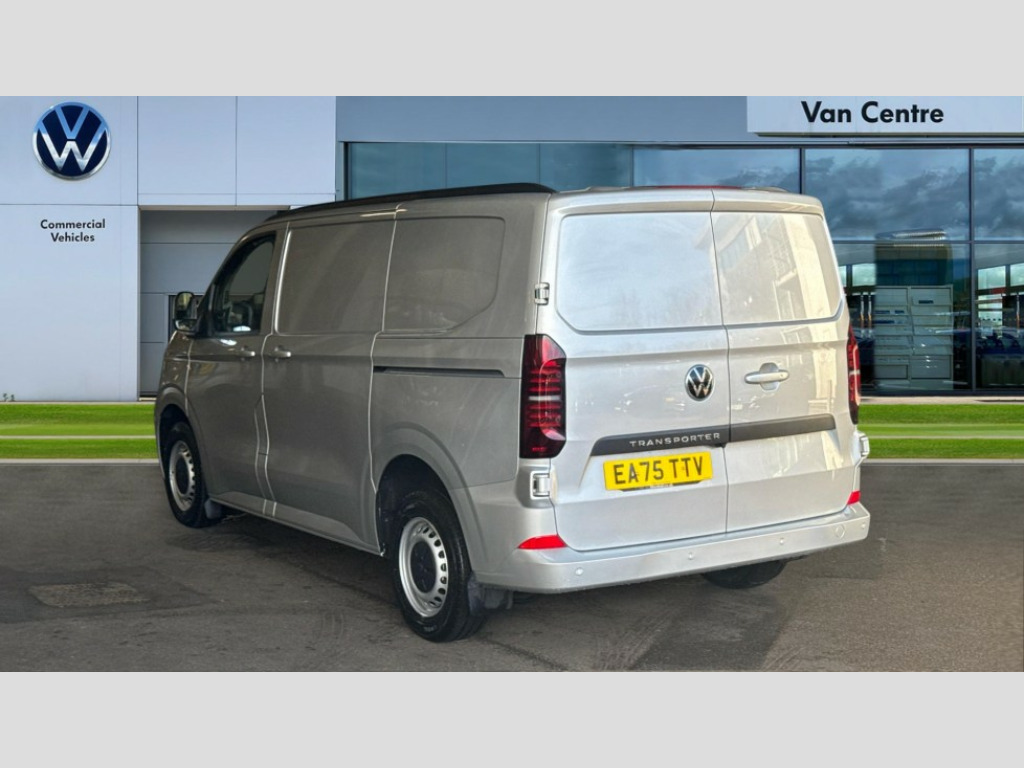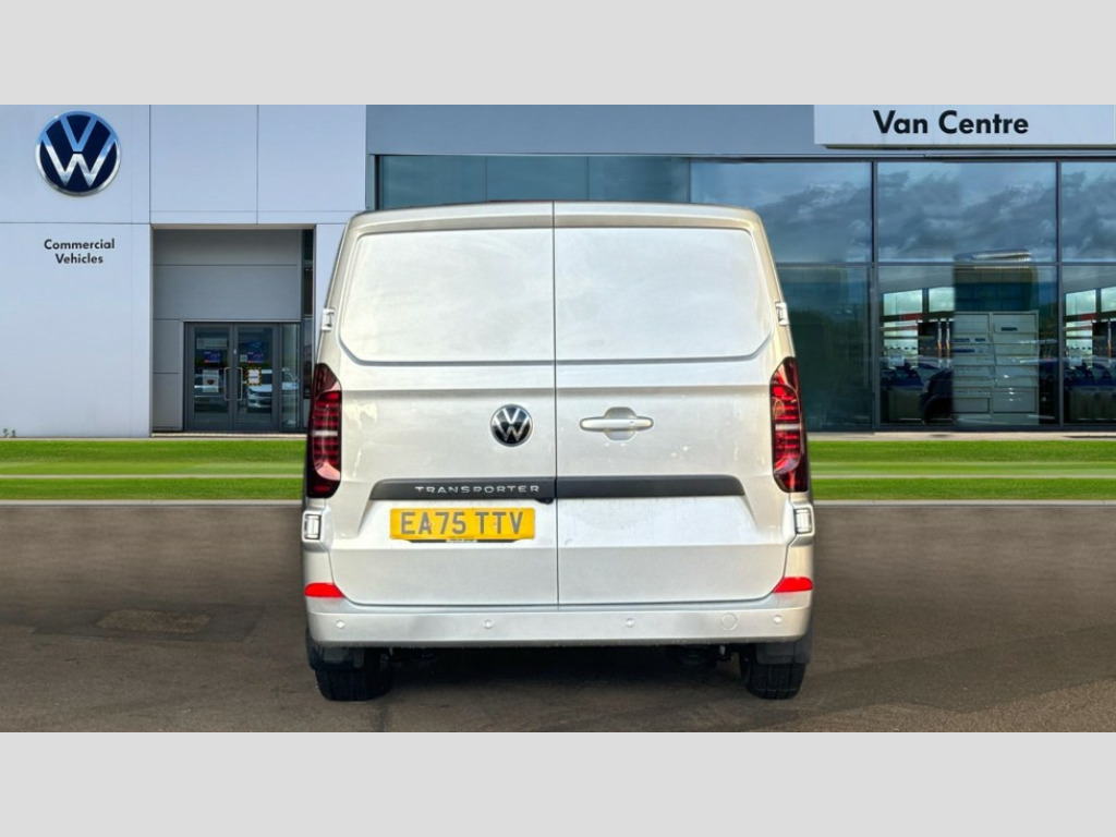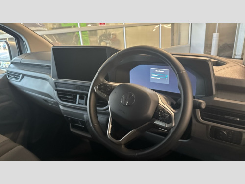 Volkswagen Transporter 2.0 TDI 150 Commerce Plus Van Auto 12" digital drivers display, 13" touchscreen infotainment display with wireless app connect and DAB radio, 5G Modem, Apple CarPlay and Android Auto, Cruise control, Dynamic road sign display, eCall emergency system, Electromechanical speed sensitive power steering, height and longitudinally adjustable steering column, Lane assist, Preparation of VW connect and connect plus, Wrong way driver warning, 4 speakers - 2x dashboard, 2x cab doors, Body coloured door handles, Heat reflecting side window glass, Mud flaps front and rear, Rear Transporter nameplate in black grained decorative trim, Vehicle opening configuration 1x 1st row of seats, 2x all doors, 2x 15-W USB data/charging ports in dashboard and 1x USB-C, 1x USB-A center bottom, 2x LED lights in load compartment, 3 spoke leather wrapped multi function steering wheel, 4 way height and tilt adjustable head restraints, Black plastic scuff plate for sliding door in cargo without illumination, Cabin interior lighting, Gear selector lever on steering wheel, Lashing rings for reinforced floor covering, Narrow centre console with cup holder and compartment for mobile phone, Overhead storage compartment, Roof grab handle on front passenger side, Rubber floor covering in cab, Striped fabric upholstery, Without passenger seats in load compartment, Driver and front passenger airbag with front passenger airbag deactivation, Dual tone horn, Front and curtain airbags for driver and front passenger, Seat belt pretensioner for driver seat, Anti theft alarm system with interior monitoring in cab, backup horn and towing protection, Electronic immobiliser, Preparation for alcohol ignition interlock, 5+ Promise, Alternator - 230A, Electronic stability control, ABS, ASR with deactivation button, hill start assist and brake assist system