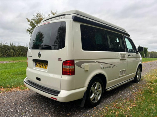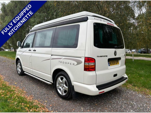 Beautifully maintained 2009 Volkswagen Autosleeper Trooper- a geniune factory conversion by Auto Sleepers. This much loved campervan comes with a full service history, showing consistent care and maintenance throughout its life. Drives superbly and ready for new adventures. Features & Specification: Factory-built Auto-Sleeper Trooper conversion Pop-top roof with upper double bed Rock & Roll bed- Sleeps 2 adults comfortably Fully equipped kitchenette- gas hob, sink, fridge Fresh and waste water tanks 240v mains hook-up and 12v leisure system Swivel passenger seat Fold away dining table Ample storage throughout CD/Radio Alloy wheels Power steering, ABS, Airbags Central locking, electric windows & mirrors Recent service & mot Full service history- stamped book & receipts Why you will love it: Excellent condition inside and out for its age. Clean, Smoke-free and pet-free interior. Everything works as it should- ready to hit the road immediately. A versatile and reliable VW camper with the quality and craftsmanship of an official Auto-Sleepers conversion. Compact enough for everyday driving, yet fully equipped for weekends away or longer trips. This Trooper has been properly looked after and always stored properly when not in use. It's clear that it has never been neglected- a real credit to its previous owners. Ideal for anyone looking for a geniune, Ready to go VW camper that can double as both a reliable daily drive and a fully equipped holiday vehicl