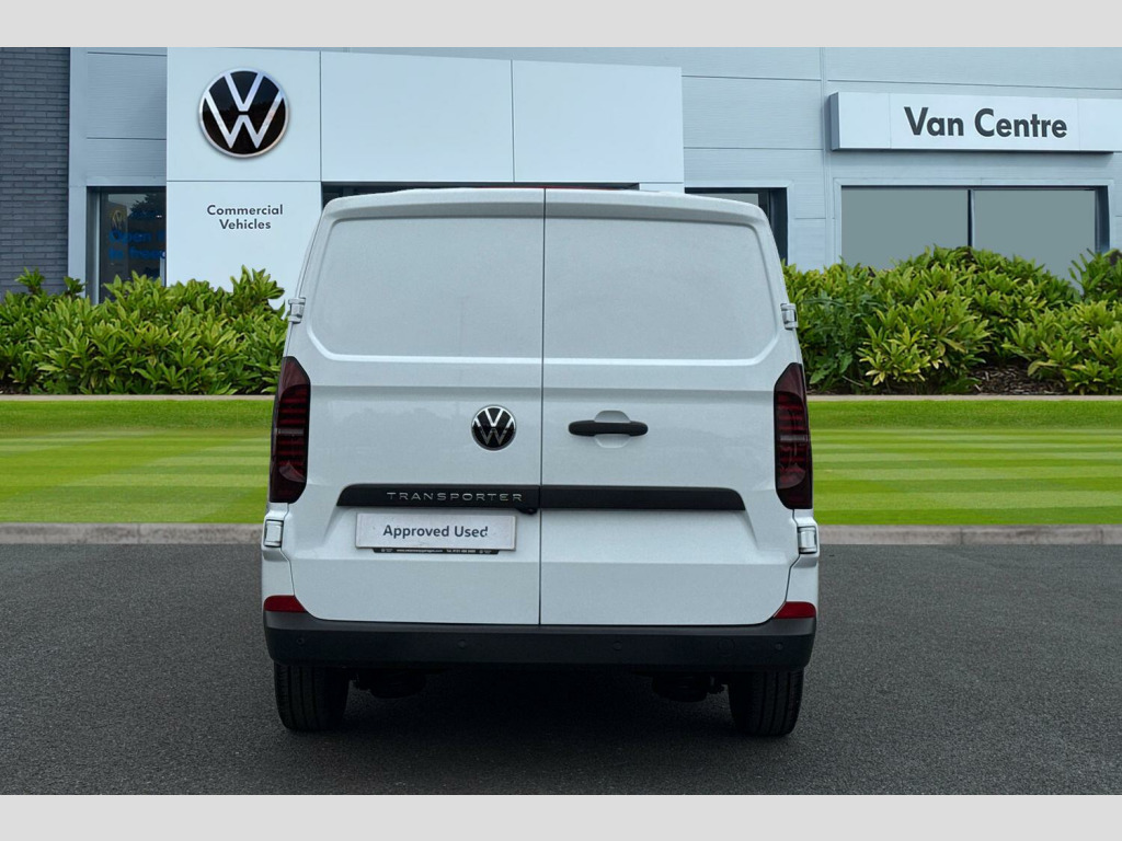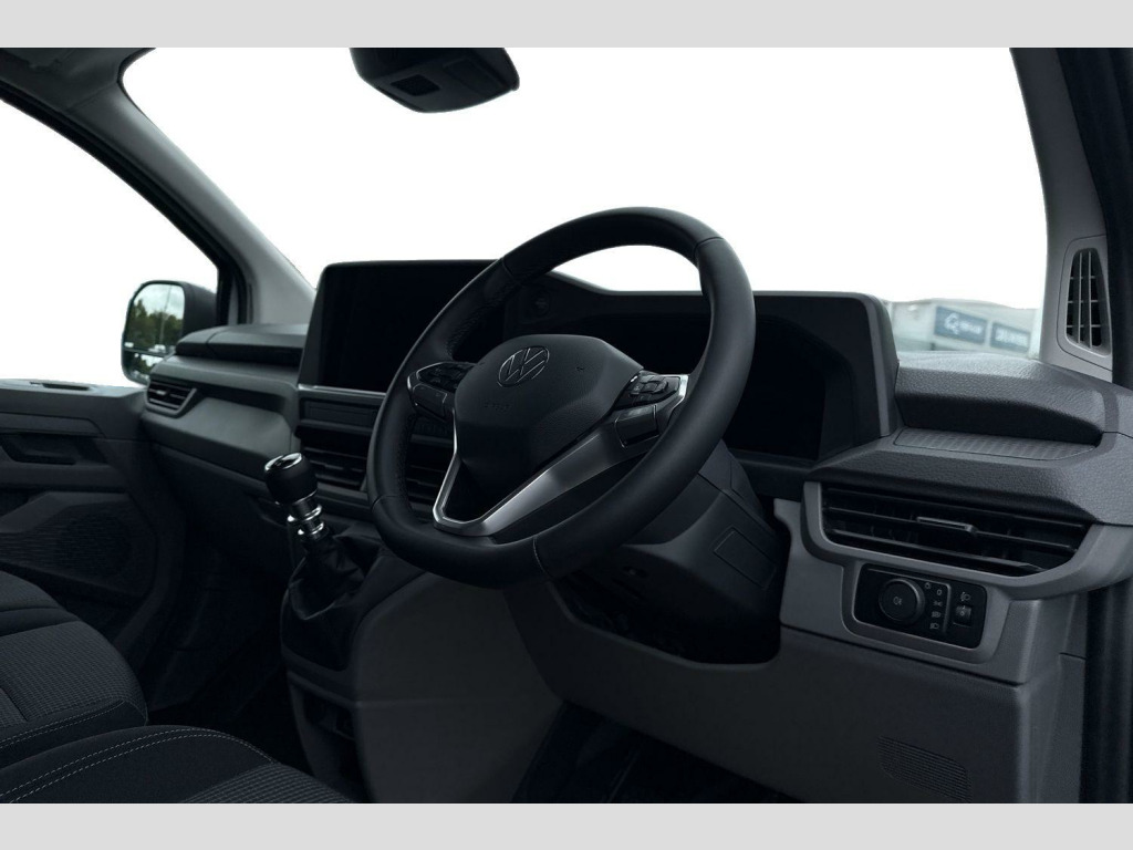 Clear White, Anti-theft alarm system, interior monitoring, backup horn and towing protection, High-Gloss Black exterior mirror housings and door handles, Black grained bumpers in front and rear, Keyless Start with SAFELOCK, Air Conditioning, Rubber floor covering in cab, Parking sensors front and rear, Rear view camera, Green tinted heat insulating glass in cab and passenger compartment, Heated front windscreen, Windshield wiper intermittent control with rain sensor for windshield wipers, 16" chassis with 16" brake system, Radiator grille with 2 chrome trims, Transporter nameplate on the rear fender, Automatic headlight control, leaving home and manual coming home feature, Front fog lamps with cornering light, Electronic stability control, ABS, ASR with deactivation button, hill start assist and brake assist system, Start/stop system with regenerative breaking, Adaptive cruise control, Cross wind assist, Electromechanical speed sensitive power steering, height and longitudinally adjustable steering column, Left convex exterior mirror, Power adjustable and heated exterior mirrors, Power folding adjustable door mirrors with separately heated, Right convex exterior mirror, 3 point height adjustable seat belts on outer seats cab with electric pretensioners, Driver and front passenger airbag with front passenger airbag deactivation, Single tone horn, Warning buzzer and light for driver and front passenger seat belt not fastened, Without child safety lock in passenger compartment, Mobile phone interface, 2 USB interfaces type C in dashboard, 4 speakers with 2 tweeters and 2 woofers, Composition colour radio with 6.5" touchscreen, Digital radio reception (DAB+), Volkswagen app connect, Closing rear wing door with unlatching from the inside, Rear wing doors without window apertures, Dimmable illuminated instruments, Driver alert with Multi-function display plus, Multi function display plus with black and white display, eCall emergency system, Forward collision warning front assist with autonomous emergency braking, Diesel particulate filter, Dust/pollen filter, 3 spoke leather wrapped multi function steering wheel, Auto dimming breakaway interior rear view mirror, Comfort headliner in cab, hardboard roof trim in passenger and load compartment, Glove compartment with illumination, High partition, Refrigerant R134a, Rubber floor covering in cab, Standard lower part dashboard in palladium, Storage compartments on cab seats and reading light, LED Interior lighting in load and passenger compartment, Front and rear left without window closed side panel in load compartment, Interior plastic loading edge protection, Without right side window apertures in passenger and load compartment, Comfort pack - Transporter, Exterior pack without fog light- Transporter, Non smoker pack - Transporter, Front seats on the right in 1st row of seat, Manual adjustable lumbar support for right single seat in 1st row seats, Anti theft alarm system with interior monitoring in cab, backup horn and towing protection, Lockable wheel bolts, 16" Clayton alloy wheels