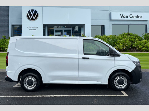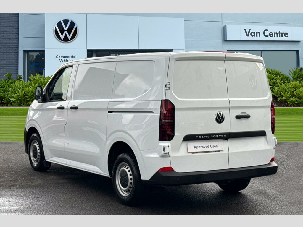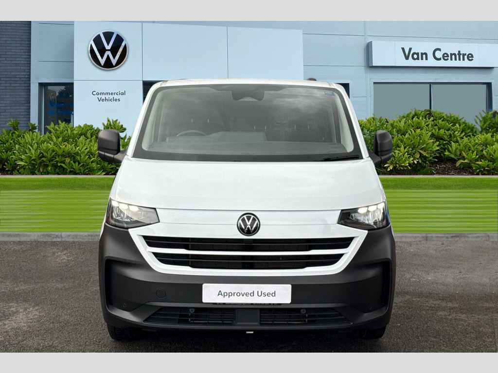 The Volkswagen Transporter stands out with its low CO2 emissions, indicating a more environmentally conscious performance compared to similar vehicles. Furthermore, its low insurance group rating suggests that running costs for this model are also more favourable than many others in its class. This combination of efficient performance and economical ownership makes the Transporter a sensible and appealing option. Solid paint-Clear White, LED headlights with separate LED daytime running lights, Single sliding side load door, Rear wing cargo doors, Parking sensors front + rear, Rear view camera, Exterior Pack with black bumpers, High metal partition without window, Fully ply-lined, Rear wing doors, Sliding door on front passenger side, 3 seat cab package - Transporter, 5 Plus Promise Pack inc. the remainder of:, 5 years warranty✔, 5 Years Roadside Assist✔, 5 Services✔, 3 MOTs✔, (all from date of registration), Solid - Clear White, Striped fabric - Titanium/Palladium black, 16" steel wheels with hub caps, Steel spare wheel with jack and without tyre pressure sensor, Heat reflecting side window glass, Body coloured door handles, Mud flaps front and rear, Rear Transporter nameplate in black grained decorative trim, Vehicle opening configuration 1x 1st row of seats, 2x all doors, Electronic stability control, ABS, ASR with deactivation button, hill start assist and brake assist system, Cruise control, Electromechanical speed sensitive power steering, height and longitudinally adjustable steering column, Lane assist, Wrong way driver warning, Driver and front passenger airbag with front passenger airbag deactivation, Dual tone horn, Front and curtain airbags for driver and front passenger, Seat belt pretensioner for driver seat, Apple CarPlay and Android Auto, 4 speakers - 2x dashboard, 2x cab doors, 12" digital drivers display, 13" touchscreen infotainment display with wireless app connect and DAB radio, 5G Modem, Dynamic road sign display, eCall emergency system, Preparation of VW connect and connect plus, Alternator - 230A, 2x 15-W USB data/charging ports in dashboard and 1x USB-C, 1x USB-A center bottom, 3 spoke leather wrapped multi function steering wheel, Black plastic scuff plate for sliding door in cargo without illumination, Leatherette gear lever, Narrow centre console with cup holder and compartment for mobile phone, Overhead storage compartment, Roof grab handle on front passenger side, Rubber floor covering in cab, Striped fabric upholstery, Cabin interior lighting, 2x LED lights in load compartment, Lashing rings for reinforced floor covering, Without passenger seats in load compartment, 4 way height and tilt adjustable head restraints, Anti theft alarm system with interior monitoring in cab, backup horn and towing protection, Electronic immobiliser, Preparation for alcohol ignition interlock, 5+ Promise