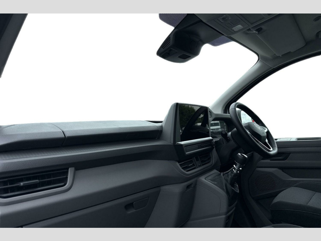 Clear White, Anti-theft alarm system, interior monitoring, backup horn and towing protection, High-Gloss Black exterior mirror housings and door handles, Black grained bumpers in front and rear, Keyless Start with SAFELOCK, Air Conditioning, Rubber floor covering in cab, Parking sensors front and rear, Rear view camera, Green tinted heat insulating glass in cab and passenger compartment, Heated front windscreen, Windshield wiper intermittent control with rain sensor for windshield wipers, 16" chassis with 16" brake system, Radiator grille with 2 chrome trims, Transporter nameplate on the rear fender, Automatic headlight control, leaving home and manual coming home feature, Front fog lamps with cornering light, Electronic stability control, ABS, ASR with deactivation button, hill start assist and brake assist system, Start/stop system with regenerative breaking, Adaptive cruise control, Cross wind assist, Electromechanical speed sensitive power steering, height and longitudinally adjustable steering column, Left convex exterior mirror, Power adjustable and heated exterior mirrors, Power folding adjustable door mirrors with separately heated, Right convex exterior mirror, 3 point height adjustable seat belts on outer seats cab with electric pretensioners, Driver and front passenger airbag with front passenger airbag deactivation, Single tone horn, Warning buzzer and light for driver and front passenger seat belt not fastened, Without child safety lock in passenger compartment, Mobile phone interface, 2 USB interfaces type C in dashboard, 4 speakers with 2 tweeters and 2 woofers, Composition colour radio with 6.5" touchscreen, Digital radio reception (DAB+), Volkswagen app connect, Closing rear wing door with unlatching from the inside, Rear wing doors without window apertures, Dimmable illuminated instruments, Driver alert with Multi-function display plus, Multi function display plus with black and white display, eCall emergency system, Forward collision warning front assist with autonomous emergency braking, Diesel particulate filter, Dust/pollen filter, 3 spoke leather wrapped multi function steering wheel, Auto dimming breakaway interior rear view mirror, Comfort headliner in cab, hardboard roof trim in passenger and load compartment, Glove compartment with illumination, High partition, Refrigerant R134a, Rubber floor covering in cab, Standard lower part dashboard in palladium, Storage compartments on cab seats and reading light, LED Interior lighting in load and passenger compartment, Front and rear left without window closed side panel in load compartment, Interior plastic loading edge protection, Without right side window apertures in passenger and load compartment, Comfort pack - Transporter, Exterior pack without fog light- Transporter, Non smoker pack - Transporter, Front seats on the right in 1st row of seat, Manual adjustable lumbar support for right single seat in 1st row seats, Anti theft alarm system with interior monitoring in cab, backup horn and towing protection, Lockable wheel bolts, 16" Clayton alloy wheels