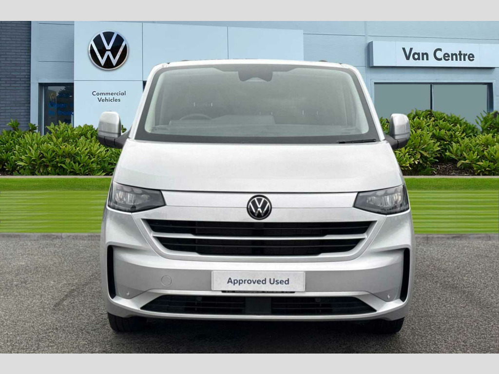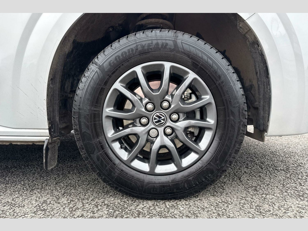 Light Grey Metallic Paint, 16" "Montreal" alloy wheels in Grey Metallic, Wireless mobile phone charging, Anti-theft alarm system, interior monitoring, backup horn and towing protection, Cab 3-seat package in 'Bi-colour' leatherette, Rubber floor covering in cab, Keyless Start with SAFELOCK, Air Conditioning, Parking sensors front and rear, Rear view camera, Green tinted heat insulating glass in cab and passenger compartment, Heated front windscreen, Windshield wiper intermittent control with rain sensor for windshield wipers, 16" chassis with 16" brake system, Radiator grille with 2 chrome trims, Transporter nameplate on the rear fender, Automatic headlight control, leaving home and manual coming home feature, Front fog lamps with cornering light, Electronic stability control, ABS, ASR with deactivation button, hill start assist and brake assist system, Start/stop system with regenerative breaking, Adaptive cruise control, Cross wind assist, Electromechanical speed sensitive power steering, height and longitudinally adjustable steering column, Left convex exterior mirror, Power adjustable and heated exterior mirrors, Power folding adjustable door mirrors with separately heated, Right convex exterior mirror, 3 point height adjustable seat belts on outer seats cab with electric pretensioners, Driver and front passenger airbag with front passenger airbag deactivation, Single tone horn, Warning buzzer and light for driver and front passenger seat belt not fastened, Without child safety lock in passenger compartment, Mobile phone interface, 2 USB interfaces type C in dashboard, 4 speakers with 2 tweeters and 2 woofers, Composition colour radio with 6.5" touchscreen, Digital radio reception (DAB+), Volkswagen app connect, Closing rear wing door with unlatching from the inside, Rear wing doors without window apertures, Dimmable illuminated instruments, Driver alert with Multi-function display plus, Multi function display plus with black and white display, eCall emergency system, Forward collision warning front assist with autonomous emergency braking, Diesel particulate filter, Dust/pollen filter, 3 spoke leather wrapped multi function steering wheel, Auto dimming breakaway interior rear view mirror, Comfort headliner in cab, hardboard roof trim in passenger and load compartment, Glove compartment with illumination, High partition, Refrigerant R134a, Rubber floor covering in cab, Standard lower part dashboard in palladium, Storage compartments on cab seats and reading light, LED Interior lighting in load and passenger compartment, Front and rear left without window closed side panel in load compartment, Interior plastic loading edge protection, Without right side window apertures in passenger and load compartment, Comfort pack - Transporter, Exterior pack without fog light- Transporter, Non smoker pack - Transporter, Front seats on the right in 1st row of seat, Manual adjustable lumbar support for right single seat in 1st row seats, Anti theft alarm system with interior monitoring in cab, backup horn and towing protection, Lockable wheel bolts, 16" Clayton alloy wheels
