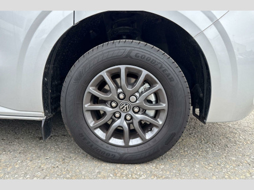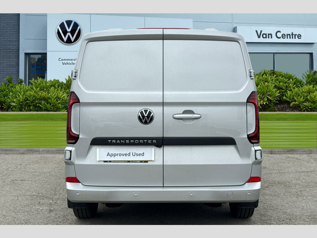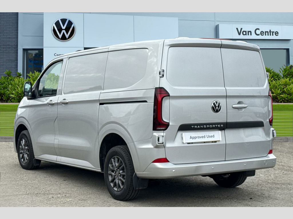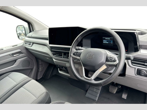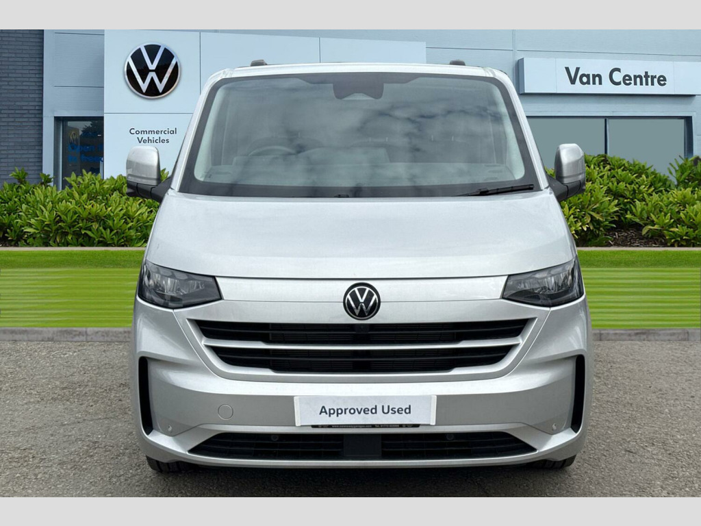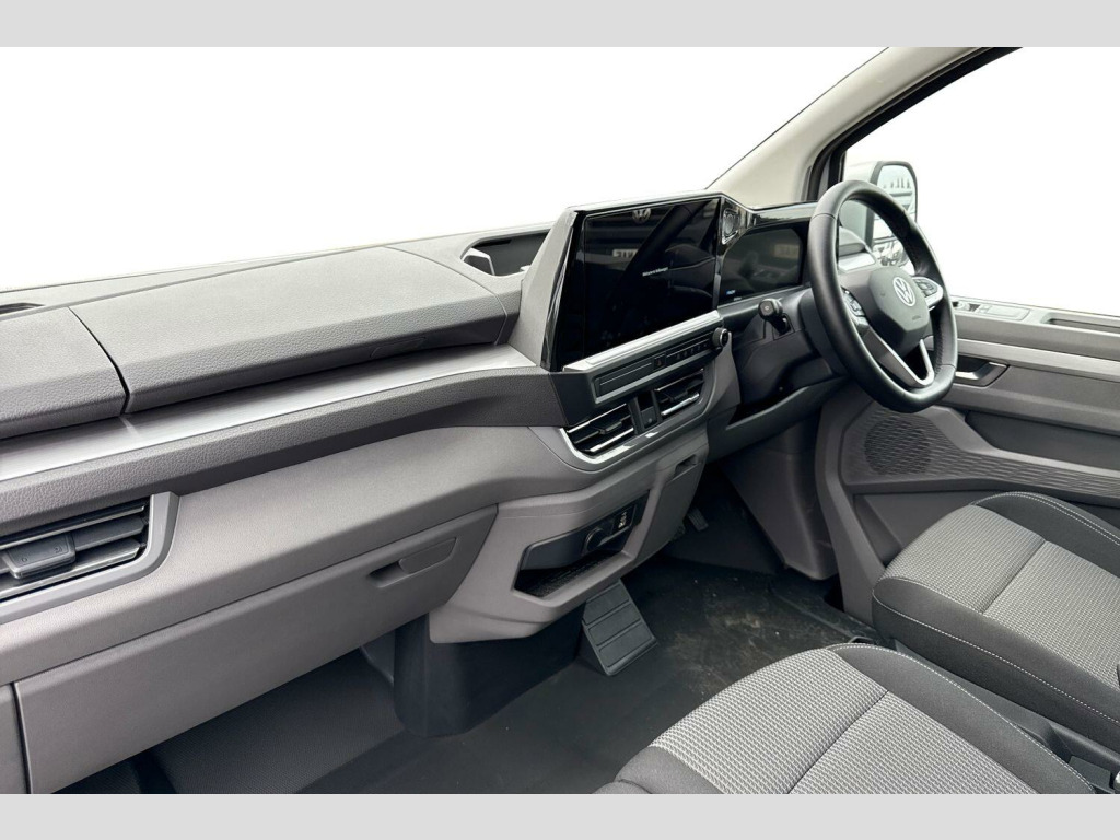 Metallic paint, LED main headlight, LED daytime running light, cornering light and poor weather light, Single zone air conditioning system with automatic control in cab, Keyless access with safelock, High metal partition fabric covering on upper part of partition on cab side, 3 seat cab package heated - Transporter, Metallic - Light grey, 16" Montreal silver alloy wheels, Heat reflecting side window glass, Body colour bumpers, Body coloured door handles, Body coloured radiator grille, Mud flaps front and rear, Rear Transporter nameplate in black grained decorative trim, Vehicle opening configuration 1x 1st row of seats, 2x all doors, Electromechanical brake booster, Electronic stability control, ABS, ASR with deactivation button, hill start assist and brake assist system, Adaptive cruise control, Electromechanical speed sensitive power steering, height and longitudinally adjustable steering column, Lane and blind spot assist with exit warning system, Traffic jam assist, Wrong way driver warning, Body coloured door mirrors, Electrically heated, adjustable and folding door mirrors, Driver and front passenger airbag with front passenger airbag deactivation, Dual tone horn, Front and curtain airbags for driver and front passenger, Seat belt pretensioner for driver seat, Apple CarPlay and Android Auto, Wireless mobile phone charging, 12" digital drivers display, 13" touchscreen infotainment display with wireless app connect and DAB radio, 5G Modem, Dynamic road sign display, eCall emergency system, Preparation of VW connect and connect plus, Alternator - 230A, 2x 15-W USB data/charging ports in dashboard and 1x USB-C, 1x USB-A center bottom, 5 additional USB-C charging ports, Black plastic scuff plate for sliding door in cargo without illumination, Gear selector lever on steering wheel, Glasses compartment in driver side roof, Grab handle on A-pillar passenger side, Illuminated lockable glovebox, Narrow centre console with cup holder and compartment for mobile phone, Overhead storage compartment, Rubber floor covering in cab, Striped fabric upholstery, Cabin interior lighting, 12V outlet in centre console and 12V outlet on rear right D-pillar, 2x LED lights in load compartment, 3x additional super bright LED lights in load compartment, Lashing rings for reinforced floor covering, Without passenger seats in load compartment, 4 way height and tilt adjustable head restraints, Anti theft alarm system with interior monitoring in cab, backup horn and towing protection, Electronic immobiliser, Lockable wheel bolts, Preparation for alcohol ignition interlock, 5+ Promise