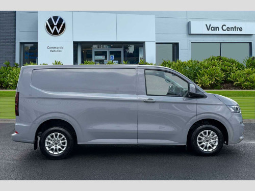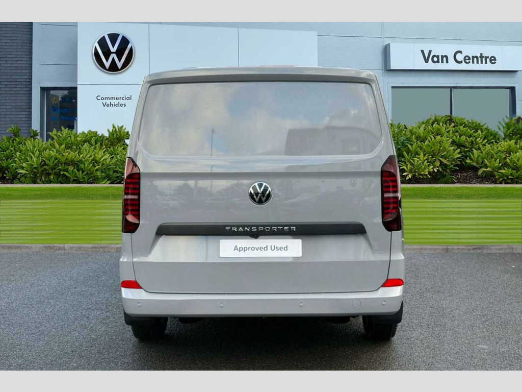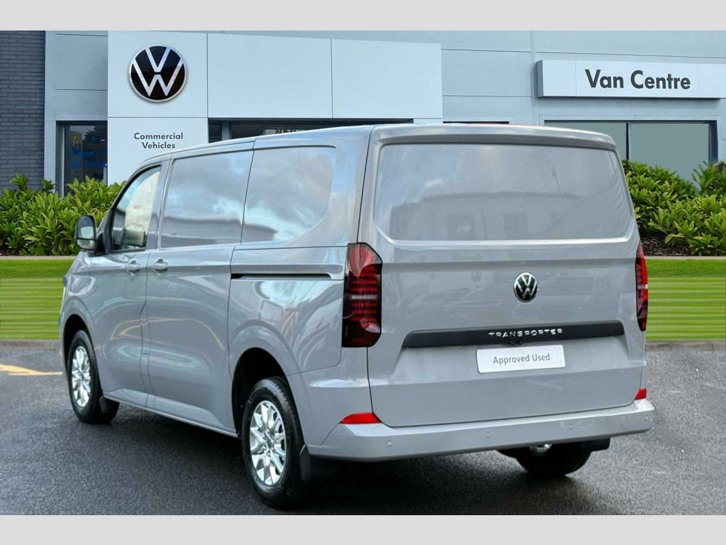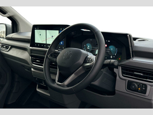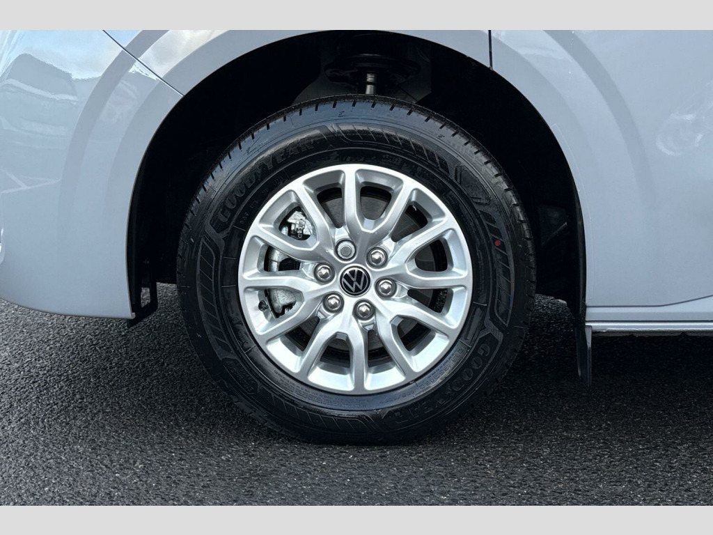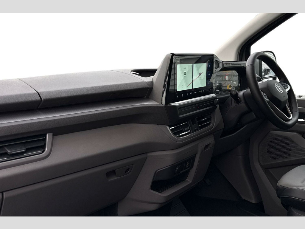 Solid paint-Stone Grey, LED main headlight, LED daytime running light, cornering light and poor weather light, Single sliding side load door-Passenger side, Tailgate-Solid-No Window, Roof rails, 3 spoke heated leather wrapped multi function steering wheel, Full height steel bulkhead, Keyless access, Rear tailgate, Sliding door on front passenger side, Double bench in cab-3 Seater cab pack, Life interior trim pack - Transporter, Solid - Stone Grey, Striped fabric - Titanium/Palladium black, 19" Indianapolis alloy wheels, Temporary steel spare wheel, 5 Years Warranty, 5 Years Roadside Assistance, 5 Services, 3 MOT's, (From Date Of Registration), Heat reflecting side window glass, Body colour bumpers, Body coloured door handles, Body coloured radiator grille, Mud flaps front and rear, Rear Transporter nameplate in black grained decorative trim, Vehicle opening configuration 1x 1st row of seats, 2x all doors, Electromechanical brake booster, Electronic stability control, ABS, ASR with deactivation button, hill start assist and brake assist system, Adaptive cruise control, Electromechanical speed sensitive power steering, height and longitudinally adjustable steering column, Lane and blind spot assist with exit warning system, Traffic jam assist, Wrong way driver warning, Body coloured door mirrors, Electrically heated, adjustable and folding door mirrors, Driver and front passenger airbag with front passenger airbag deactivation, Dual tone horn, Front and curtain airbags for driver and front passenger, Seat belt pretensioner for driver seat, Apple CarPlay and Android Auto, Wireless mobile phone charging, 12" digital drivers display, 13" touchscreen infotainment display with wireless app connect and DAB radio, 5G Modem, Dynamic road sign display, eCall emergency system, Preparation of VW connect and connect plus, Alternator - 230A, 2x 15-W USB data/charging ports in dashboard and 1x USB-C, 1x USB-A center bottom, 5 additional USB-C charging ports, Black plastic scuff plate for sliding door in cargo without illumination, Gear selector lever on steering wheel, Glasses compartment in driver side roof, Grab handle on A-pillar passenger side, Illuminated lockable glovebox, Narrow centre console with cup holder and compartment for mobile phone, Overhead storage compartment, Rubber floor covering in cab, Striped fabric upholstery, Cabin interior lighting, 12V outlet in centre console and 12V outlet on rear right D-pillar, 2x LED lights in load compartment, 3x additional super bright LED lights in load compartment, Lashing rings for reinforced floor covering, Without passenger seats in load compartment, 4 way height and tilt adjustable head restraints, Anti theft alarm system with interior monitoring in cab, backup horn and towing protection, Electronic immobiliser, Lockable wheel bolts, Preparation for alcohol ignition interlock, 5+ Promise