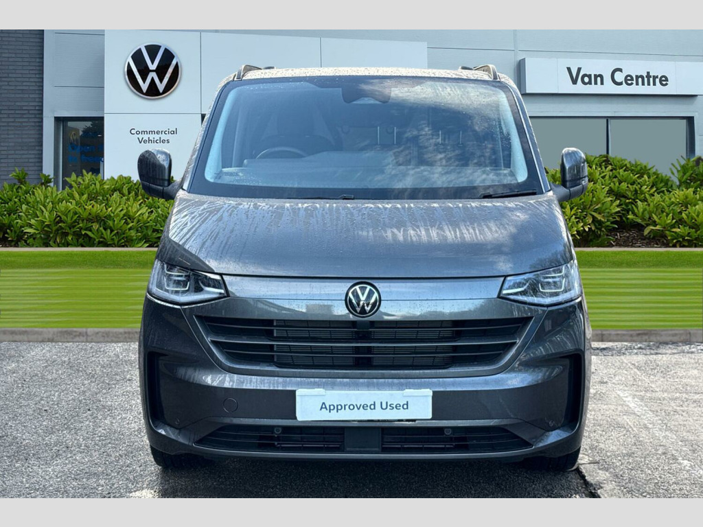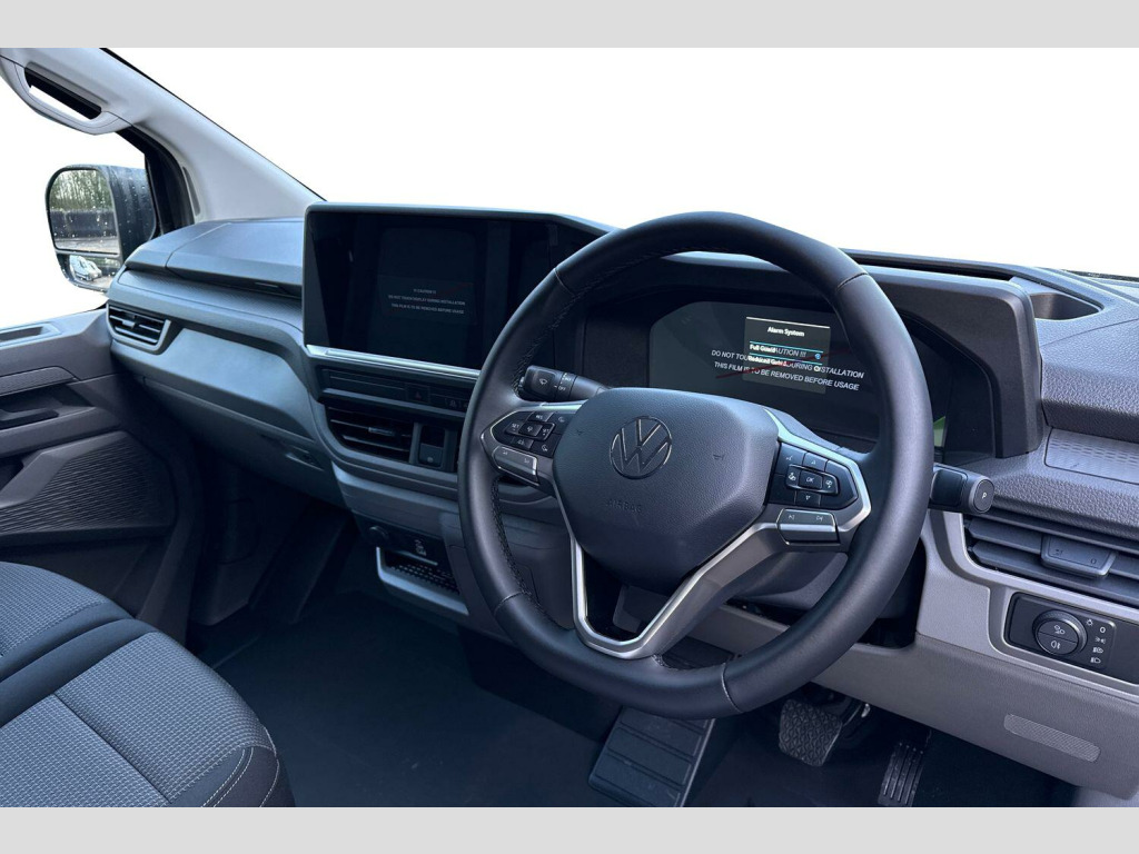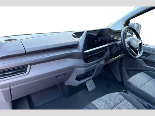 Volkswagen Transporter 2.0 TDI 170 Commerce Pro Van Auto Metallic paint, Roof rails, IQ light LED matrix headlight with coming home and leaving function, Keyless access with safelock, Rear tailgate, 3 seat cab package heated - Transporter, Parking package premium - Transporter, Metallic - Graphite dust, Goodyear summer tyres, 19" Indianapolis black diamond turned alloy wheels, Heat reflecting side window glass, Body colour bumpers, Body coloured door handles, Body coloured radiator grille, Mud flaps front and rear, Rear Transporter nameplate in black grained decorative trim, Vehicle opening configuration 1x 1st row of seats, 2x all doors, Electromechanical brake booster, Electronic stability control, ABS, ASR with deactivation button, hill start assist and brake assist system, Adaptive cruise control, Electromechanical speed sensitive power steering, height and longitudinally adjustable steering column, Lane and blind spot assist with exit warning system, Traffic jam assist, Wrong way driver warning, Body coloured door mirrors, Electrically heated, adjustable and folding door mirrors, Driver and front passenger airbag with front passenger airbag deactivation, Dual tone horn, Front and curtain airbags for driver and front passenger, Seat belt pretensioner for driver seat, Apple CarPlay and Android Auto, Wireless mobile phone charging, 12" digital drivers display, 13" touchscreen infotainment display with wireless app connect and DAB radio, 5G Modem, Dynamic road sign display, eCall emergency system, Preparation of VW connect and connect plus, Alternator - 230A, 2x 15-W USB data/charging ports in dashboard and 1x USB-C, 1x USB-A center bottom, 5 additional USB-C charging ports, Black plastic scuff plate for sliding door in cargo without illumination, Gear selector lever on steering wheel, Glasses compartment in driver side roof, Grab handle on A-pillar passenger side, Illuminated lockable glovebox, Narrow centre console with cup holder and compartment for mobile phone, Overhead storage compartment, Rubber floor covering in cab, Striped fabric upholstery, Cabin interior lighting, 12V outlet in centre console and 12V outlet on rear right D-pillar, 2x LED lights in load compartment, 3x additional super bright LED lights in load compartment, Lashing rings for reinforced floor covering, Without passenger seats in load compartment, 4 way height and tilt adjustable head restraints, Anti theft alarm system with interior monitoring in cab, backup horn and towing protection, Electronic immobiliser, Lockable wheel bolts, Preparation for alcohol ignition interlock, 5+ Promise