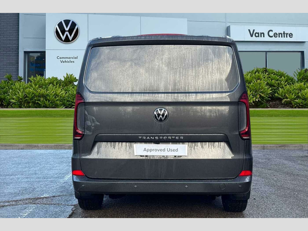 Volkswagen Transporter 2.0 TDI 170 Commerce Pro Van Auto Metallic paint, Roof rails, IQ light LED matrix headlight with coming home and leaving function, Keyless access with safelock, Rear tailgate, 3 seat cab package heated - Transporter, Parking package premium - Transporter, Metallic - Graphite dust, Goodyear summer tyres, 19" Indianapolis black diamond turned alloy wheels, Heat reflecting side window glass, Body colour bumpers, Body coloured door handles, Body coloured radiator grille, Mud flaps front and rear, Rear Transporter nameplate in black grained decorative trim, Vehicle opening configuration 1x 1st row of seats, 2x all doors, Electromechanical brake booster, Electronic stability control, ABS, ASR with deactivation button, hill start assist and brake assist system, Adaptive cruise control, Electromechanical speed sensitive power steering, height and longitudinally adjustable steering column, Lane and blind spot assist with exit warning system, Traffic jam assist, Wrong way driver warning, Body coloured door mirrors, Electrically heated, adjustable and folding door mirrors, Driver and front passenger airbag with front passenger airbag deactivation, Dual tone horn, Front and curtain airbags for driver and front passenger, Seat belt pretensioner for driver seat, Apple CarPlay and Android Auto, Wireless mobile phone charging, 12" digital drivers display, 13" touchscreen infotainment display with wireless app connect and DAB radio, 5G Modem, Dynamic road sign display, eCall emergency system, Preparation of VW connect and connect plus, Alternator - 230A, 2x 15-W USB data/charging ports in dashboard and 1x USB-C, 1x USB-A center bottom, 5 additional USB-C charging ports, Black plastic scuff plate for sliding door in cargo without illumination, Gear selector lever on steering wheel, Glasses compartment in driver side roof, Grab handle on A-pillar passenger side, Illuminated lockable glovebox, Narrow centre console with cup holder and compartment for mobile phone, Overhead storage compartment, Rubber floor covering in cab, Striped fabric upholstery, Cabin interior lighting, 12V outlet in centre console and 12V outlet on rear right D-pillar, 2x LED lights in load compartment, 3x additional super bright LED lights in load compartment, Lashing rings for reinforced floor covering, Without passenger seats in load compartment, 4 way height and tilt adjustable head restraints, Anti theft alarm system with interior monitoring in cab, backup horn and towing protection, Electronic immobiliser, Lockable wheel bolts, Preparation for alcohol ignition interlock, 5+ Promise