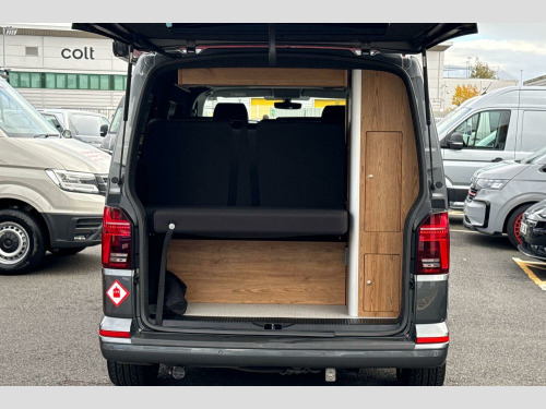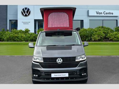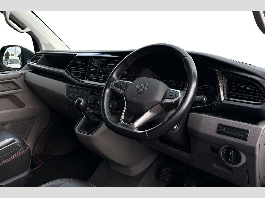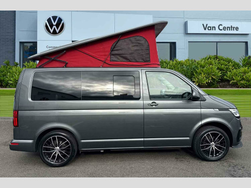 Metallic paint-Indium Grey, Pop top elevating roof, Roof bellows inCrimson Red, LED headlights with LED daytime running lights, LED rear tail lights, Fiamma roll out awning on passenger side, Rear bumper protector, Front lower bumper spoiler/splitter, High gloss blaxck front grille pack, Parking sensors front + rear, Rear view camera system, Tailgate with heated rear window + wash wipe, Full glass pack with privacy glass, Tailgate with heated rear window & wash wipe system, Single sliding side load door, Adaptive cruise control, Lights + Vision pack, Leather trimmed multi-function steering wheel, Electronically controlled air conditioning system, Super Sports front seats, Carbon fiber effect dashboard surround trims, Full leather in soft Nappa Leather-Black/Red piping, Kiravans certified/crash tested rib bed system, Fully fitted kitchette/diner in oak finish, Victron Energy smart charging system, Victron SmartSolar solar panel-roof mounted, Dometic double hob burner, Dometic sink with electric tap, Dometic fridge with freezerbox, CBE electronic consumer panel, Propex Heatsource HS2000 diesel/night heater, Proper Digital thermostat, Gastore underslung LPG tank, Armrests for both front seats, Single front passenger seat, Swivelling front seats-Factory fitted, 4 remote control folding keys, Metallic - Indium Grey, Full soft Nappa Leather trim with red piping, Super Sports front seats, 19" Alloy wheels-Bi Coloured, Steel spare wheel with original equipment tyre, Green tinted heat insulating glass in cab and passenger compartment, Heated front windscreen, Windshield wiper intermittent control with rain sensor for windshield wipers, 16" chassis with 16" brake system, Radiator grille with 2 chrome trims, Transporter nameplate on the rear fender, Automatic headlight control, leaving home and manual coming home feature, Front fog lamps with cornering light, Electronic stability control, ABS, ASR with deactivation button, hill start assist and brake assist system, Start/stop system with regenerative breaking, Adaptive cruise control, Cross wind assist, Electromechanical speed sensitive power steering, height and longitudinally adjustable steering column, Left convex exterior mirror, Power adjustable and heated exterior mirrors, Power folding adjustable door mirrors with separately heated, Right convex exterior mirror, 3 point height adjustable seat belts on outer seats cab with electric pretensioners, Driver and front passenger airbag with front passenger airbag deactivation, Single tone horn, Warning buzzer and light for driver and front passenger seat belt not fastened, Without child safety lock in passenger compartment, Mobile phone interface, 2 USB interfaces type C in dashboard, 4 speakers with 2 tweeters and 2 woofers, Composition colour radio with 6.5" touchscreen, Digital radio reception (DAB+), Volkswagen app connect, Closing rear wing door with unlatching from the inside, Rear wing doors without window apertures, Dimmable illuminated instruments, Driver alert with Multi-function display plus, Multi function display plus with black and white display, eCall emergency system, Forward collision warning front assist with autonomous emergency braking, Diesel particulate filter, Dust/pollen filter, 3 spoke leather wrapped multi function steering wheel, Auto dimming breakaway interior rear view mirror, Comfort headliner in cab, hardboard roof trim in passenger and load compartment, Glove compartment with illumination, High partition, Refrigerant R134a, Rubber floor covering in cab, Standard lower part dashboard in palladium, Storage compartments on cab seats and reading light, LED Interior lighting in load and passenger compartment, Front and rear left without window closed side panel in load compartment, Interior plastic loading edge protection, Without right side window apertures in passenger and load compartment, Comfort pack - Transporter, Exterior pack without fog light- Transporter, Non smoker pack - Transporter, Front seats on