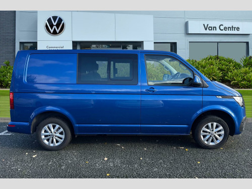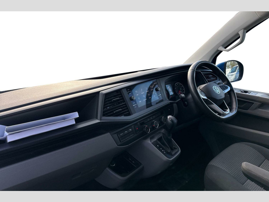 This particular Transporter stands out with its low insurance group, making it an economical choice for businesses. The smooth DSG automatic transmission enhances the driving experience, providing effortless gear changes. With its combination of impressive engine power, substantial cargo capacity, and favourable running costs, this Volkswagen Transporter offers a superior proposition compared to other vans in its class. High beam control, Front and rear parking sensors with park assist, Discover media navigation system including streaming and internet, Carpet floor covering in cab, Green heat insulating glass, Heated front windscreen, Privacy glass from the B-pillar and heat-insulating glass in front, Rear window with heated insulating glass, heated rear window wiper and washer system, Windshield wiper intermittent control with rain sensor for windshield wipers, 16" chassis with 16" brake system, Radiator grille with 2 chrome trims, Transporter nameplate on the rear fender, Without adhesive film, Automatic headlight control, leaving home and manual coming home feature, Front fog lamps with cornering light, Illuminated steps in passenger/load compartment, Electronic stability control, ABS, ASR with deactivation button, hill start assist and brake assist system, Start/stop system with regenerative breaking, Adaptive cruise control, Cross wind assist, Left convex exterior mirror, Power folding adjustable door mirrors with separately heated, Right convex exterior mirror, 3 point height adjustable seat belts on outer seats cab with electric pretensioners, Driver and front passenger airbag with front passenger airbag deactivation, Power operated child safety lock, Warning buzzer and light for driver seat belt not fastened, Mobile phone interface, Without voice control, 2 USB interfaces type C in dashboard, 4 speakers with 2 tweeters and 2 woofers, Composition colour radio with 6.5" touchscreen, Digital radio reception (DAB+), Volkswagen app connect, Tailgate closing with unlatching from the inside, Dimmable illuminated instruments, Driver alert with black and white multi function display plus, Headlight range control, Child seat anchors ISOFIX and top tether in 2nd row of seats, eCall emergency system, Forward collision warning front assist with autonomous emergency braking, Diesel particulate filter, Speed limiter, Additional 12V socket, Dust/pollen filter, 3 spoke leather wrapped multi function steering wheel, Additional sound deadening measures in cab and passenger compartment, Auto dimming breakaway interior rear view mirror, Comfort headliner in cab, hardboard roof trim in passenger and load compartment, Folding grab handles and storage compartments on cab seats, reading light, Glove compartment with illumination, Heavy duty tool kit and jack, Medium height for vehicles with window aperture hardboard side trim panels in passenger/load compartment, Refrigerant R134a, Standard lower part dashboard in palladium, Without partition, LED Interior lighting in load and passenger compartment, Interior plastic loading edge protection, Lashing rings for load restraint system, Comfort pack - Transporter, Exterior pack without fog light- Transporter, Light and vision pack - Transporter, Non smoker pack - Transporter, Front seats on the right in 1st row of seat, Manual height adjustable and lumbar support for driver and single passenger seats, Without seats in 3rd row of seats, Anti theft alarm system with interior monitoring in cab, backup horn and towing protection, Lockable wheel bolts, Wheel trims, 16" Clayton alloy wheels
