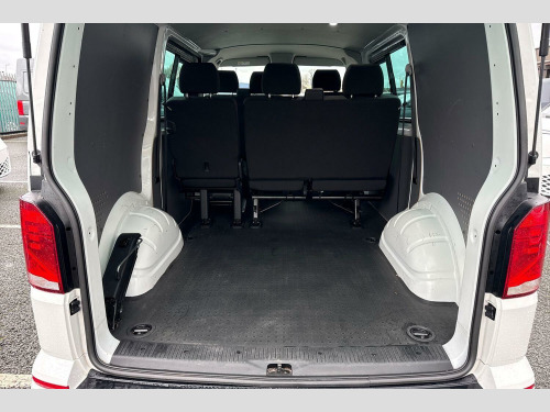 This Transporter also boasts electronically controlled air conditioning for optimal cabin climate. With a generous cargo volume of 5800 litres, it offers ample space for your needs. Its low CO2 emissions and low insurance group highlight its efficiency and affordability, making it a more economical choice compared to similar vehicles. This combination of practicality, comfort, and cost effectiveness makes this Volkswagen Transporter a truly appealing proposition. Rear View Camera, Seats - Dual Passenger in Cab, 2 Seater Bench on Drivers Side and Individual Seat with Easy Entry Feature on the Passenger Side in 2nd Row of Seats, Heated Front Seats, 1 Waste Bin in Door Storage Compartment, 12V Socket - Additional, 12V Socket - Front, 16in Alloy Wheels - Clayton, ABS - Anti-Lock Braking System, ACC - Adaptive Cruise Control, ASR - Anti Slip Regulation, Air Conditioning - Electronically Controlled, Allergen Filter, Anti-Theft Alarm System with Interior Monitoring in Cab - Backup Horn and Tow-Away Protection, App-Connect, Armrest - Drivers and Passenger, Automatic Dimming Rear View Mirror, Automatic Headlight Activation with Daytime Running Lights - Leaving Home - Manual Coming Home Function, Automatic Post-Collision Braking System, BAS - Brake Assist System, Body-Coloured Door Mirror Housings and Handles - Front and Rear Bumpers, Comfort Pack, Composition Colour DAB Plus Radio System with 6.5in Touch-Screen, Crosswind Assist, Dash Panel with Open Stowage Compartments - Drink Holders and Lockable Glovebox, Dashboard - Dimmable Illumination, Door Mirrors - Electrically Folding, Driver Alert System, Drivers and Front Passengers Airbags with Front Passenger Airbag Deactivation Switch, EDL - Electronic Differential Lock, ESP - Electronic Stability Programme, Electric Windows - Front, Electronic Engine Immobiliser, Electronically Controlled Heating System, Entry Handles on A-Pillar on Drivers and Front Passenger Side, Exterior Package, Folding Grab Handles on Roof Frame, Folding Lashing Rings for Load Restraint System - Reinforced, Front Fog Lights with Cornering Lights, Front Windshield Wipers with Intermittent Operation and Rain Sensor, Full Height Side Trim Panels in the Load Compartment, Full Height Steel Bulkhead without Window, Glove Compartment with Illumination, Halogen Twin Headlights, Heat Insulated Glass - Green in Cab and Privacy Glass in Passenger Compartment, Height Adjustment - Manual - Lumbar Support - Manual - For Driver and Single Passenger Seats, Hill Start Assist, Illuminated Steps in Passenger Compartment, Interior Lighting with LED Technology in Load and Passenger Compartment, Isofix and Top Tether Child Seat Anchors for the Outer Seats of the Three Seater Bench Seat, LED Interior Lighting - 2 Reading Lights in the Roof Console, Laminated Windscreen - Heated, Leather Trimmed Multi-Function Steering Wheel with Height and Longitudinal Adjustment, Locking Wheel Bolts, Manual Sliding Door Passenger Side, Multi-Function Display Plus with Black and White Display, Parking Sensors - Front and Rear, Power Steering - Electromechanical, Radiator Grille with Double Chrome Trim Strip, Rear Window with Heat-Insulating Glass - Heated - with Wiper and Washer System, Rear Wing Doors Without Window Aperture, Remote Central Locking with 2 Remote Folding Keys, Rubber Floor Covering in Passenger Compartment with Loading Edge Protection in Rear, Seats - Three Man Bench - Folding and Tipping Row 2, Side Sliding Windows in the Second Row - Left and Right, Single Front Passenger Seat, Single Tone Horn, Steel Spare Wheel with Original Equipment Tyre, Sun Visors with Mirror - Airbag Label on Front Passenger Sun Visor, Tailgate Closing with Unlatching from the Inside, Tailgate with Heated Rear Window, Tool Kit and Jack, Tyre Pressure Loss Indicator, Warning Light and Buzzer for Front Seat Belt if Unfastened