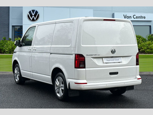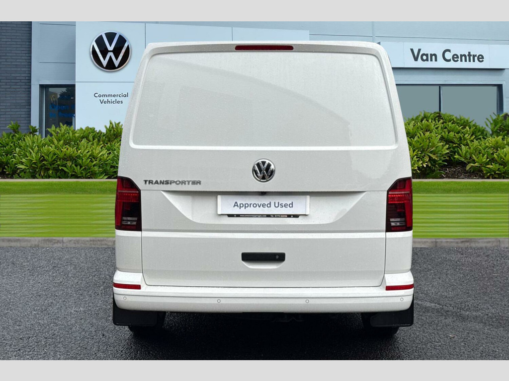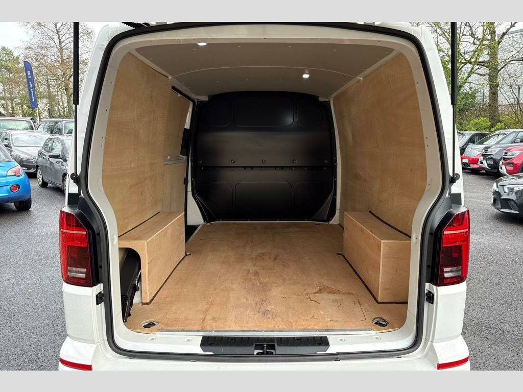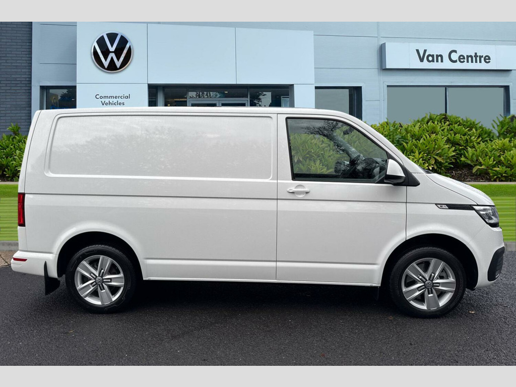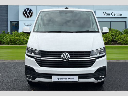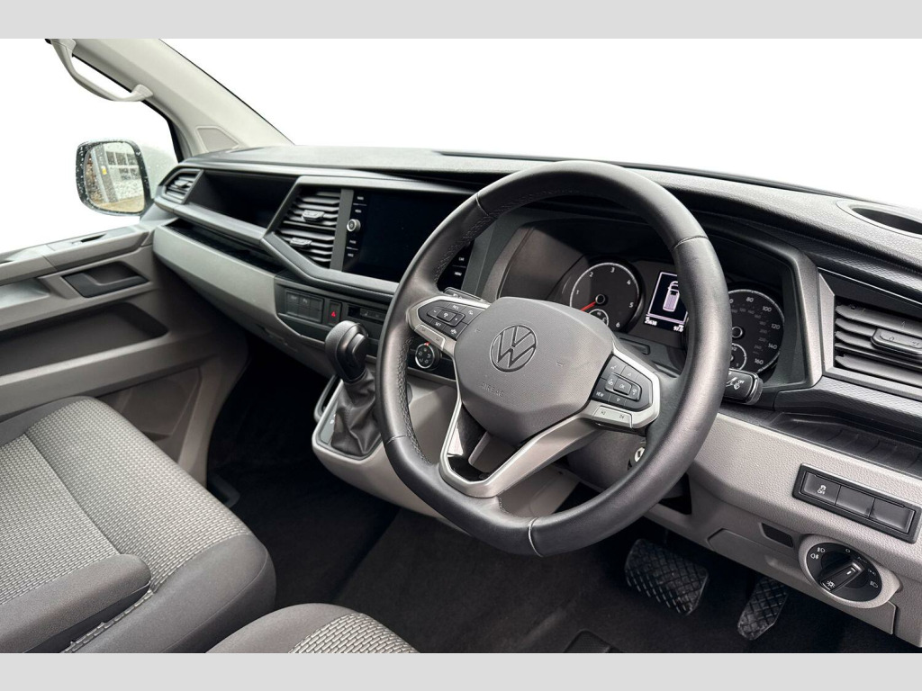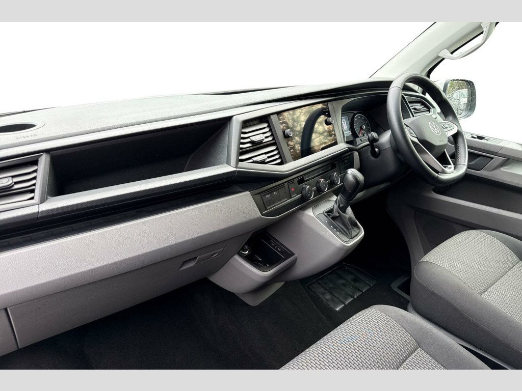 Mud flaps, Solid paint, LED headlights with LED daytime running lights, Rear view camera, Tailgate without window, Front and rear parking sensors, Tailgate/Trunklid unlocking from outside, Discover media navigation system including streaming and internet, Electronically controlled air conditioning system, Carpet floor covering in cab, Solid - Candy white, Heat insulating glass (green) in cab and passenger/load compartment, Heated front windscreen, 16" chassis with 16" brake system, Radiator grille with 2 chrome trims, Transporter nameplate on the rear fender, Front fog lamps with cornering light, Electronic stability control, ABS, ASR with deactivation button, hill start assist and brake assist system, Start/stop system with regenerative breaking, Adaptive cruise control, Cross wind assist, Left convex exterior mirror, Power folding adjustable door mirrors with separately heated, Right convex exterior mirror, 3 point height adjustable seat belts on outer seats cab with electric pretensioners, Driver and front passenger airbag with front passenger airbag deactivation, Warning buzzer and light for driver and front passenger seat belt not fastened, Without child safety lock in passenger compartment, Mobile phone interface, 2 USB interfaces type C in dashboard, 4 speakers with 2 tweeters and 2 woofers, Composition colour radio with 6.5" touchscreen, Digital radio reception (DAB+), Volkswagen app connect, Closing rear wing door with unlatching from the inside, Rear wing doors without window apertures, Dimmable illuminated instruments, Driver alert with Multi-function display plus, Multi function display plus with black and white display, eCall emergency system, Forward collision warning front assist with autonomous emergency braking, Diesel particulate filter, Dust/pollen filter, 3 spoke leather wrapped multi function steering wheel, Comfort headliner in cab, hardboard roof trim in passenger and load compartment, Heavy duty tool kit and jack, High partition, Refrigerant R134a, Standard lower part dashboard in palladium, Storage compartments on cab seats and reading light, LED Interior lighting in load and passenger compartment, Front and rear left without window closed side panel in load compartment, Interior plastic loading edge protection, Without right side window apertures in passenger and load compartment, Comfort pack - Transporter, Exterior pack without fog light- Transporter, Light and vision pack - Transporter, Non smoker pack - Transporter, Front seats on the right in 1st row of seat, Anti theft alarm system with interior monitoring in cab, backup horn and towing protection, Lockable wheel bolts, 17" Devonport alloy wheels