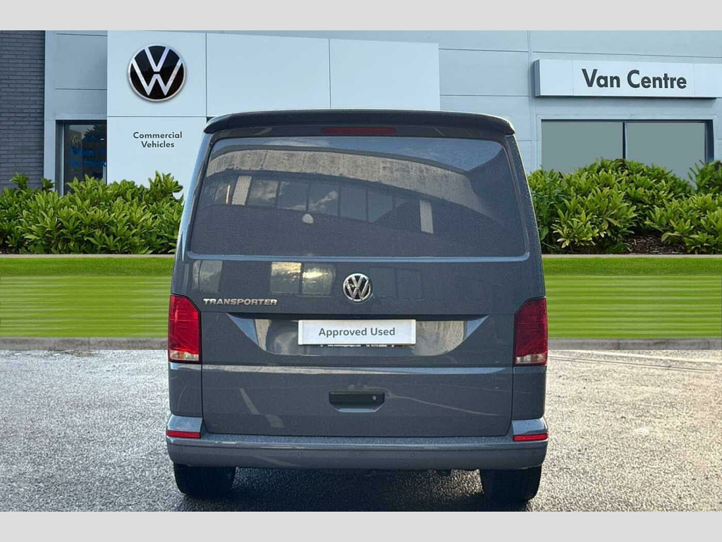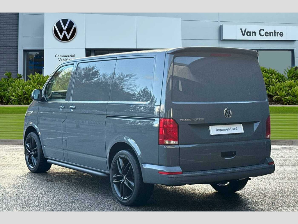 Volkswagen Transporter 2.0 TDI 150 Highline Van Solid paint, Separate Daytime running lights, Rear view camera, Tailgate without window, Front and rear parking sensors, Washer fluid level indicator, Dual passenger seat in cab, Solid - Pure grey, Green tinted heat insulating glass in cab and passenger compartment, Heated front windscreen, Windshield wiper intermittent control with rain sensor for windshield wipers, 16" chassis with 16" brake system, Radiator grille with 2 chrome trims, Transporter nameplate on the rear fender, Automatic headlight control, leaving home and manual coming home feature, Front fog lamps with cornering light, Electronic stability control, ABS, ASR with deactivation button, electronic differnetial lock, hill start assist and brake assist system, Start/stop system with regenerative breaking, Adaptive cruise control, Cross wind assist, Electromechanical speed sensitive power steering, height and longitudinally adjustable steering column, Left convex exterior mirror, Power adjustable and heated, power folding, folding possible via vehicle key exterior mirrors, Right convex exterior mirror, 3 point height adjustable seat belts on outer seats cab with electric pretensioners, Driver and front passenger airbag with front passenger airbag deactivation, Single tone horn, Warning buzzer and light for driver seat belt not fastened, Without child safety lock in passenger compartment, Mobile phone interface, 2 USB interfaces type C in dashboard, 4 speakers with 2 tweeters and 2 woofers, Composition colour radio with 6.5" touchscreen, Digital radio reception (DAB+), Volkswagen app connect, Closing rear wing door with unlatching from the inside, Rear wing doors without window apertures, Sliding door on the left in load/passenger compartment, Without sliding door on the right in load/passenger compartment with closed side panel, Dimmable illuminated instruments, Driver alert with Multi-function display plus, Multi function display plus with black and white display, eCall emergency system, Forward collision warning front assist with autonomous emergency braking, Diesel particulate filter, Dust/pollen filter, 3 spoke leather wrapped multi function steering wheel, Auto dimming breakaway interior rear view mirror, Comfort headliner in cab, hardboard roof trim in passenger and load compartment, Folding grab handles and storage compartments on cab seats, reading light, Glove compartment with illumination, High partition, Medium height side trim panel made of hardboard in load compartment, Refrigerant R134a, Reinforced lashing rings for load restraint system, Standard lower part dashboard in palladium, Sun visor with mirror, airbag label on front passenger sun visor, LED Interior lighting in load and passenger compartment, Front and rear left without window closed side panel in load compartment, Interior plastic loading edge protection, Without right side window apertures in passenger and load compartment, Comfort pack - Transporter, Exterior pack without fog light- Transporter, Non smoker pack - Transporter, Front seats on the right in 1st row of seat, Anti theft alarm system with interior monitoring in cab, backup horn and towing protection, Central locking system with radio remote control, inside system controls and safelock, Lockable wheel bolts, Without trailer hitch, 16" Clayton alloy wheels