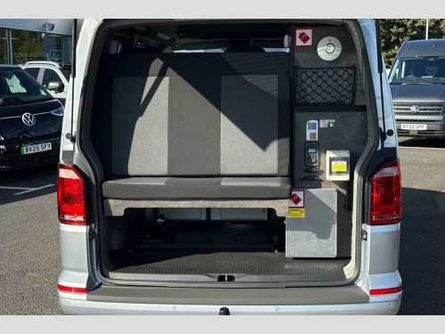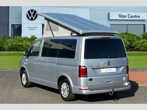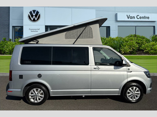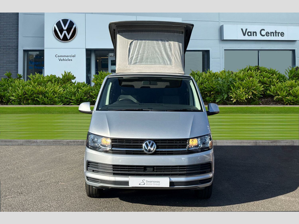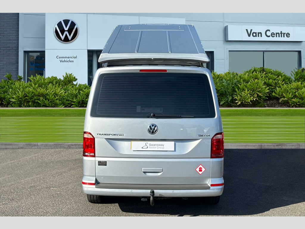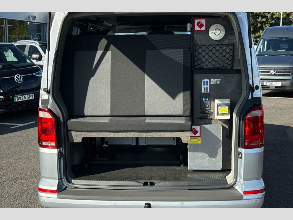 Metallic paint-Reflex Silver, Hydraullic pop top roof in Reflex Silver, Rear parking sensors, Sliding side windows in 2nd row, Cruise control, Composition colour radio with 5" touchscreen, DAB digital Radio, Sliding side door - Passenger side, Taigate with heated rear window + wash wipe, Full 2 berth Danbury Surf conversion, 2 Berth layout, Dometic Coolmatic 45Ltr fridge, Sink with electric tap, Webasto Airtop 2000 diesel night heater, On board water tank fresh/greay water, Tasman 4500 gas stove-2 ring burner, Leisure battery with electric hookup, 'P' shaped kitchen layout in ash grey, Stowable table, Climatic air conditioning (Semi automatic), Simora upholstery, Metallic - Reflex Silver, Westfalia Towbar - removable ball with 13 pin socket, Simora cloth - Titanium black, 16" Clayton alloy wheels, Alloy wheel security locking bolts, 2 speed windscreen wipers/intermittent wash, Electric front windows, Green tinted heat insulating glass in cab and passenger compartment, Rear heated window with window wiper and washer system, ABS with electronic brake distribution, Electronic stabilisation programme (ESP), Parking brake - hill hold control, Traction control, Collision prevention assist, PAS, 3 point inertia reel belt on all seats, Brake pad wear indicator, Driver and passenger airbag with seatbelt pretensioners, Front passenger airbag deactivation, Bluetooth connectivity, 4 speakers, Aux input socket, DAB radio/CD player, iPod/USB connection, Tailgate glazed heated with wash wipe, Tailgate with window, Driver alert with Multi-function display plus, Headlight range control, Digital clock, Lights on warning buzzer, Rev counter, SD card slot, Service indicator, Tyre pressure monitor, 70 litre fuel tank, Diesel particulate filter, 12V accessory socket, Moonrock grey/titanium black interior trim, Height adjustable head restraints, Passenger seat with reach and rake adjustment, Dust/pollen filter, Height and rake adjustable steering column, Interior entry steps, Jack and tool kit, Locking glovebox, Storage net on lower dash passenger side, 2 rear interior lights, switchable by door, Cab interior light, Electronic differential lock, 6 lashing points for securing loads, Half height hardboard side lining, Interior roof trim - hardboard, Non smoker pack, 2 remote control folding keys, Electronic immobiliser, Full size steel spare wheel