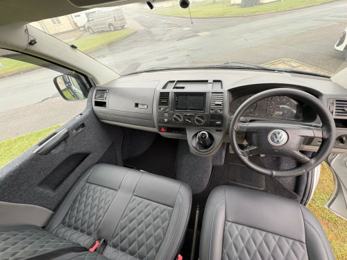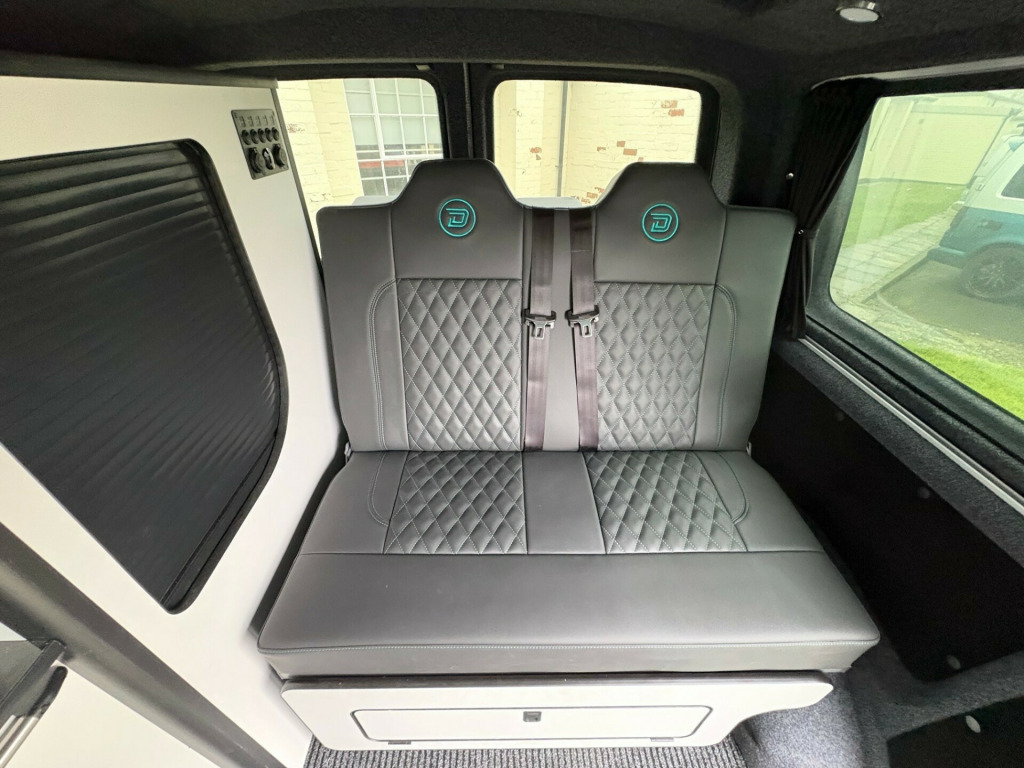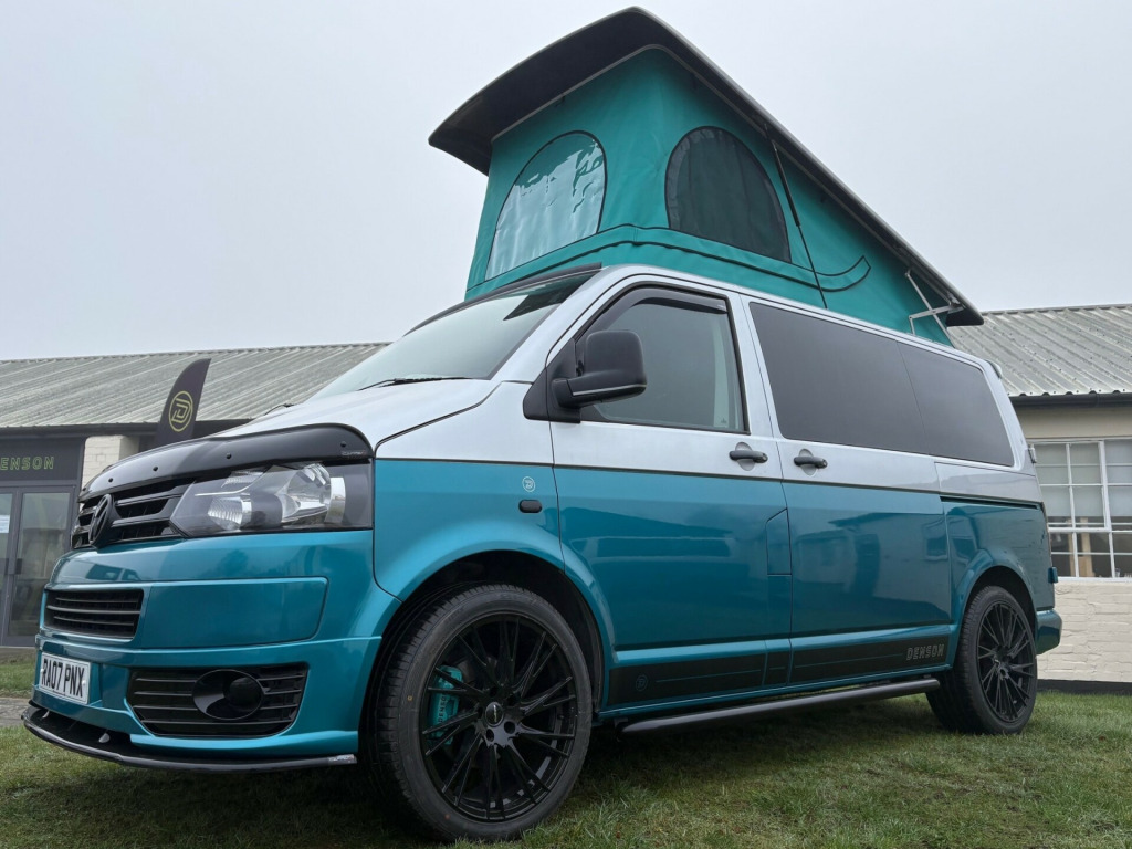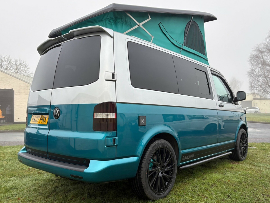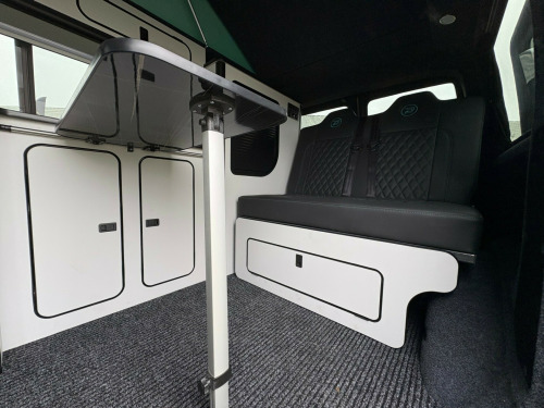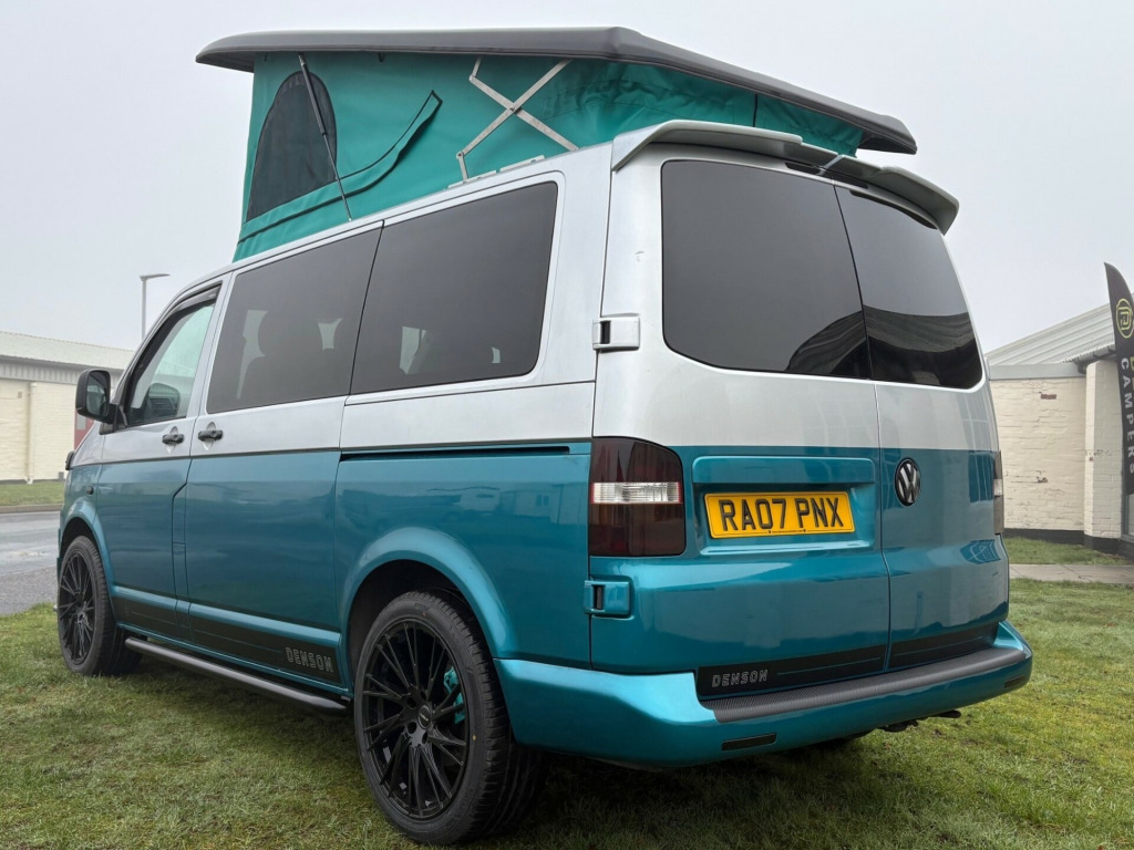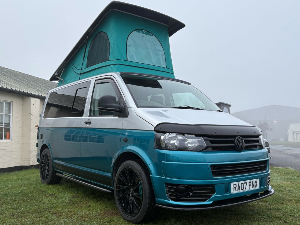 - 2007 VW Transporter 1.9 TDI panel van.- 100,950 miles - T5.1 facelift - Two tone, Silver/ Teal - Non Air con - IN BUILD - Matt light grey kitchen with black marble work top & table- Pioneer head unit/ Apple carplayb - 8 months MOT - 3 months roadside assistance v/240v fridge, 12v/240v power sockets & usb, bonnet stone protection, carbon door handles, colour coded bumpers, denson graphics & cab mat, double gas hob & smev sink, premium kitchen & soft close doors, privacy glass all round, quilted leather cab & rear seating, rock & roll bed with seat belts, scenic pop top roof, side bars, sportline body styling