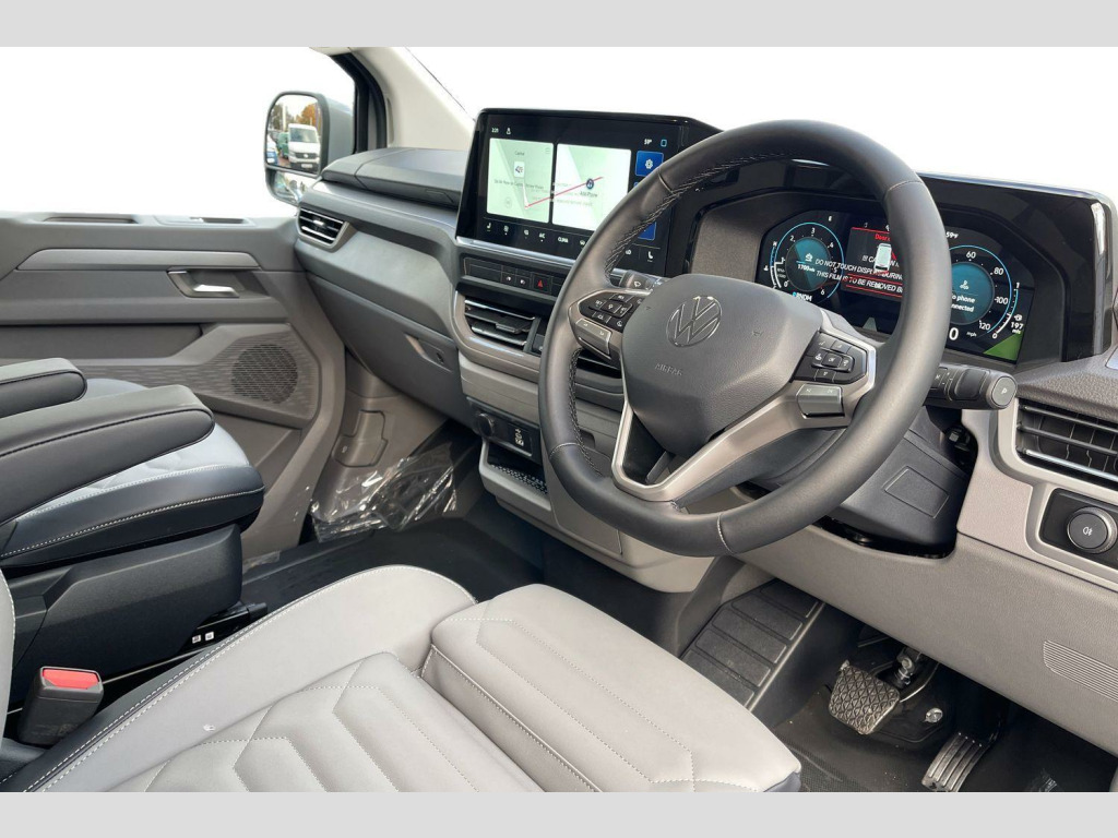 For more information or to request a full HD walk around video, please call a member of the team on 0121 260 3000. Stone Grey-Solid paint, Tailgate-Solid, without window, Twin power sliding side load doors, LED main headlight, LED daytime running light, cornering light and poor weather light, LED rear lights with exclusive light signature, Exterior mirrors, power-adjustable, heated and power-folding via vehicle key, Interior trim 'Style' upgrade, Single passenger seat, 8-way power-adjustable driver seat, 6-way power-adjustable front passenger seat, Cab seat in leatherette "Style", with power-adjustable AGR single seats, heated, Single zone air conditioning system with automatic control in cab, Keyless Access, with SAFELOCK, Heated leatherette-wrapped multi-function steering wheel, Metal partition, high, fabric covering on upper part of partition on cab side, Rear tailgate, Twin, power sliding side load doors, 2 seat cab style package heated - Transporter, Style interior trim pack - Transporter, Parking package Premium, Solid - Stone Grey, 19" Indianapolis Alloy wheels, Steel spare wheel with jack and without tyre pressure sensor, Alloy wheel security locking bolts, Remainder of VW '5 Plus Promise, including:, 5 Years Warranty, 5 Years Road Side Assist, 5 Services, 3 MOT's, Heat reflecting side window glass, Body colour bumpers, Body coloured door handles, Body coloured radiator grille, Mud flaps front and rear, Rear Transporter nameplate in black grained decorative trim, Vehicle opening configuration 1x 1st row of seats, 2x all doors, Electromechanical brake booster, Electronic stability control, ABS, ASR with deactivation button, hill start assist and brake assist system, Adaptive cruise control, Electromechanical speed sensitive power steering, height and longitudinally adjustable steering column, Lane and blind spot assist with exit warning system, Traffic jam assist, Wrong way driver warning, Body coloured door mirrors, Electrically heated, adjustable and folding door mirrors, Driver and front passenger airbag with front passenger airbag deactivation, Dual tone horn, Front and curtain airbags for driver and front passenger, Seat belt pretensioner for driver seat, Apple CarPlay and Android Auto, Wireless mobile phone charging, 12" digital drivers display, 13" touchscreen infotainment display with wireless app connect and DAB radio, 5G Modem, Dynamic road sign display, eCall emergency system, Preparation of VW connect and connect plus, Alternator - 230A, 2x 15-W USB data/charging ports in dashboard and 1x USB-C, 1x USB-A center bottom, 5 additional USB-C charging ports, Black plastic scuff plate for sliding door in cargo without illumination, Gear selector lever on steering wheel, Glasses compartment in driver side roof, Grab handle on A-pillar passenger side, Illuminated lockable glovebox, Narrow centre console with cup holder and compartment for mobile phone, Overhead storage compartment, Rubber floor covering in cab, Striped fabric upholstery, Cabin interior lighting, 12V outlet in centre console and 12V outlet on rear right D-pillar, 2x LED lights in load compartment, 3x additional super bright LED lights in load compartment, Lashing rings for reinforced floor covering, Without passenger seats in load compartment, 4 way height and tilt adjustable head restraints, Anti theft alarm system with interior monitoring in cab, backup horn and towing protection, Electronic immobiliser, Lockable wheel bolts, Preparation for alcohol ignition interlock, 5+ Promise