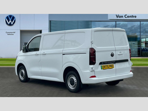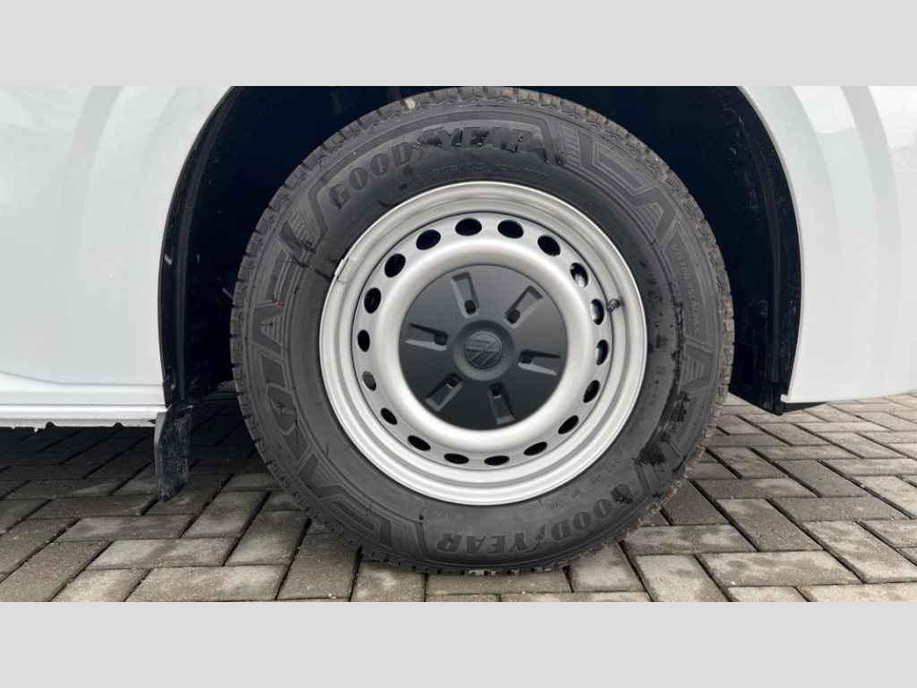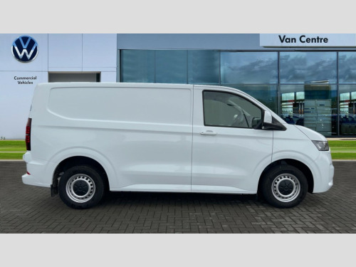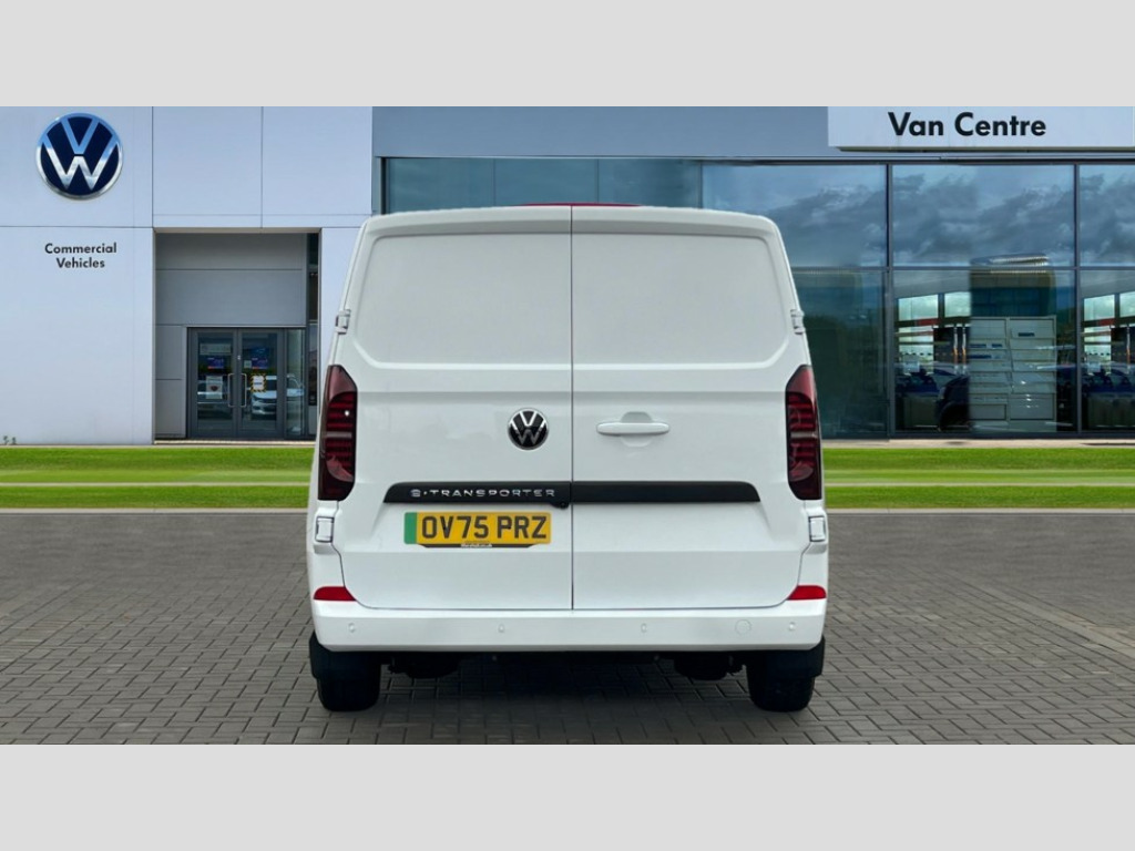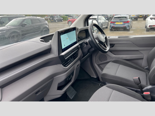 Volkswagen Transporter 100kW 65kWh Commerce Plus Van Auto 12" digital drivers display, 13" touchscreen infotainment display with wireless app connect and DAB radio, 5G Modem, Apple CarPlay and Android Auto, Cruise control, Dynamic road sign display, eCall emergency system, Electromechanical speed sensitive power steering, height and longitudinally adjustable steering column, Lane assist, Preparation of VW connect and connect plus, Wrong way driver warning, 4 speakers - 2x dashboard, 2x cab doors, Body coloured door handles, Heat reflecting side window glass, Mud flaps front and rear, Rear Transporter nameplate in black grained decorative trim, Vehicle opening configuration 1x 1st row of seats, 2x all doors, 2x 15-W USB data/charging ports in dashboard and 1x USB-C, 1x USB-A center bottom, 2x LED lights in load compartment, 4 way height and tilt adjustable head restraints, Black plastic scuff plate for sliding door in cargo without illumination, Cabin interior lighting, Electric auxiliary heater, Heat pump, Lashing rings for reinforced floor covering, Narrow centre console with cup holder and compartment for mobile phone, Overhead storage compartment, Roof grab handle on front passenger side, Rubber floor covering in cab, Striped fabric upholstery, Without passenger seats in load compartment, Driver and front passenger airbag with front passenger airbag deactivation, Front and curtain airbags for driver and front passenger, Seat belt pretensioner for driver seat, Single tone horn, Anti theft alarm system with interior monitoring in cab, backup horn and towing protection, Electronic immobiliser, Preparation for alcohol ignition interlock, 5+ Promise, Electromechanical brake booster, Electronic stability control, ABS, ASR with deactivation button, hill start assist and brake assist system, Mode 3 charging cable, type 2, 3-phase, 32A, cable length 5m, Goodyear all season tyres, Tyre mobility kit in lieu of spare wheel with 12 volt compressor and tyre sealant