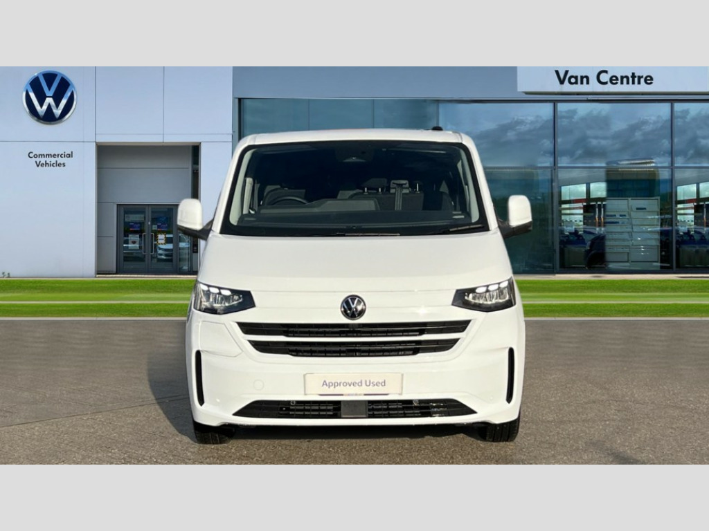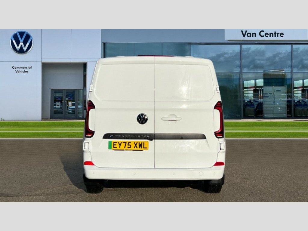 Volkswagen Transporter 100kW 65kWh Commerce Pro Van Auto 12" digital drivers display, 13" touchscreen infotainment display with wireless app connect and DAB radio, 5G Modem, Adaptive cruise control, Apple CarPlay and Android Auto, Dynamic road sign display, eCall emergency system, Electromechanical speed sensitive power steering, height and longitudinally adjustable steering column, Lane and blind spot assist with exit warning system, Preparation of VW connect and connect plus, Traffic jam assist, Wireless mobile phone charging, Wrong way driver warning, Body colour bumpers, Body coloured door handles, Body coloured door mirrors, Body coloured radiator grille, Electrically heated, adjustable and folding door mirrors, Heat reflecting side window glass, LED rear lights with exclusive light signature, Mud flaps front and rear, Rear Transporter nameplate in black grained decorative trim, Vehicle opening configuration 1x 1st row of seats, 2x all doors, 12V outlet in centre console and 12V outlet on rear right D-pillar, 2x 15-W USB data/charging ports in dashboard and 1x USB-C, 1x USB-A center bottom, 2x LED lights in load compartment, 3 spoke heated leather wrapped multi function steering wheel, 3x additional super bright LED lights in load compartment, 4 way height and tilt adjustable head restraints, 5 additional USB-C charging ports, Black plastic scuff plate for sliding door in cargo without illumination, Cabin interior lighting, Electric auxiliary heater, Glasses compartment in driver side roof, Grab handle on A-pillar passenger side, Heat pump, Illuminated lockable glovebox, Lashing rings for reinforced floor covering, Narrow centre console with cup holder and compartment for mobile phone, Overhead storage compartment, Rubber floor covering in cab, Striped fabric upholstery, Without passenger seats in load compartment, Driver and front passenger airbag with front passenger airbag deactivation, Front and curtain airbags for driver and front passenger, Seat belt pretensioner for driver seat, Single tone horn, Anti theft alarm system with interior monitoring in cab, backup horn and towing protection, Electronic immobiliser, Lockable wheel bolts, Preparation for alcohol ignition interlock, 5+ Promise, Electromechanical brake booster, Electronic stability control, ABS, ASR with deactivation button, hill start assist and brake assist system, Mode 3 charging cable, type 2, 3-phase, 32A, cable length 5m, Without alternator, Goodyear all season tyres, Tyre mobility kit in lieu of spare wheel with 12 volt compressor and tyre sealant