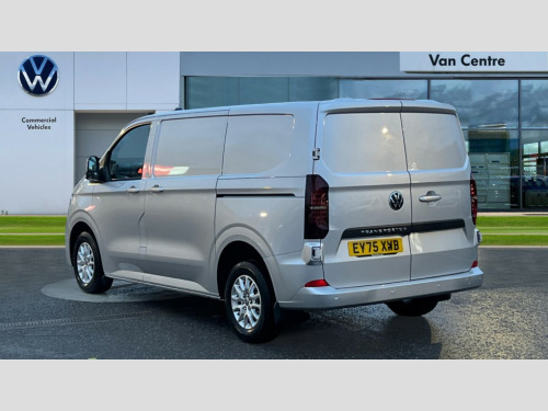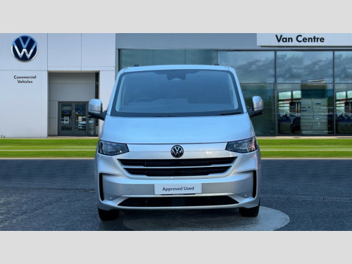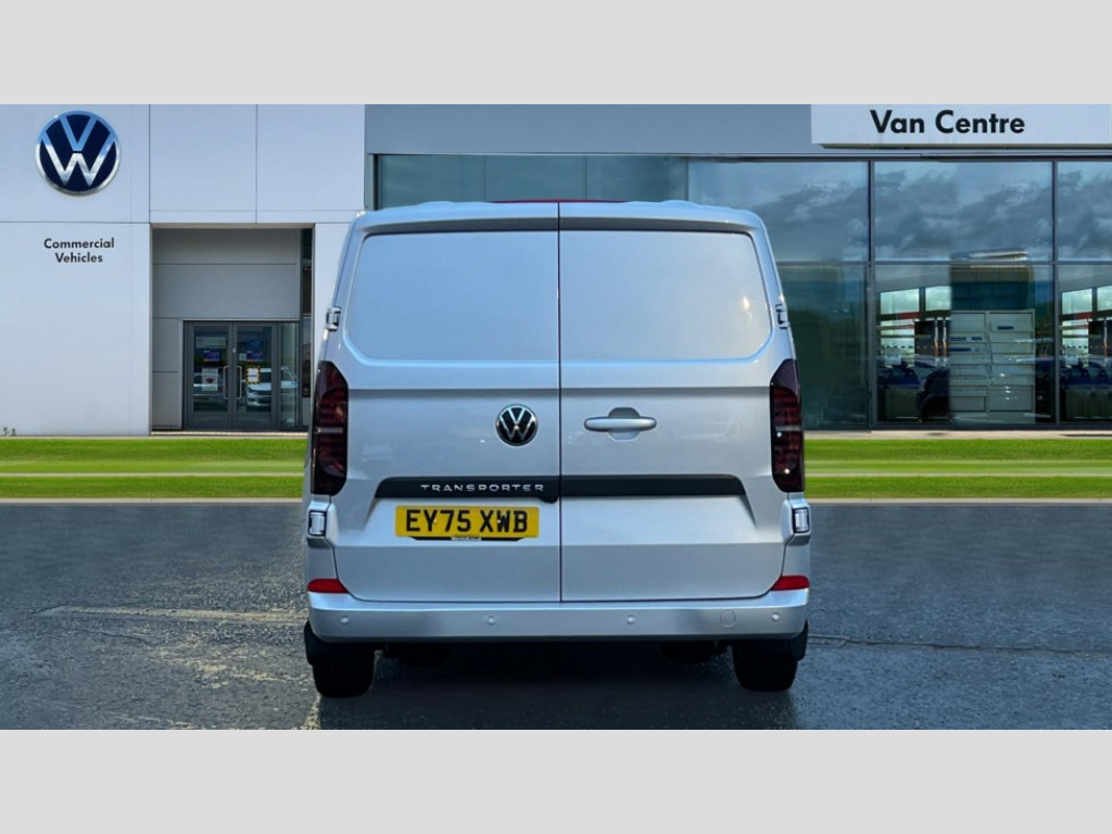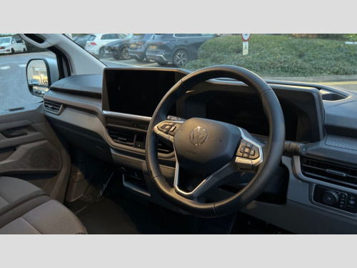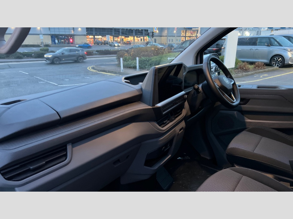 Volkswagen Transporter 2.0 TDI 150 Commerce Pro Van 12" digital drivers display, 13" touchscreen infotainment display with wireless app connect and DAB radio, 5G Modem, Adaptive cruise control, Apple CarPlay and Android Auto, Dynamic road sign display, eCall emergency system, Electromechanical speed sensitive power steering, height and longitudinally adjustable steering column, Lane and blind spot assist with exit warning system, Preparation of VW connect and connect plus, Wireless mobile phone charging, Wrong way driver warning, Body colour bumpers, Body coloured door handles, Body coloured door mirrors, Body coloured radiator grille, Electrically heated, adjustable and folding door mirrors, Heat reflecting side window glass, Mud flaps front and rear, Rear Transporter nameplate in black grained decorative trim, Vehicle opening configuration 1x 1st row of seats, 2x all doors, 12V outlet in centre console and 12V outlet on rear right D-pillar, 2x 15-W USB data/charging ports in dashboard and 1x USB-C, 1x USB-A center bottom, 2x LED lights in load compartment, 3x additional super bright LED lights in load compartment, 4 way height and tilt adjustable head restraints, 5 additional USB-C charging ports, Black plastic scuff plate for sliding door in cargo without illumination, Cabin interior lighting, Glasses compartment in driver side roof, Grab handle on A-pillar passenger side, Illuminated lockable glovebox, Lashing rings for reinforced floor covering, Leatherette gear lever, Narrow centre console with cup holder and compartment for mobile phone, Overhead storage compartment, Rubber floor covering in cab, Striped fabric upholstery, Without passenger seats in load compartment, Driver and front passenger airbag with front passenger airbag deactivation, Dual tone horn, Front and curtain airbags for driver and front passenger, Seat belt pretensioner for driver seat, Anti theft alarm system with interior monitoring in cab, backup horn and towing protection, Electronic immobiliser, Lockable wheel bolts, Preparation for alcohol ignition interlock, 5+ Promise, Alternator - 230A, Electromechanical brake booster, Electronic stability control, ABS, ASR with deactivation button, hill start assist and brake assist system