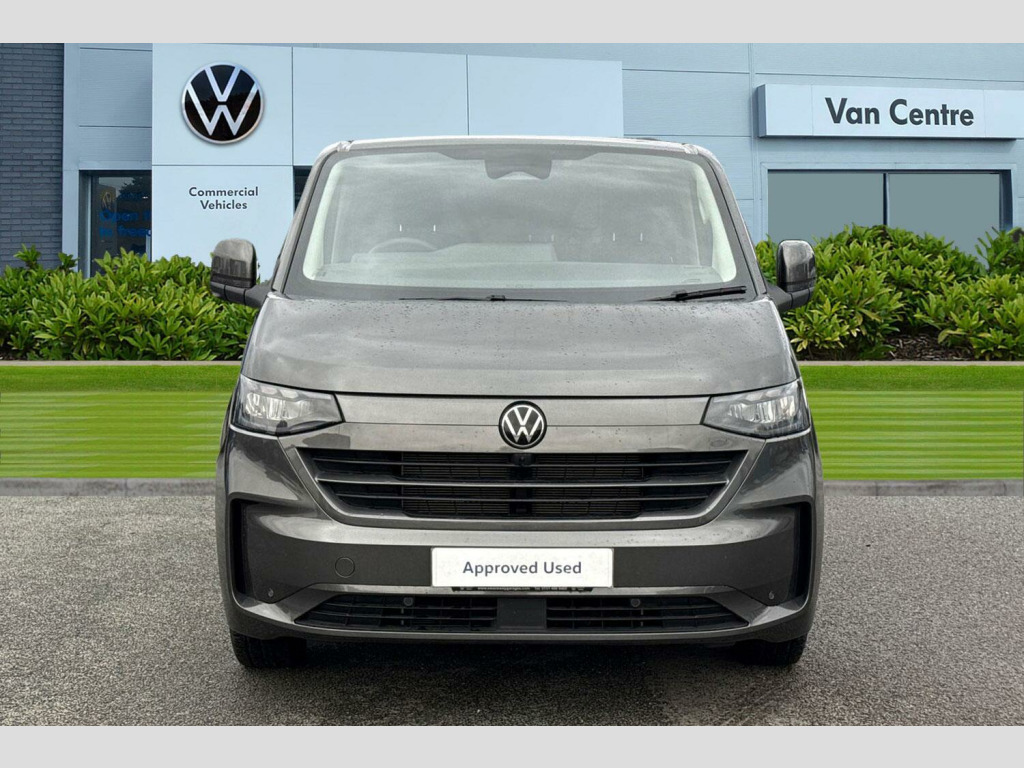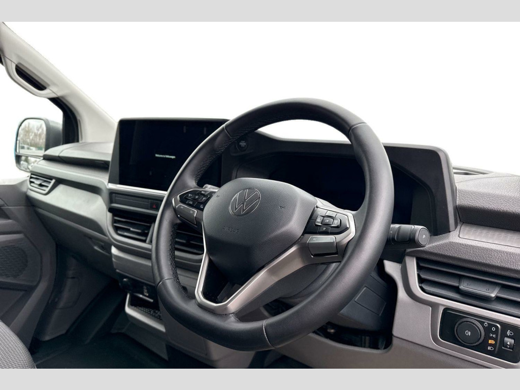 Graphite Dust Metallic Paint, Towbar preparation, Parking package Premium Plus, Parking sensors front and rear, with manouver brakin, With front and rear view camera system and two side cameras, 16" "Montreal" alloy wheels in Silver, Steel spare wheel, Single-zone air conditioning system with automatic control in cab, Adaptive Cruise control system with predictive speed limiter, Lane Assist with Blind Spot Assist and exit warning system, Keyless Start with SAFELOCK, Heated windscreen, Wireless mobile phone charging, Heated seats, individually controllable, Green tinted heat insulating glass in cab and passenger compartment, Heated front windscreen, Windshield wiper intermittent control with rain sensor for windshield wipers, 16" chassis with 16" brake system, Radiator grille with 2 chrome trims, Transporter nameplate on the rear fender, Automatic headlight control, leaving home and manual coming home feature, Front fog lamps with cornering light, Electronic stability control, ABS, ASR with deactivation button, hill start assist and brake assist system, Start/stop system with regenerative breaking, Adaptive cruise control, Cross wind assist, Electromechanical speed sensitive power steering, height and longitudinally adjustable steering column, Left convex exterior mirror, Power adjustable and heated exterior mirrors, Power folding adjustable door mirrors with separately heated, Right convex exterior mirror, 3 point height adjustable seat belts on outer seats cab with electric pretensioners, Driver and front passenger airbag with front passenger airbag deactivation, Single tone horn, Warning buzzer and light for driver and front passenger seat belt not fastened, Without child safety lock in passenger compartment, Mobile phone interface, 2 USB interfaces type C in dashboard, 4 speakers with 2 tweeters and 2 woofers, Composition colour radio with 6.5" touchscreen, Digital radio reception (DAB+), Volkswagen app connect, Closing rear wing door with unlatching from the inside, Rear wing doors without window apertures, Dimmable illuminated instruments, Driver alert with Multi-function display plus, Multi function display plus with black and white display, eCall emergency system, Forward collision warning front assist with autonomous emergency braking, Diesel particulate filter, Dust/pollen filter, 3 spoke leather wrapped multi function steering wheel, Auto dimming breakaway interior rear view mirror, Comfort headliner in cab, hardboard roof trim in passenger and load compartment, Glove compartment with illumination, High partition, Refrigerant R134a, Rubber floor covering in cab, Standard lower part dashboard in palladium, Storage compartments on cab seats and reading light, LED Interior lighting in load and passenger compartment, Front and rear left without window closed side panel in load compartment, Interior plastic loading edge protection, Without right side window apertures in passenger and load compartment, Comfort pack - Transporter, Exterior pack without fog light- Transporter, Non smoker pack - Transporter, Front seats on the right in 1st row of seat, Manual adjustable lumbar support for right single seat in 1st row seats, Anti theft alarm system with interior monitoring in cab, backup horn and towing protection, Lockable wheel bolts, 16" "Montreal" alloy wheels in Silver