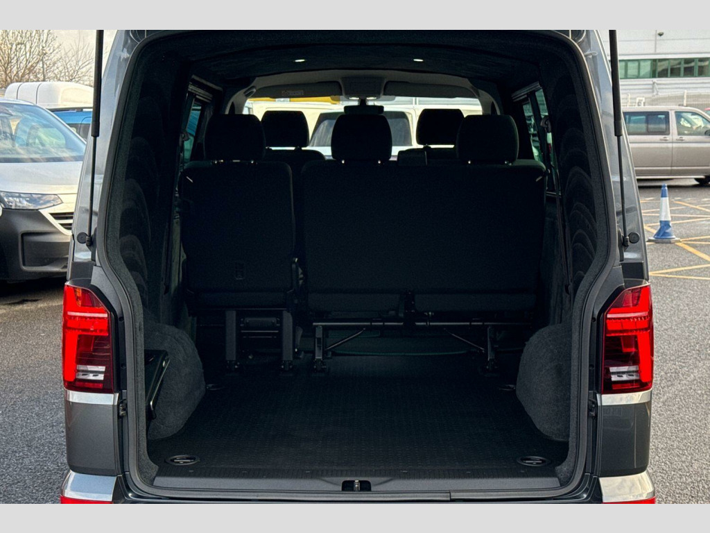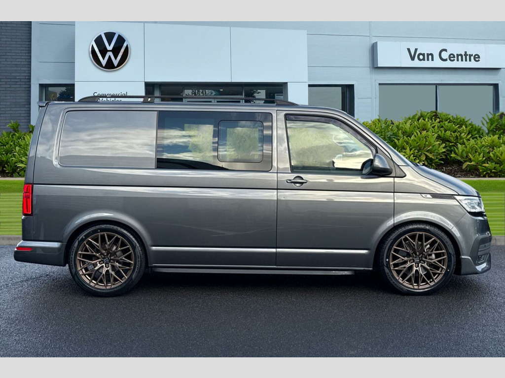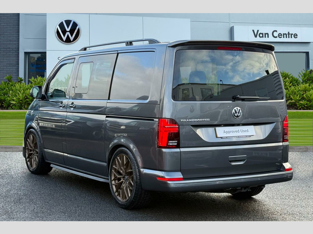 This particular Transporter stands out with its impressive 5800 litre cargo volume, making it ideal for a variety of professional needs. Its low insurance group rating further adds to its appeal, suggesting lower running costs compared to similar vehicles. Combined with the smooth DSG automatic transmission, this Kombi van offers a refined and efficient driving experience, perfectly suited for both work and leisure. Metallic paint-Indium Grey, LED headlights with LED daytime running lights, LED rear combination lamps, Leighton Vans front lower bumper spoiler/splitter, Angled 'Trapezoid' side styling bars in black, Rear roof spoiler, Roof bars, Parking sensors front + rear, Rear view camera, Power folding + heated external mirrors, Lowering kit, Front Assist with City Emergency Braking, Tailgate with heated rear window and wash wipe, Single sliding side load door-Passenger side, Adaptive cruise control, Leather trimmed multi-function steering wheel, Electronically controlled air conditioning system, Bricks woven fabric upholstery, Carpet floor covering in cab, Heated front seats, Swivelling front seats-Factory fitted, 2 bench seats on driver side and individual seat with easy entry on the passenger side in 2nd row seats, Heated driver and front passenger seats, Metallic - Indium Grey, Bricks woven fabric - Titanium/Palladium black, 20" Alloy wheels in bronze, Steel spare wheel with original equipment tyre, Green heat insulating glass, Heated front windscreen, Privacy glass from the B-pillar and heat-insulating glass in front, Rear window with heated insulating glass, heated rear window wiper and washer system, Windshield wiper intermittent control with rain sensor for windshield wipers, 16" chassis with 16" brake system, Radiator grille with 2 chrome trims, Transporter nameplate on the rear fender, Without adhesive film, Automatic headlight control, leaving home and manual coming home feature, Front fog lamps with cornering light, Illuminated steps in passenger/load compartment, Electronic stability control, ABS, ASR with deactivation button, hill start assist and brake assist system, Start/stop system with regenerative breaking, Adaptive cruise control, Cross wind assist, Left convex exterior mirror, Power folding adjustable door mirrors with separately heated, Right convex exterior mirror, 3 point height adjustable seat belts on outer seats cab with electric pretensioners, Driver and front passenger airbag with front passenger airbag deactivation, Power operated child safety lock, Warning buzzer and light for driver seat belt not fastened, Mobile phone interface, Without voice control, 2 USB interfaces type C in dashboard, 4 speakers with 2 tweeters and 2 woofers, Composition colour radio with 6.5" touchscreen, Digital radio reception (DAB+), Volkswagen app connect, Tailgate closing with unlatching from the inside, Dimmable illuminated instruments, Driver alert with black and white multi function display plus, Headlight range control, Child seat anchors ISOFIX and top tether in 2nd row of seats, eCall emergency system, Forward collision warning front assist with autonomous emergency braking, Diesel particulate filter, Speed limiter, Dust/pollen filter, 3 spoke leather wrapped multi function steering wheel, Additional sound deadening measures in cab and passenger compartment, Auto dimming breakaway interior rear view mirror, Comfort headliner in cab, hardboard roof trim in passenger and load compartment, Folding grab handles and storage compartments on cab seats, reading light, Glove compartment with illumination, Heavy duty tool kit and jack, Medium height for vehicles with window aperture hardboard side trim panels in passenger/load compartment, Refrigerant R134a, Standard lower part dashboard in palladium, Without partition, LED Interior lighting in load and passenger compartment, Interior plastic loading edge protection, Lashing rings for load restraint system, Comfort pack - Transporter, Exterior pack without fog light- Transporter, Non smoker pack - Transporter, Front seats on the right in 1st row of seat, Without seats in 3rd row of seats, Anti theft alarm system with interior monitoring in cab, backup horn and towing protection, Lockable wheel bolts, Wheel trims, 17" Devonport alloy wheels