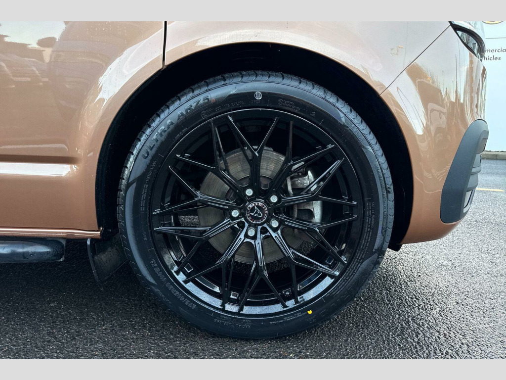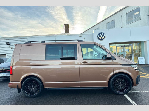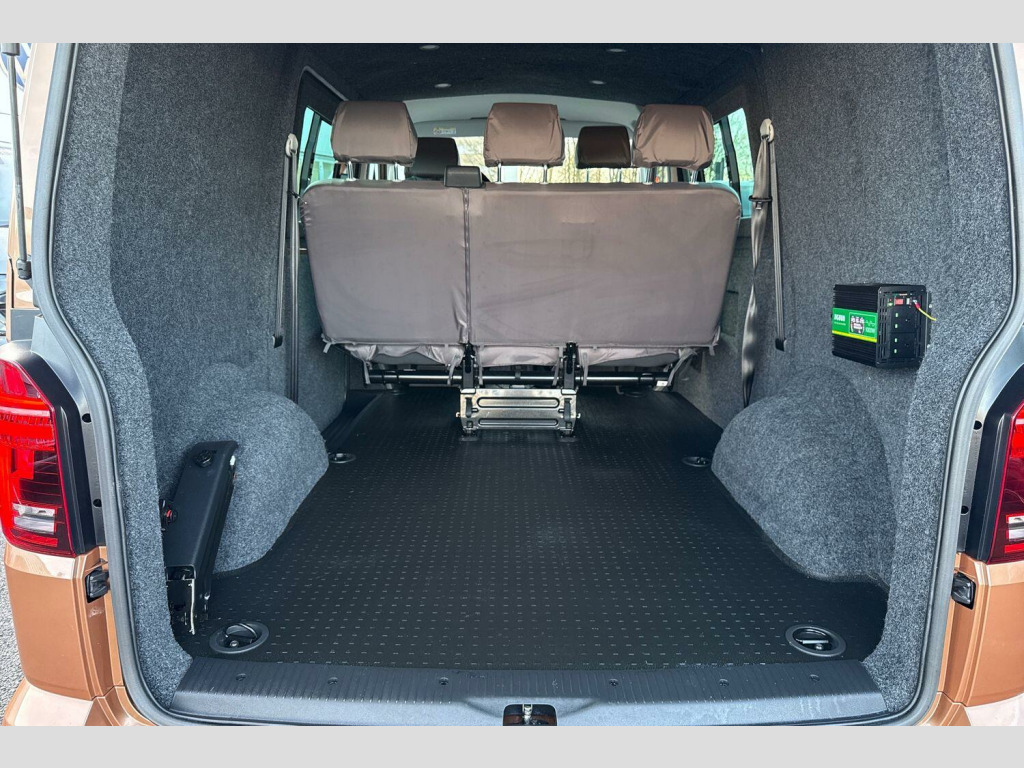 Volkswagen Transporter 2.0 TDI 150 Highline Kombi Van DSG Metallic paint-Copper Bronze, LED headlights with LED daytime running lights, LED rear tail light clusters, Rear roof spoiler, Side styling bars in matte black, Lowering kit, Heated, power folding exterior mirrors, Front fog lamps with cornering function, Parking sensors front + rear, Mud flaps front + rear, Tailgate with heated rear window and wash wipe, Single sliding side load door-Passenger side, Adaptive cruise control, Leather trimmed, multi-function steering wheel, Lights + Vision Pack, Dynamic headlight range control (self-adjusting while driving), Heated windscreen, Heated washer nozzles, Electronically controlled air conditioning system, Bricks woven fabric upholstery, Swivelling front seats-Factory fitted, Heated front seats, Fully insulated and carpet lined, Single front passenger seat, Thatcham category 1 cab alrm system, 2 remote control folding keys, Metallic - Copper Bronze, Removable/lockable tow bar including trailer stabilisation, Bricks woven fabric - Titanium/Palladium black, 20" Wolfsburg Road Edition alloy wheel in high gloss black, Steel spare wheel with original equipment tyre, Green heat insulating glass, Heated front windscreen, Privacy glass in passenger compartment, Rear window with heated insulating glass, heated rear window wiper and washer system, Windshield wiper intermittent control with rain sensor for windshield wipers, 16" chassis with 16" brake system, Radiator grille with 2 chrome trims, Transporter nameplate on the rear fender, Without adhesive film, Automatic headlight control, leaving home and manual coming home feature, Front fog lamps with cornering light, Illuminated steps in passenger/load compartment, Electronic stability control, ABS, ASR with deactivation button, hill start assist and brake assist system, Start/stop system with regenerative breaking, Adaptive cruise control, Cross wind assist, Electromechanical speed sensitive power steering, height and longitudinally adjustable steering column, Left convex exterior mirror, Power adjustable and heated exterior mirrors, Power folding door mirrors, Right convex exterior mirror, 3 point height adjustable seat belts on outer seats cab with electric pretensioners, Driver and front passenger airbag with front passenger airbag deactivation, Power operated child safety lock, Single tone horn, Warning buzzer and light for driver seat belt not fastened, Mobile phone interface, Without voice control, 2 USB interfaces type C in dashboard, 4 speakers with 2 tweeters and 2 woofers, Composition colour radio with 6.5" touchscreen, Digital radio reception (DAB+), Volkswagen app connect, Tailgate closing with unlatching from the inside, Tailgate with window aperture, Dimmable illuminated instruments, Driver alert with black and white multi function display plus, Headlight range control, Child seat anchors ISOFIX and top tether in 2nd row of seats, eCall emergency system, Forward collision warning front assist with autonomous emergency braking, 70 L volume fuel tank, Diesel particulate filter, Speed limiter, Additional 12V socket, Dust/pollen filter, 3 spoke leather wrapped multi function steering wheel, Additional sound deadening measures in cab and passenger compartment, Auto dimming breakaway interior rear view mirror, Comfort headliner in cab, hardboard roof trim in passenger and load compartment, Folding grab handles and storage compartments on cab seats, reading light, Glove compartment with illumination, Heavy duty tool kit and jack, Medium height for vehicles with window aperture hardboard side trim panels in passenger/load compartment, Refrigerant R134a, Rubber floor covering in cab, Rubber floor covering in passenger/load compartment with loading edge protection in rear, Standard lower part dashboard in palladium, Without partition, LED Interior lighting in load and passenger compartment, Interior plastic loading edge protection, Lashing rings for load restraint system, Exterior pack without fog light- Transporter, Non smoker pack - Tran