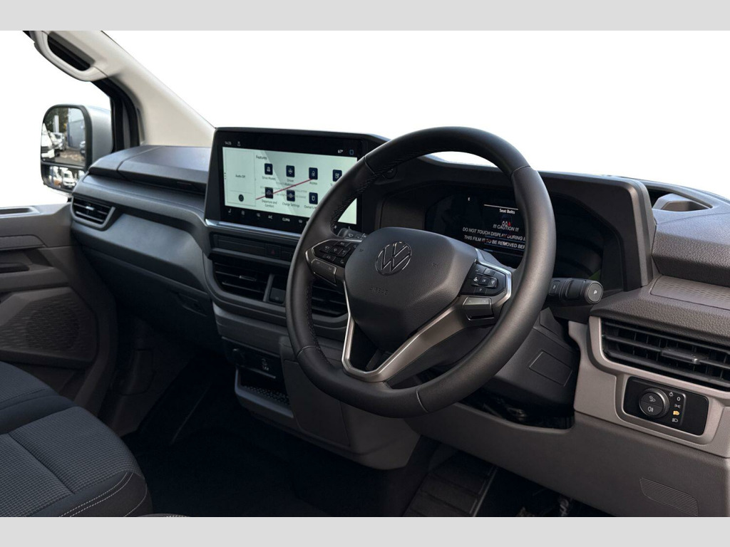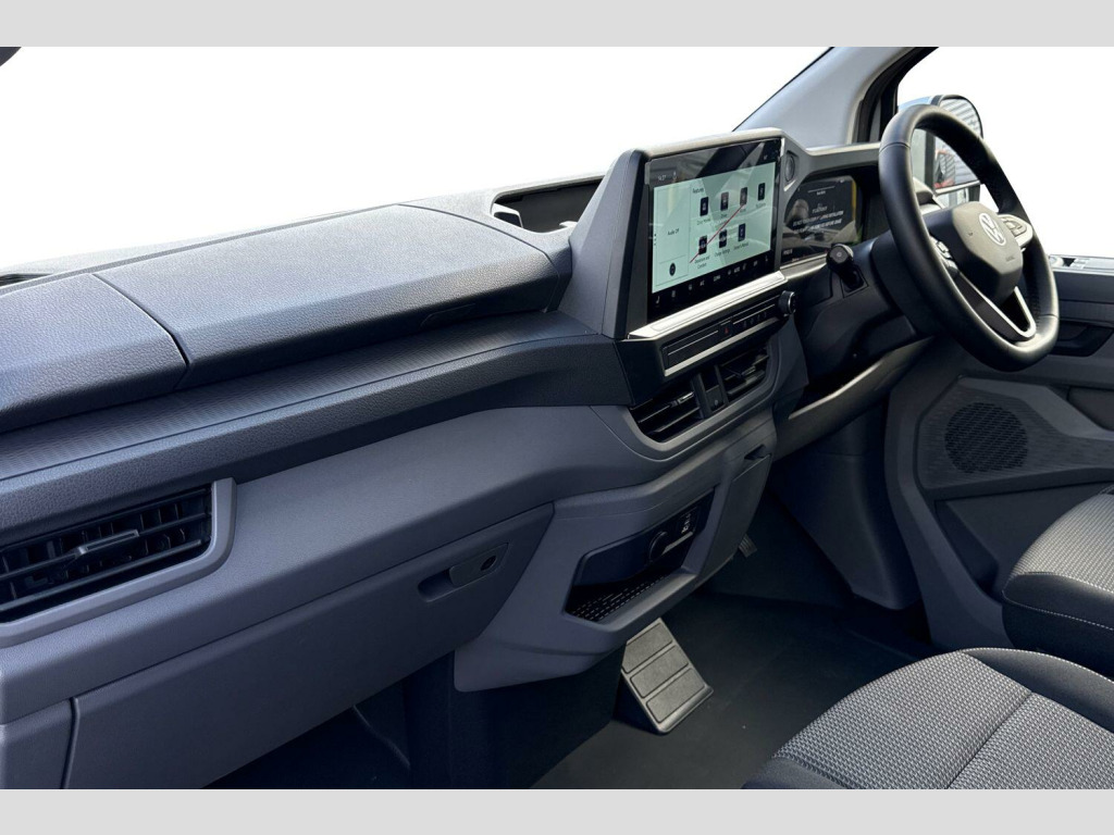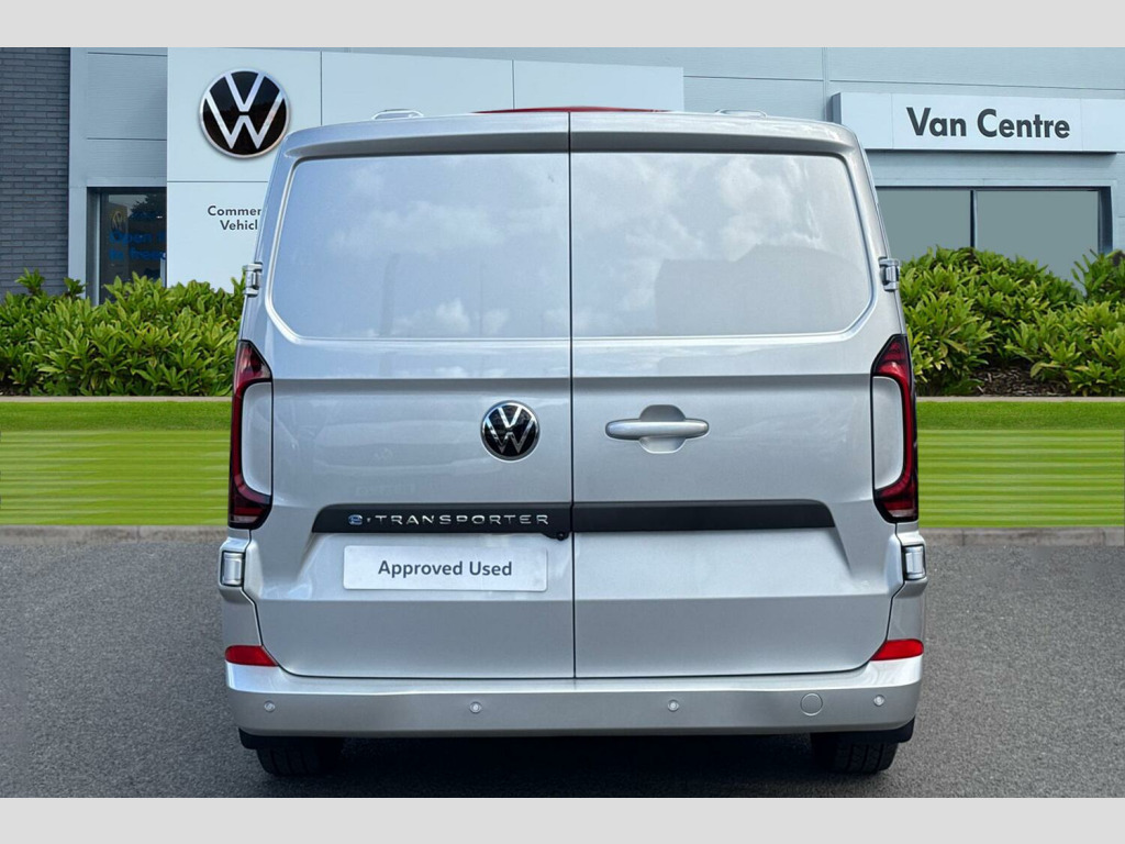 The e-Transporter is powered by an electric motor delivering an impressive 215 bhp, providing ample performance for your daily needs. Charging is flexible, with a full charge at home using a 7kW charger taking approximately 31 hours and 24 minutes, while rapid public charging can replenish the battery from empty to 80% in just 44 minutes. These specifications highlight how this e-Transporter offers a compelling blend of efficiency, power, and modern convenience compared to other vehicles in its class. Light Grey-Metallic Paint, LED headlights with separate LED daytime running lights + LED poor weather lights, Rear loading Cargo doors, Single sliding side load door, Single zone air conditioning system with automatic control in cab, Double passenger seat, Keyless start with safelock, Rear wing doors, Sliding door on front passenger side, 3 seat cab life package heated - Transporter, Life interior trim pack - Transporter, Light Grey-Metallic Paint (Silver), Striped fabric - Titanium/Palladium black, 16" 'Montreal' alloy wheels, 5 Plus Promise, including:, 5 Years Warranty, 5 years Roadside Assistance, 5 Services, 3 Mot's, Heat reflecting side window glass, Body colour bumpers, Body coloured door handles, Body coloured radiator grille, Mud flaps front and rear, Rear Transporter nameplate in black grained decorative trim, Vehicle opening configuration 1x 1st row of seats, 2x all doors, LED rear lights with exclusive light signature, Electromechanical brake booster, Electronic stability control, ABS, ASR with deactivation button, hill start assist and brake assist system, Adaptive cruise control, Electromechanical speed sensitive power steering, height and longitudinally adjustable steering column, Lane and blind spot assist with exit warning system, Traffic jam assist, Wrong way driver warning, Body coloured door mirrors, Electrically heated, adjustable and folding door mirrors, Driver and front passenger airbag with front passenger airbag deactivation, Front and curtain airbags for driver and front passenger, Seat belt pretensioner for driver seat, Single tone horn, Apple CarPlay and Android Auto, Wireless mobile phone charging, 12" digital drivers display, 13" touchscreen infotainment display with wireless app connect and DAB radio, 5G Modem, Dynamic road sign display, eCall emergency system, Preparation of VW connect and connect plus, Without alternator, Electric auxiliary heater, Heat pump, 2x 15-W USB data/charging ports in dashboard and 1x USB-C, 1x USB-A center bottom, 3 spoke heated leather wrapped multi function steering wheel, 5 additional USB-C charging ports, Black plastic scuff plate for sliding door in cargo without illumination, Glasses compartment in driver side roof, Grab handle on A-pillar passenger side, Illuminated lockable glovebox, Narrow centre console with cup holder and compartment for mobile phone, Overhead storage compartment, Rubber floor covering in cab, Striped fabric upholstery, Cabin interior lighting, 12V outlet in centre console and 12V outlet on rear right D-pillar, 2x LED lights in load compartment, 3x additional super bright LED lights in load compartment, Lashing rings for reinforced floor covering, Without passenger seats in load compartment, 4 way height and tilt adjustable head restraints, Anti theft alarm system with interior monitoring in cab, backup horn and towing protection, Electronic immobiliser, Lockable wheel bolts, Preparation for alcohol ignition interlock, 5+ Promise, Mode 3 charging cable, type 2, 3-phase, 32A, cable length 5m, Goodyear all season tyres, Tyre mobility kit in lieu of spare wheel with 12 volt compressor and tyre sealant