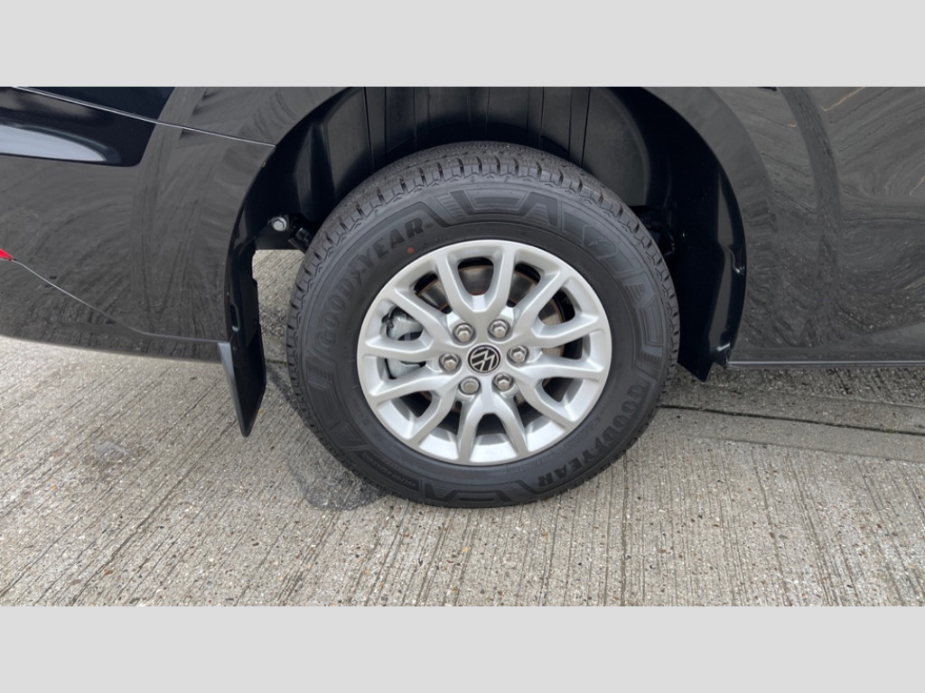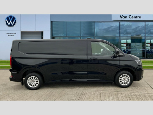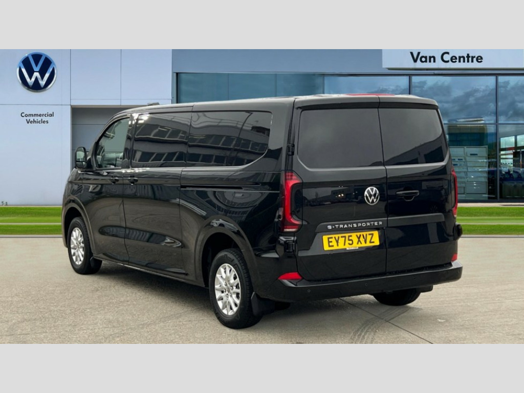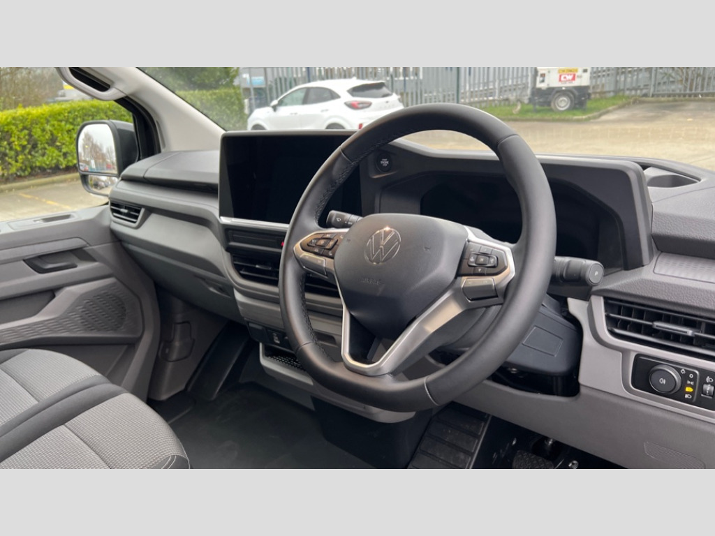 Volkswagen Transporter 100kW 65kWh Commerce Pro Van Auto 12" digital drivers display, 13" touchscreen infotainment display with wireless app connect and DAB radio, 5G Modem, Adaptive cruise control, Apple CarPlay and Android Auto, Dynamic road sign display, eCall emergency system, Electromechanical speed sensitive power steering, height and longitudinally adjustable steering column, Lane and blind spot assist with exit warning system, Preparation of VW connect and connect plus, Traffic jam assist, Wireless mobile phone charging, Wrong way driver warning, Body colour bumpers, Body coloured door handles, Body coloured door mirrors, Body coloured radiator grille, Electrically heated, adjustable and folding door mirrors, Heat reflecting side window glass, LED rear lights with exclusive light signature, Mud flaps front and rear, Rear Transporter nameplate in black grained decorative trim, Vehicle opening configuration 1x 1st row of seats, 2x all doors, 12V outlet in centre console and 12V outlet on rear right D-pillar, 2x 15-W USB data/charging ports in dashboard and 1x USB-C, 1x USB-A center bottom, 2x LED lights in load compartment, 3 spoke heated leather wrapped multi function steering wheel, 3x additional super bright LED lights in load compartment, 4 way height and tilt adjustable head restraints, 5 additional USB-C charging ports, Black plastic scuff plate for sliding door in cargo without illumination, Cabin interior lighting, Electric auxiliary heater, Glasses compartment in driver side roof, Grab handle on A-pillar passenger side, Heat pump, Illuminated lockable glovebox, Lashing rings for reinforced floor covering, Narrow centre console with cup holder and compartment for mobile phone, Overhead storage compartment, Rubber floor covering in cab, Striped fabric upholstery, Without passenger seats in load compartment, Driver and front passenger airbag with front passenger airbag deactivation, Front and curtain airbags for driver and front passenger, Seat belt pretensioner for driver seat, Single tone horn, Anti theft alarm system with interior monitoring in cab, backup horn and towing protection, Electronic immobiliser, Lockable wheel bolts, Preparation for alcohol ignition interlock, 5+ Promise, Electromechanical brake booster, Electronic stability control, ABS, ASR with deactivation button, hill start assist and brake assist system, Mode 3 charging cable, type 2, 3-phase, 32A, cable length 5m, Without alternator, Goodyear all season tyres, Tyre mobility kit in lieu of spare wheel with 12 volt compressor and tyre sealant