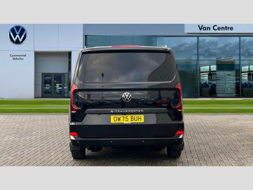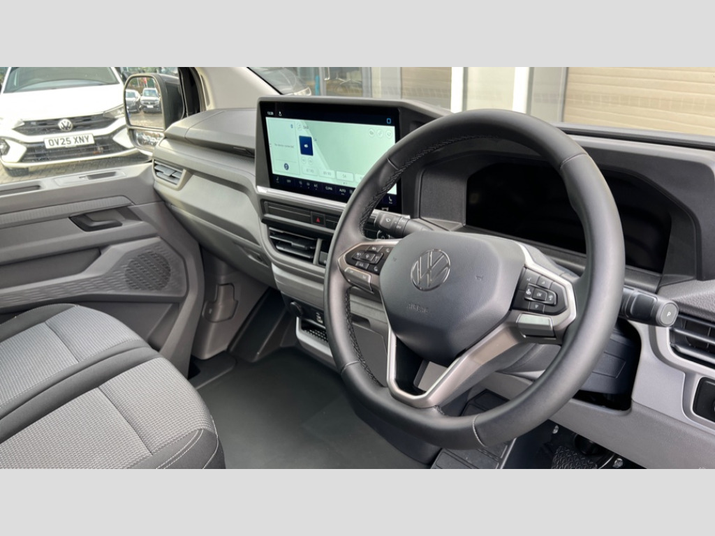 Volkswagen Transporter 160kW 65kWh Commerce Pro Van Auto 12" digital drivers display, 13" touchscreen infotainment display with wireless app connect and DAB radio, 5G Modem, Adaptive cruise control, Apple CarPlay and Android Auto, Dynamic road sign display, eCall emergency system, Electromechanical speed sensitive power steering, height and longitudinally adjustable steering column, Lane and blind spot assist with exit warning system, Preparation of VW connect and connect plus, Traffic jam assist, Wireless mobile phone charging, Wrong way driver warning, Body colour bumpers, Body coloured door handles, Body coloured door mirrors, Body coloured radiator grille, Electrically heated, adjustable and folding door mirrors, Heat reflecting side window glass, LED rear lights with exclusive light signature, Mud flaps front and rear, Rear Transporter nameplate in black grained decorative trim, Vehicle opening configuration 1x 1st row of seats, 2x all doors, 12V outlet in centre console and 12V outlet on rear right D-pillar, 2x 15-W USB data/charging ports in dashboard and 1x USB-C, 1x USB-A center bottom, 2x LED lights in load compartment, 3 spoke heated leather wrapped multi function steering wheel, 3x additional super bright LED lights in load compartment, 4 way height and tilt adjustable head restraints, 5 additional USB-C charging ports, Black plastic scuff plate for sliding door in cargo without illumination, Cabin interior lighting, Electric auxiliary heater, Glasses compartment in driver side roof, Grab handle on A-pillar passenger side, Heat pump, Illuminated lockable glovebox, Lashing rings for reinforced floor covering, Narrow centre console with cup holder and compartment for mobile phone, Overhead storage compartment, Rubber floor covering in cab, Striped fabric upholstery, Without passenger seats in load compartment, Driver and front passenger airbag with front passenger airbag deactivation, Front and curtain airbags for driver and front passenger, Seat belt pretensioner for driver seat, Single tone horn, Anti theft alarm system with interior monitoring in cab, backup horn and towing protection, Electronic immobiliser, Lockable wheel bolts, Preparation for alcohol ignition interlock, 5+ Promise, Electromechanical brake booster, Electronic stability control, ABS, ASR with deactivation button, hill start assist and brake assist system, Mode 3 charging cable, type 2, 3-phase, 32A, cable length 5m, Without alternator, Goodyear all season tyres, Tyre mobility kit in lieu of spare wheel with 12 volt compressor and tyre sealant