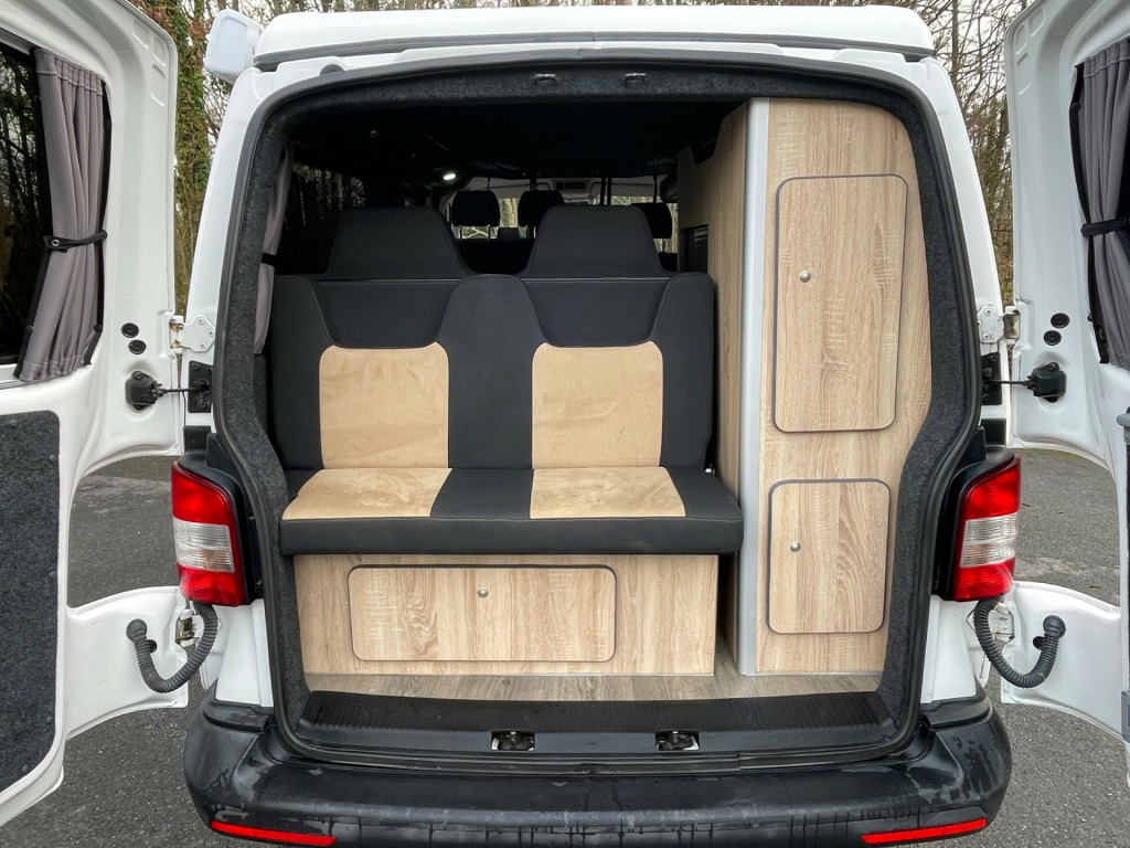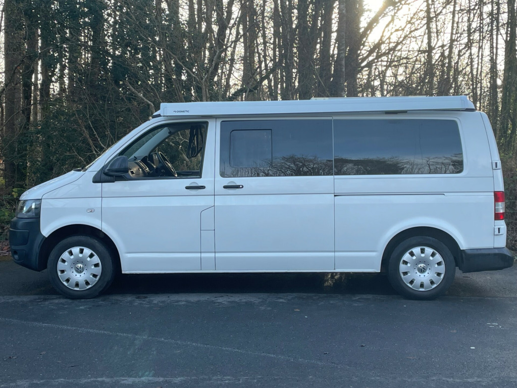 Meet your next adventure machine: this 2015 VW Transporter T5 T30 Campervan is built to take you wherever the road and your curiosity leads. With its long wheelbase layout, there's loads of room to relax, cook, sleep, and store your gear without feeling cramped. The pop-top roof transforms the space in seconds, giving you extra headroom by day and a cosy elevated sleeping area by night. Whether you're parked by the beach, in the mountains, or at a festival, this van turns every stop into a home.Comfort and practicality are at the heart of this build. The diesel heater keeps things warm and toasty on chilly nights, so adventures don't stop when the temperature drops. Up front, the swivel bench seat spins around to become part of the living space, making it perfect for socializing, eating, or planning the next leg of your journey. Reliable, stylish, and endlessly versatile, this T5 isn't just a campervan it's your ticket to freedom. uetooth connection, barn doors, power steering, trip computer, multiple airbags, service indicator, tyre pressure monitor, central locking, immobiliser, electric mirrors, electric windows, heated door mirrors, auxiliary input socket, digital radio, front armrest, front head restraints, solid paint, spare wheel, steel wheels, awning, diesel heater, pop top, solar panel