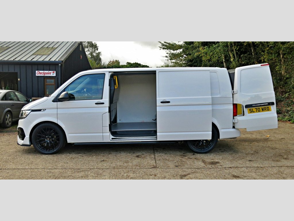 Unique Transporters are delighted to offer this VW T6.1 Transporter panel van SWB 150hp 4motion Aircon with Sportline styling finished in Candy white, comes with the following features:, Low rate finance from 9.9 APR please apply on our website www.uniquetransproters.co.uk, Sportline styling conversion, New 20 Alloys and Tyres, Upgraded lowered suspension, SWB, 4Motion 4x4 , Service with new cambelt kit if required , 150hp upgradable to 185bhp , Euro 6, Apple car play , Satnav via Apple car play, 3 seat , +Vat , Parking sensors, DAB radio , Bluetooth, Bluetooth music streaming , Cruise control , Rac Warranty, Barn doors , Sportline styling , Side bars , Electric front windows and mirrors , Extendable Rac Warranty, Part exchange welcome , 50+ Vw Transporters in stock , 150hp not enough? we can remap this to 185hp please ask about this option. Part exchange welcome , Upgradable RAC warranties, with electrical and mechanical plus RAC Breakdown cover, Finance options are available, please contact us with your requirements. Please call our team for viewing or discuss this vehicle. 01252 318417, This vehicle is subject a customer care pack at £149 please see website for more details, WE OPERATE ON A STRICTLY APPOINTMENT ONLY BASIS PLEASE CALL US ON 01252 318417 TO ARRANGE AN APPOINTMENT.!