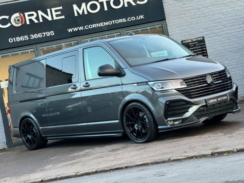VOLKSWAGEN TRANSPORTER T6.1 KOMBI SPORTLINE 2.0 BITDI 204PS 7 SPEED DSG EU6 LWB 6 SEAT CREW VAN FINISHED IN INDIUM GREY METALLIC PAINT WITH CONTRASTING BLACK 1/2 LEATHER & ALCANTARA SPORTLINE EMBOSSED UPHOLSTERY, GENUINE SPORTLINE, EURO 6 ULEZ COMPLIANT, SUPPLIED BY US NEW, VW NATIONWIDE WARRANTY UNTIL OCTOBER 2026, 2 KEYS, FULLY HPI CHECKED & CLEARED, FLEXIBLE FINANCE PACKAGES AVAILABLE & PART EXCHANGES WELCOMED, GREAT SPECIFICATION INCLUDING BILSTEIN B14 HEIGHT ADJUSTABLE COILOVER SUSPENSION, REVO 20" RF020 GLOSS BLACK ALLOY WHEELS, GLOSS BLACK RADIATOR GRILLES, DIGITAL DASHBOARD / VIRTUAL COCKPIT, LED HEADLAMPS, TWIN SIDE LOADING DOORS, HEATED FRONT WINDSCREEN, REVERSE CAMERA, HEATED FRONT SEATS, FRONT & REAR PARKING SENSORS, ELECTRIC FOLDING DOOR MIRRORS, SATNAV WITH WIRELESS APPLE CAR PLAY / ANDROID AUTO, DAB RADIO, BLUETOOTH PHONE, ADAPTIVE CRUISE CONTROL, LEATHER MULTI FUNCTION STEERING WHEEL + MUCH MORE. CORNE MOTORS IS A FAMILY RUN INDEPENDENT VOLKSWAGEN AUDI GROUP SPECIALIST DEALERSHIP LOCATED IN SOUTHMOOR NEAR WITNEY / ABINGDON IN OXFORDSHIRE. WE PRIDE OURSELVES ON PROVIDING THE HIGHEST LEVELS OF CUSTOMER SERVICE AND SATISFACTION. ALL OF OUR SALES VEHICLES ARE PREPARED TO THE HIGHEST OF STANDARDS AND UNDERGO A THOROUGH MULTI POINT INSPECTION PRIOR TO SALE, WE ARE PROUD TO BE ABLE TO OFFER NEW & USED VEHICLE SALES, SERVICING & REPAIRS, MOT TEST'S, REVO PERFORMANCE TUNING & UPGRADES, STYLING UPGRADES, DIAGNOSTIC'S, LASER 4 W 1 Waste Bin in Door Storage Compartment, 12V Socket - Front, 18in Alloy Wheels - Sportline Gloss Blac, 2 Seater Bench on Drivers Side and Indiv, ABS - Anti-Lock Braking System, ACC - Adaptive Cruise Control, Allergen Filter, Alternator - 250A, Anti-Theft Alarm System with Interior Mo, App-Connect, Armrest - Drivers and Passenger, ASR - Anti Slip Regulation, Automatic Dimming Rear View Mirror, Automatic Headlight Activation with Dayt, Automatic Post-Collision Braking System, BAS - Brake Assist System, Body-Coloured Door Mirror Housings and H, Carpet Floor Covering in Cab, Carpet Mats - Sportline, Crosswind Assist, Dash Panel with Open Stowage Compartment, Dashboard - Dimmable Illumination, Di