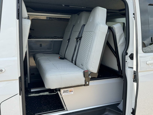JUST ARRIVED..BRAND NEW 6 SEATER 4 BERTH CONVERSION WITH DELIVERY MILES..OFF-GRID 2200W INVERTER WITH A 150AH LITHIUM BATTERY FITTED CAPABLE OF INDUCTION COOKING, SOLAR CHARGER , DIESEL HEATER, SCENIC POP TOP..FINANCE AVAILABLE UP TO 12 YEARS..Date of reg:25/06/2024 PRICE INCLUDES LOWER HALF PAINT, COLOUR OF YOUR CHOICE!!! Specification: 150AH Lithium leisure battery, 2200W Inverter with RCD protection, x1 240V socket off-grid, 1600W can be run for 45 mins, however with intelligent engine idle & solar charging it extends to over 90 mins. If you drop your usage to approx. 900W you can last off grid indefinitely using the engine idle and solar technology. M1 Tested 3 Seat Rail Bed, M1 tested Pop top Scenic roof, Intelligent 2 way 70amp charger, Diesel heater, 100w Solar panel, Sink with 12v Shurflow pump , 40L underslung water tank, Mains Electrical hook up, Leisure battery with charging from mains hook up and vehicle battery, 2x 240v plug sockets when on hook up. LED lighting, 12v Fridge/Freezer, Curtains, Foldable table, Van specification: LED Headlights, Heated Seats, Apple Carplay / Android auto, Reversing Camera, 20'' Alloys, Tail gate, Rear Heated Window with Was/Wipe system, LED side repeaters, Wind deflectors.We are excited to announce versatile upgrades to our campervans! The addition of a sustainable 240V Pure Sine Wave off-grid package opens up a wide range of possibilities for users, allowing you to enjoy off-grid living while still having access to essential electrical appliances such as computer, hairdryer, straighteners, airfryer, microwave, induction hob, coffee machine etc.Our idea has turned our campervans into multifunctional spaces, serving as an office, holiday home, and transportation for groups of people. The convenience of having a mobile office with all the necessary electrical amenities, coupled with the flexibility to transport multiple passengers and their luggage, adds significant value to our campervan offerings.Our incorporation of a rail system or RIB bed is a practical solution for optimizing space and providing a comfortable traveling experience for passengers. The ability to transport bikes/e-bikes and luggage without the need for additional racks or trailers enhances the overall functionality and convenience of our campervans.We are addressing the evolving needs of our customers who seek not only mobility and comfort but also sustainability in their journeys and workplace with a comprehensive and eco-friendly solution.Vehicles with 500+ miles come with an AA History Check and 12 Months AA Breakdown Cover on request. All Vehicles Experian Checked, Inspected & Road Tested. Thank you for making the investment in reading our advert, we will not disappoint you. Please come and visit our friendly Berkshire site RG40 4TS. We offer Fabulous Finance Rates, we’d love to take your car as Part Exchange. We can take most cards for initial deposit and our preferred payment method is bank transfer. If you are coming by train we will be happy to pick you up from our local station Wokingham. PLEASE NOTE THERE IS A £195 ADMIN/WARRANTY FEE INCLUDED IN PRICE.. .