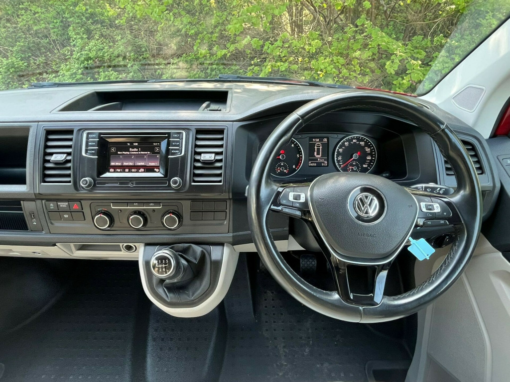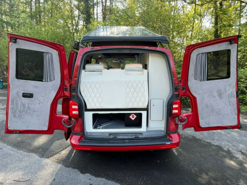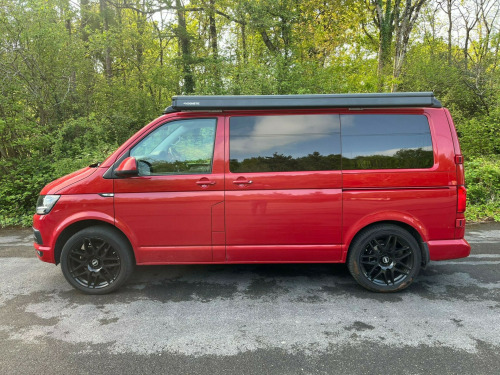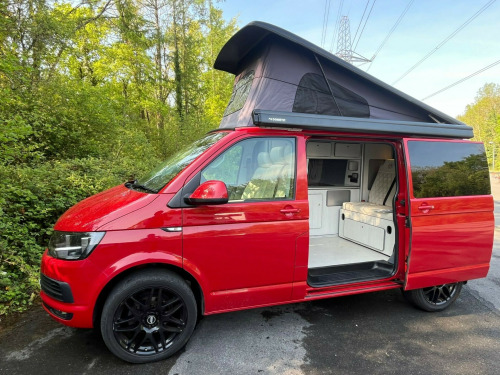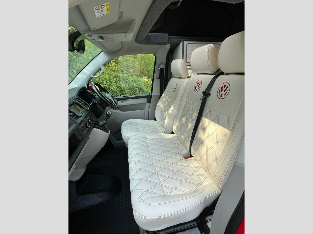 Unleash your inner explorer with this head-turning 2019 VW Transporter, finished in a bold, glossy red that commands attention wherever it goes. Sitting low on sleek black alloys, enhanced by aggressive side bars and a matching black awning, this van is more than just a camperit's a statement. The pop-top roof gives you extra headroom and sleeping space, transforming road trips into luxury escapes. Whether you're chasing sunsets or carving through country roads, this Transporter brings performance, style, and freedom in one unforgettable package.Step inside and you're greeted by a stunning white leather interior with contrasting red stitchinga perfect blend of comfort and craftsmanship. The swivel front bench seat creates a spacious social zone, while the rock 'n' roll bed ensures a restful night wherever you park. Stay cozy year-round with the built-in diesel heater, and enjoy every journey with all the comforts of home at your fingertips. Adventure isn't just possibleit's guaranteed. This van isn't just ready for the road, it's ready for a new story. A world of adventure awaits. uble bed, 2-burner hob, fridge freezer, side kitchen, sink/drainer, bluetooth connectivity, service indicator, electric front windows, cab interior light, front passenger airbag deactivation, 70 litre fuel tank, awning, barn doors, cab air conditioning, cruise control, diesel heating, fully insulated, parking sensors, pop top, steering wheel with radio control, swivel front bench, awning light